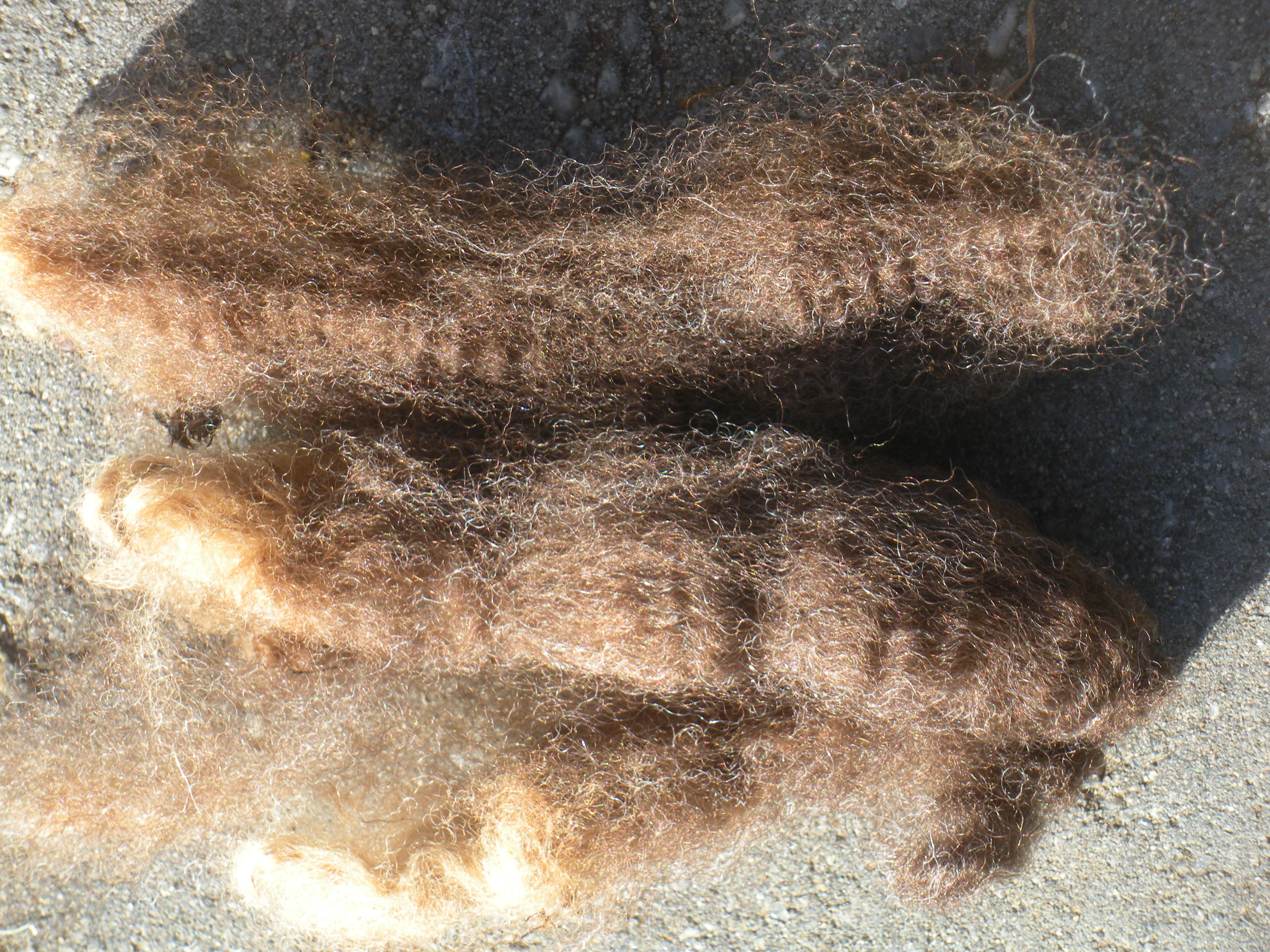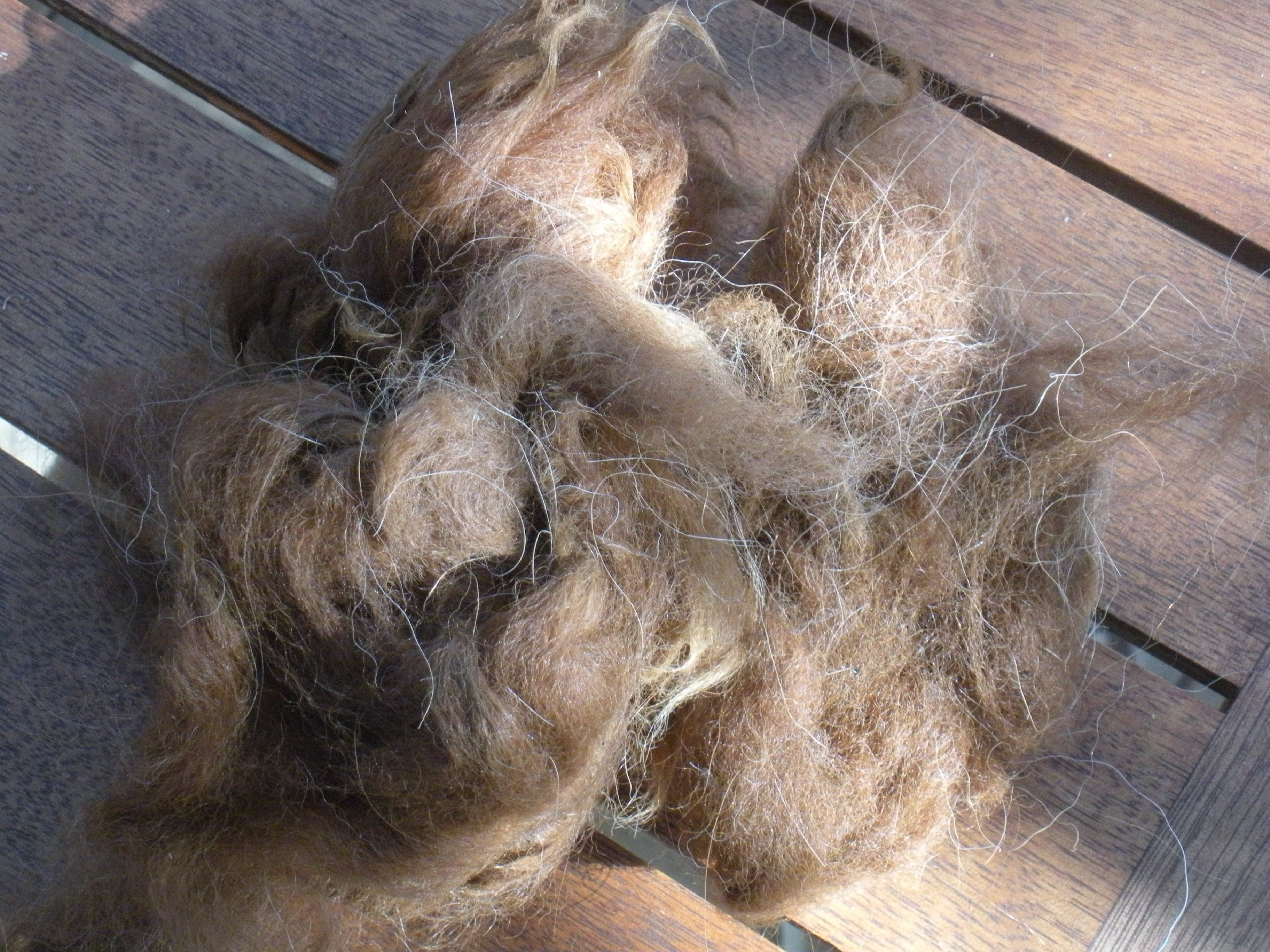 4.That alpaca has big clumps of guard hair and has been shorn without consideration to the future spinner. Hopefully the shearer was thinking of the animal’s welfare in taking so many passes!
