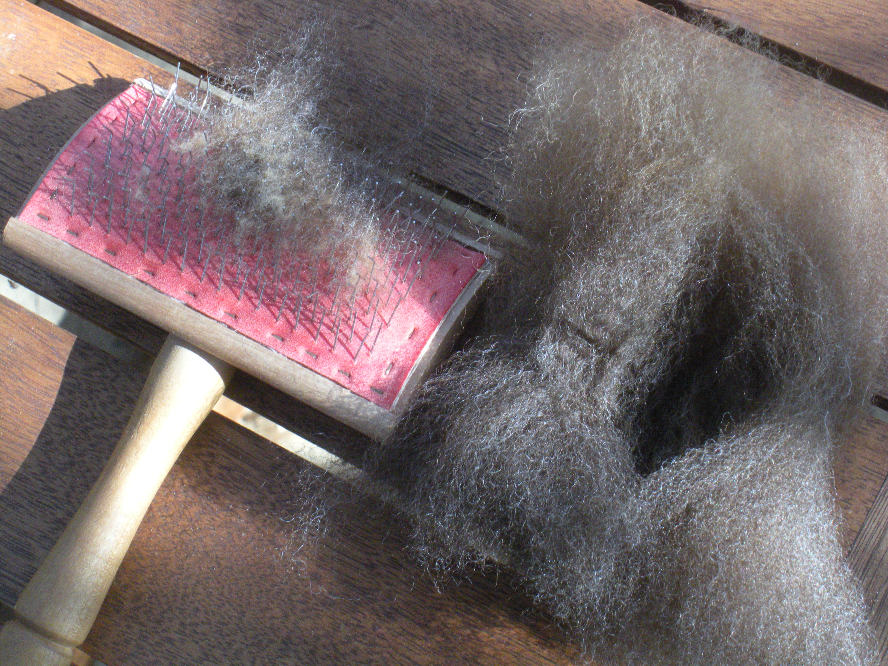 Anyway… having tried washing some more gifted alpaca fleece and some more gifted Polwarth, and using careful observation of how it behaves with flicking, combing and carding, I have decided the following. 1. The specific Polwarth fleece I am currently working on has tips that are weather damaged. When I flick card them, they pull right off. Is it any wonder that these paler tips appear as nepps in the batt when I card the same fleece? The other fleeces I have had from the same sheep don’t have these difficulties. The poor sheep must have had a tough year…