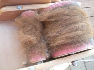 2. That same fleece has a break in it, so the longer locks are giving way under the tension involved in carding, again leading to less than optimal batts. 3. The alpaca is super short (happily, I have now worked with high quality alpaca and no longer assume this s just the way alpaca comes). It has not really been skirted. Most of it pulls onto the licker-in (the small drum on the drum carder) when carded. Yes, from the very start, and not only when the large drum is full.