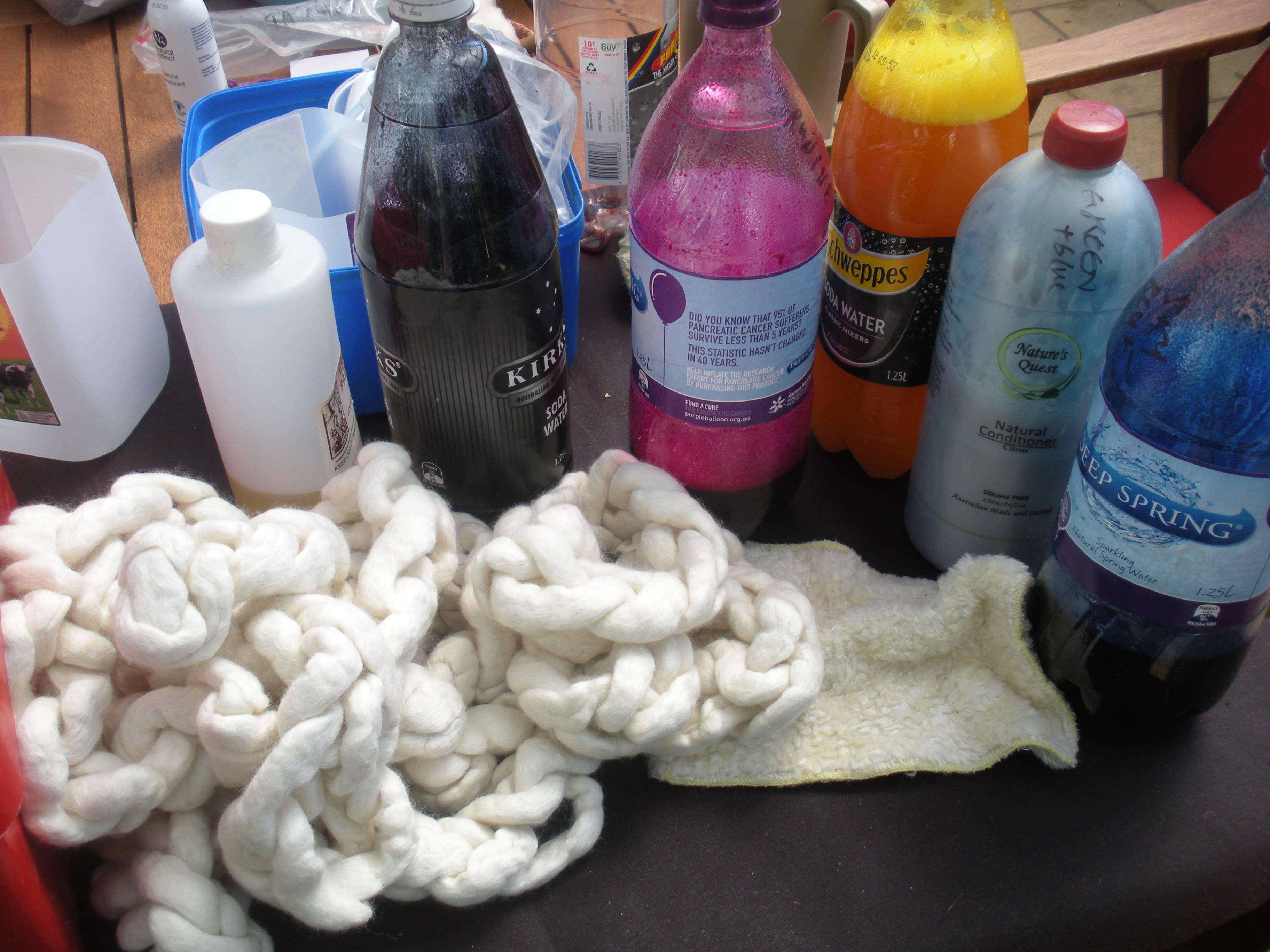 I went to a couple of workshops on fibre preparation (washing, combing and using hackles) at the recent Majacraft Magic camp at Lake Dewar outside Melbourne, and came home ready to tackle some of my current fibre preparation challenges. I had reached some new conclusions about why I find getting fleece clean difficult sometimes. 1. our hot water tap doesn’t give very hot water, and can’t be adjusted. Boiling the kettle repeatedly is boring, as well as slow, after a while! 2. I can be more slapdash than is ideal for the task. 3. Most of the fleece I currently have is Polwarth, more gifts from a couple of pet sheep in the hills. This is a fine and greasy fleece, among the more challenging to clean. 4. I always hope to be able to wash a bigger batch of fleece than is desirable for optimal results.