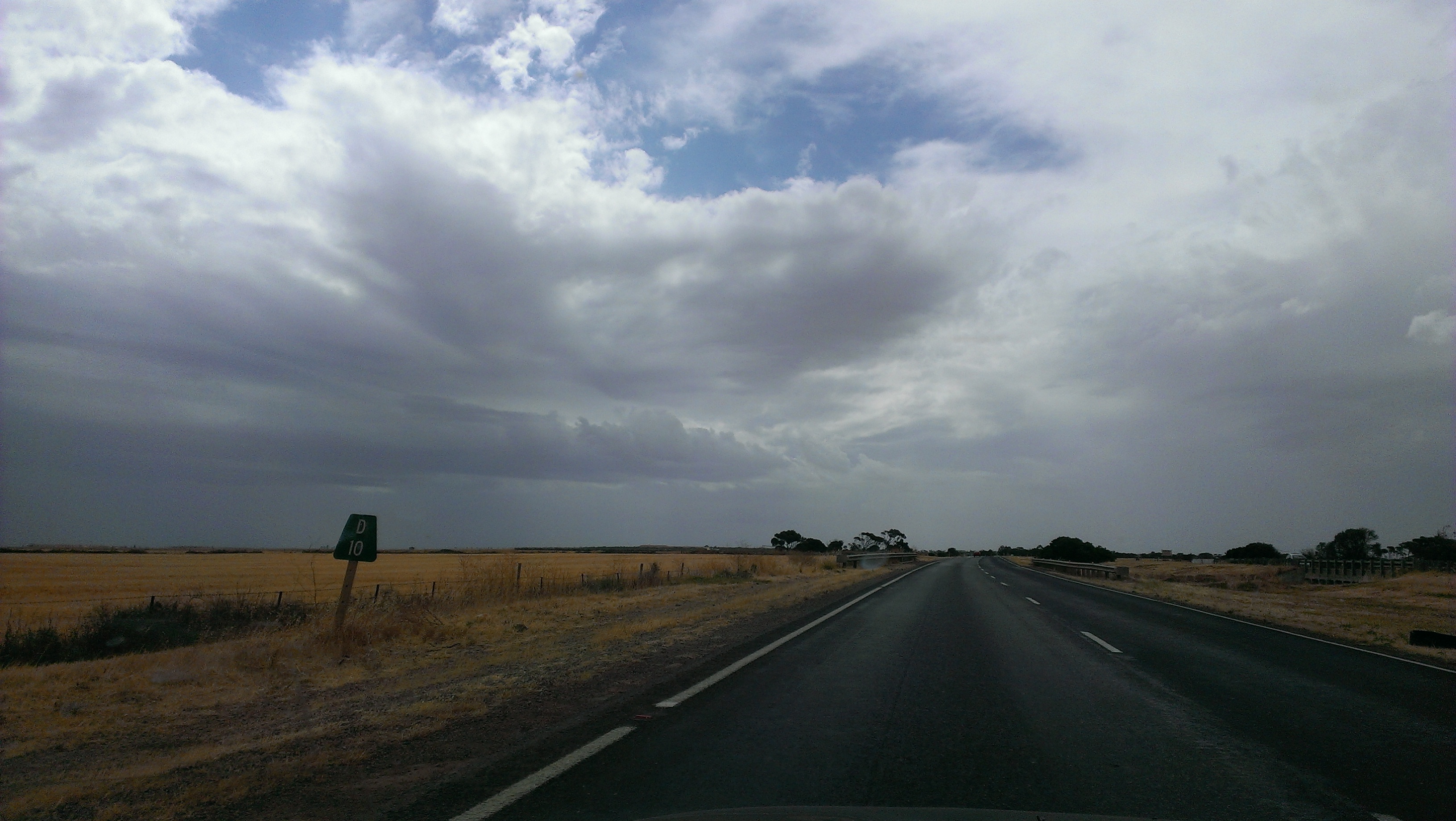 It was overcast when we left home. The wide open road of so many Australian songs (and so many from the US) is indeed a feature of travelling our rather denuded state.