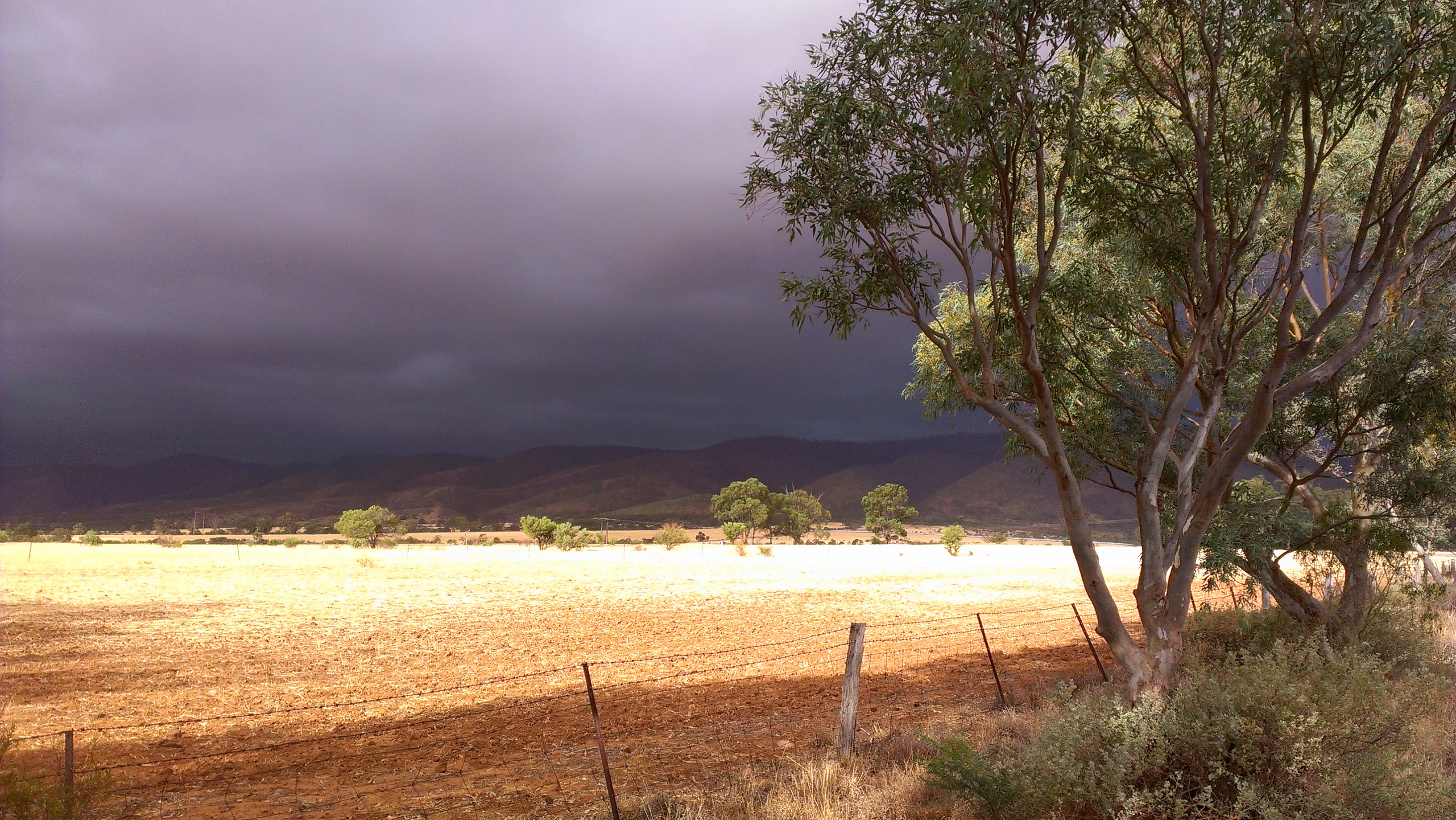 …with a eucalypt in all its glory and the Flinders Ranges in the distance…