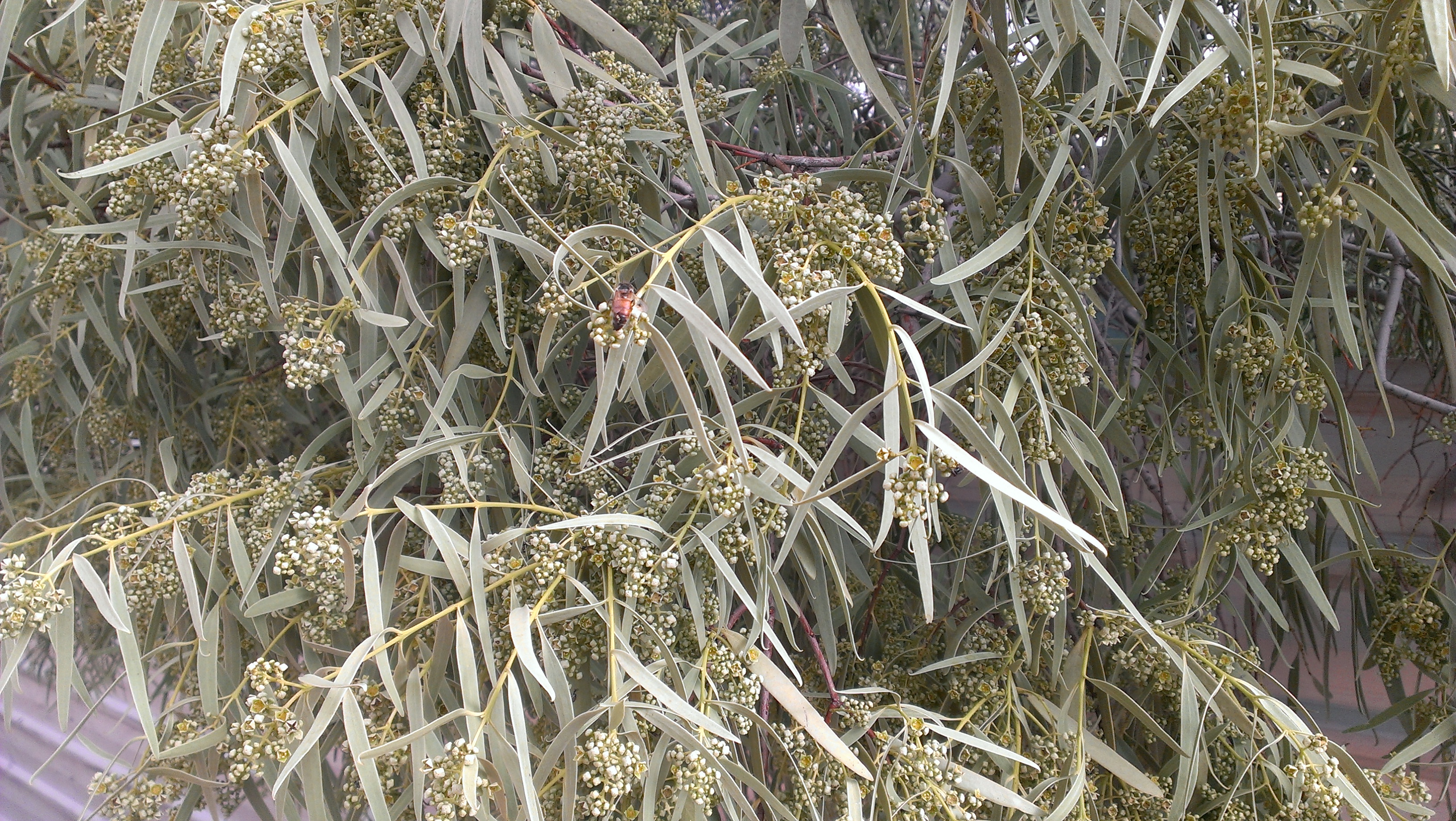 There was a quandong in full flower. I have never seen so much flower on a quandong or been so conscious of the scent!