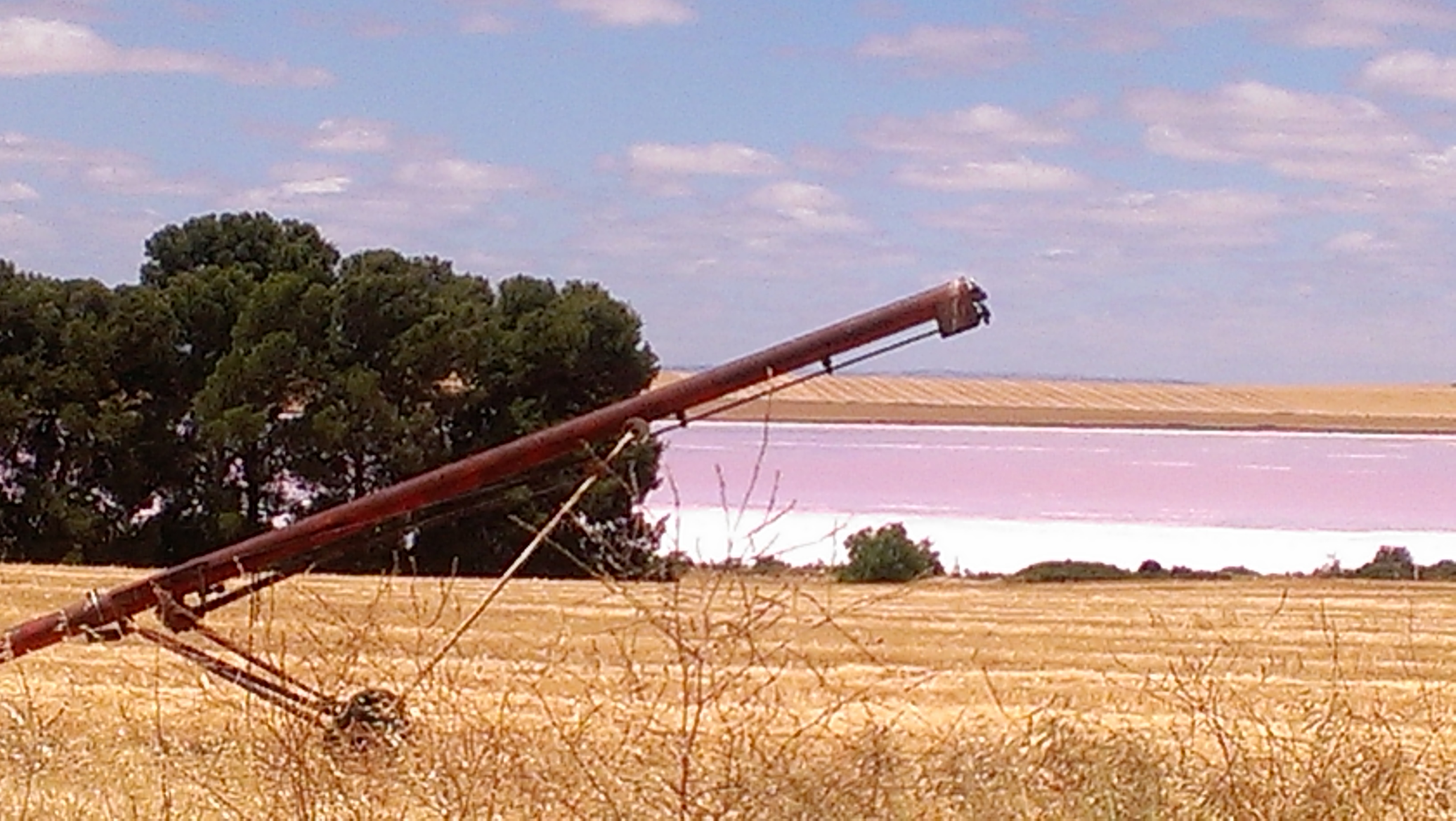 Sunny harvest time wheat fields and the pink salt lake near Lochiel on the way home. (There is a very funny “Lochiel Ness monster” made of half car tyres in this lake, but we didn’t score a good enough picture to share the joke.