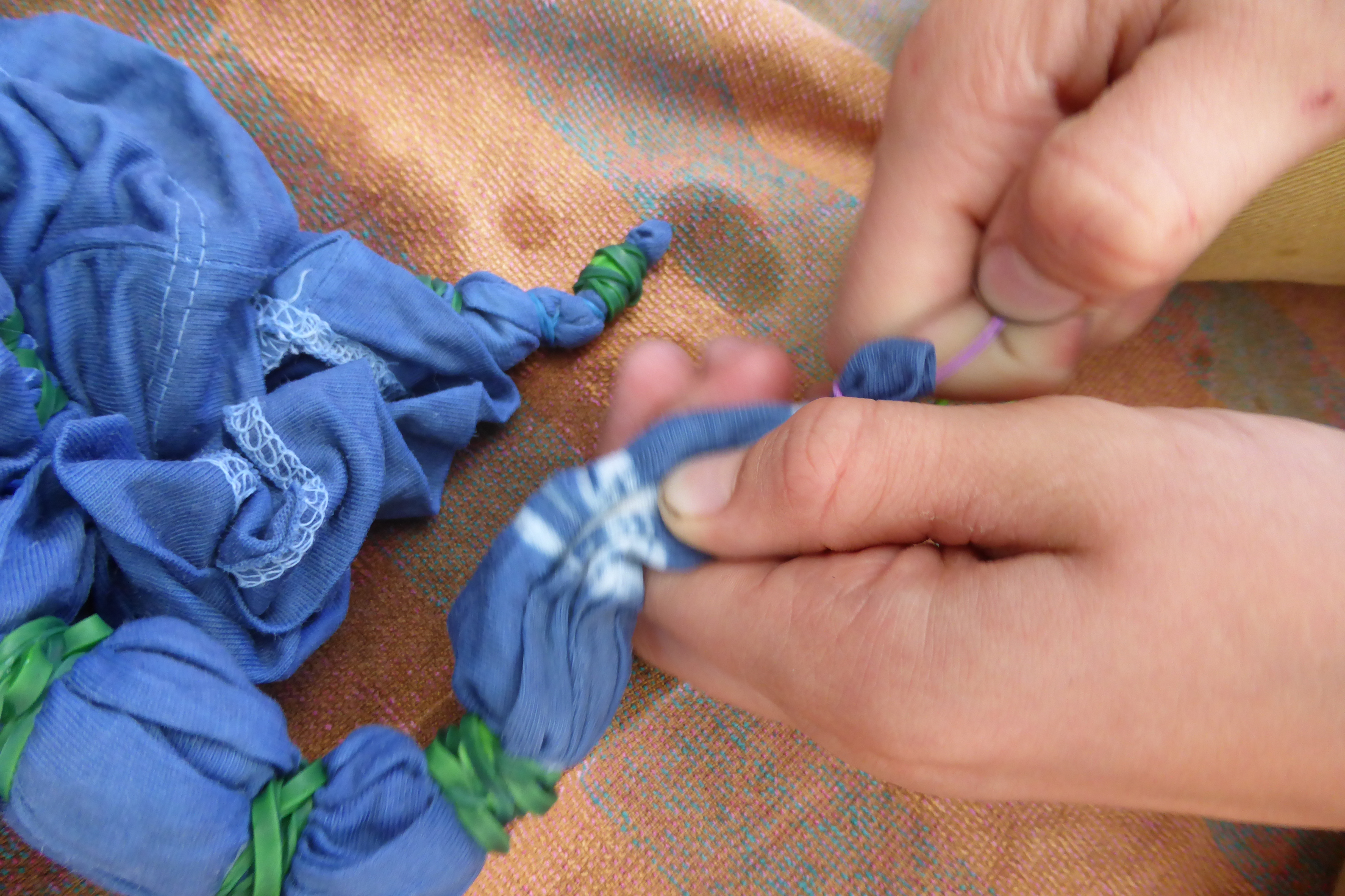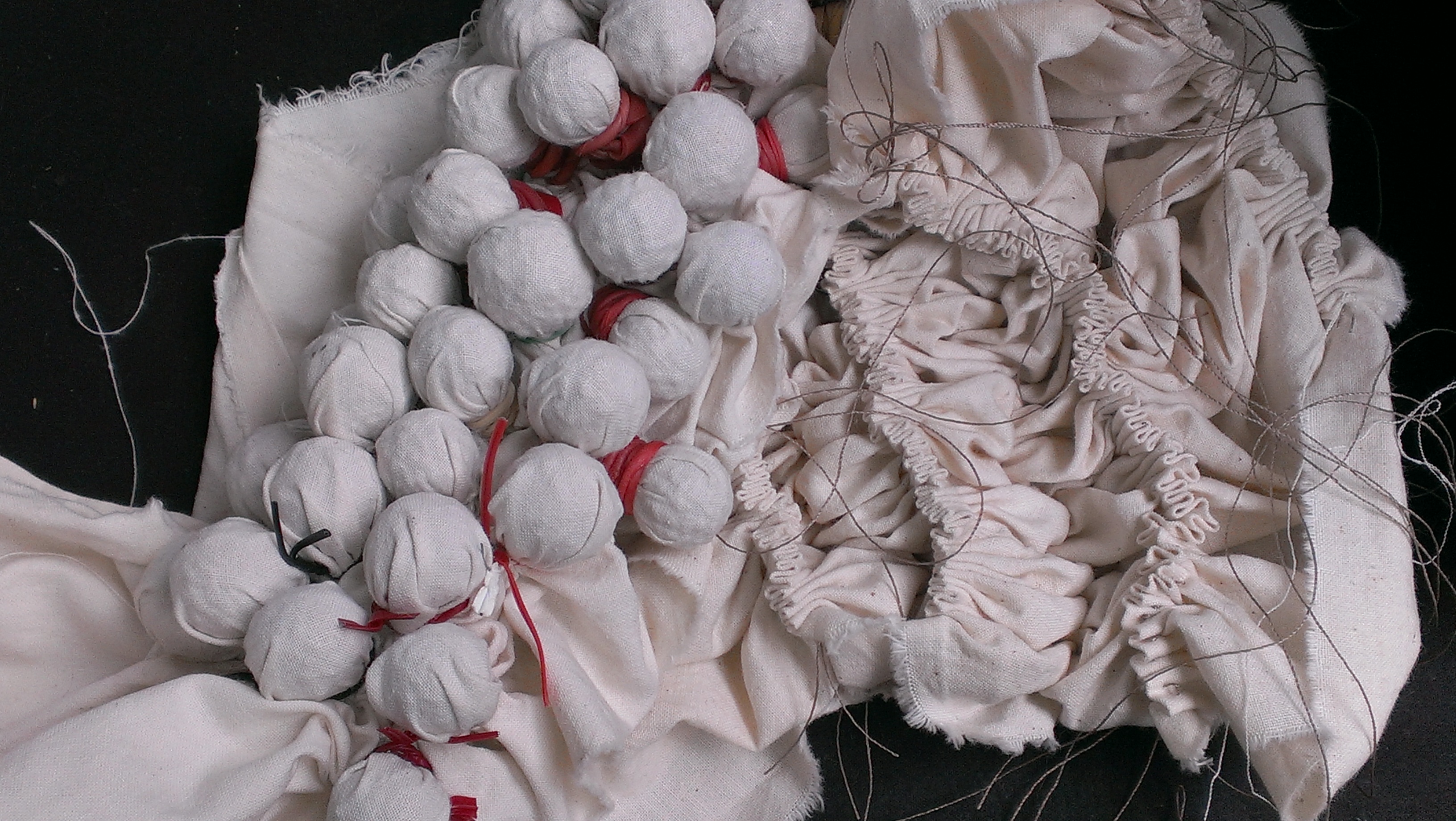 The top, pinned out over the rest, is made of stash black fabrics and a mix of recycled and thrifted fabric again: