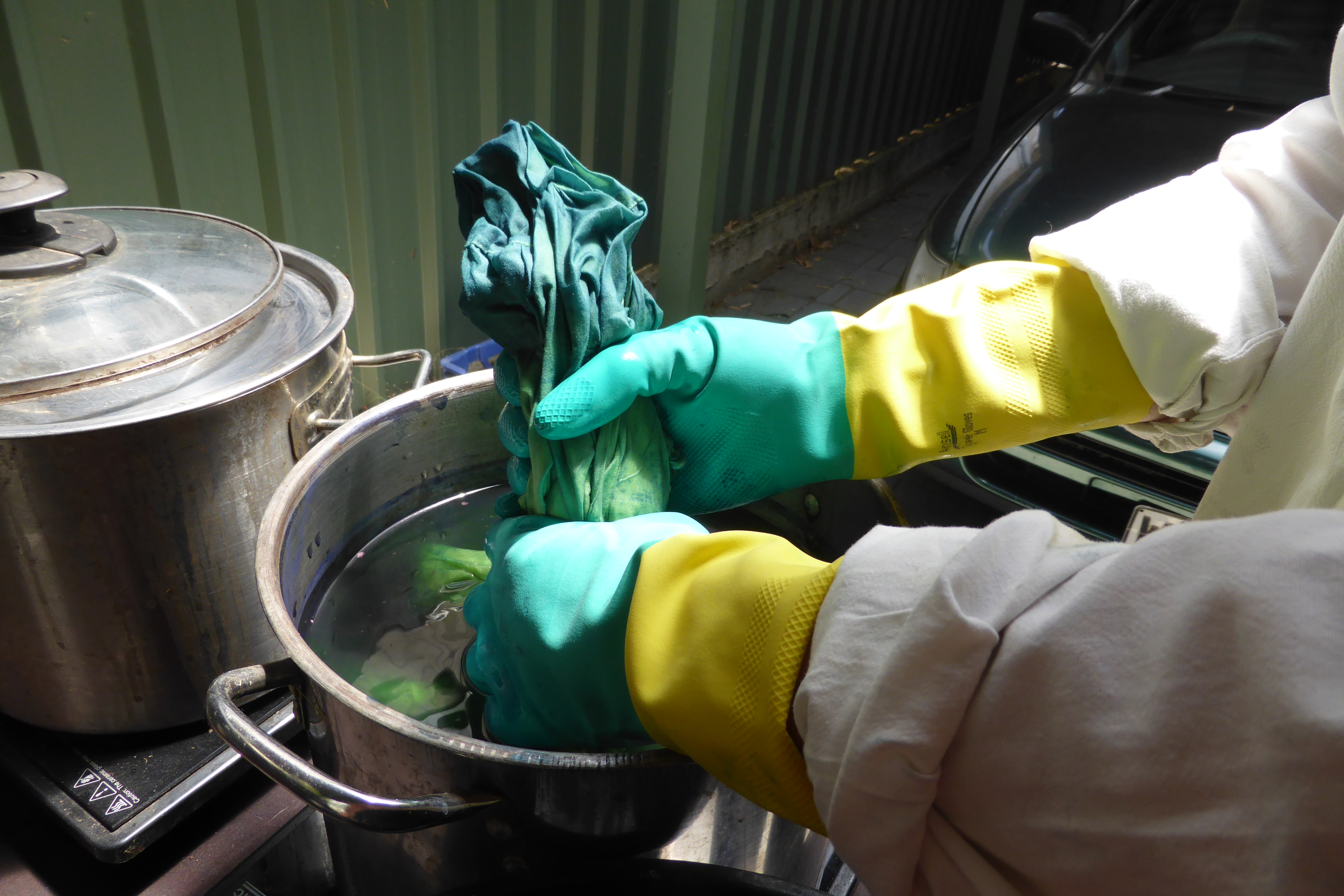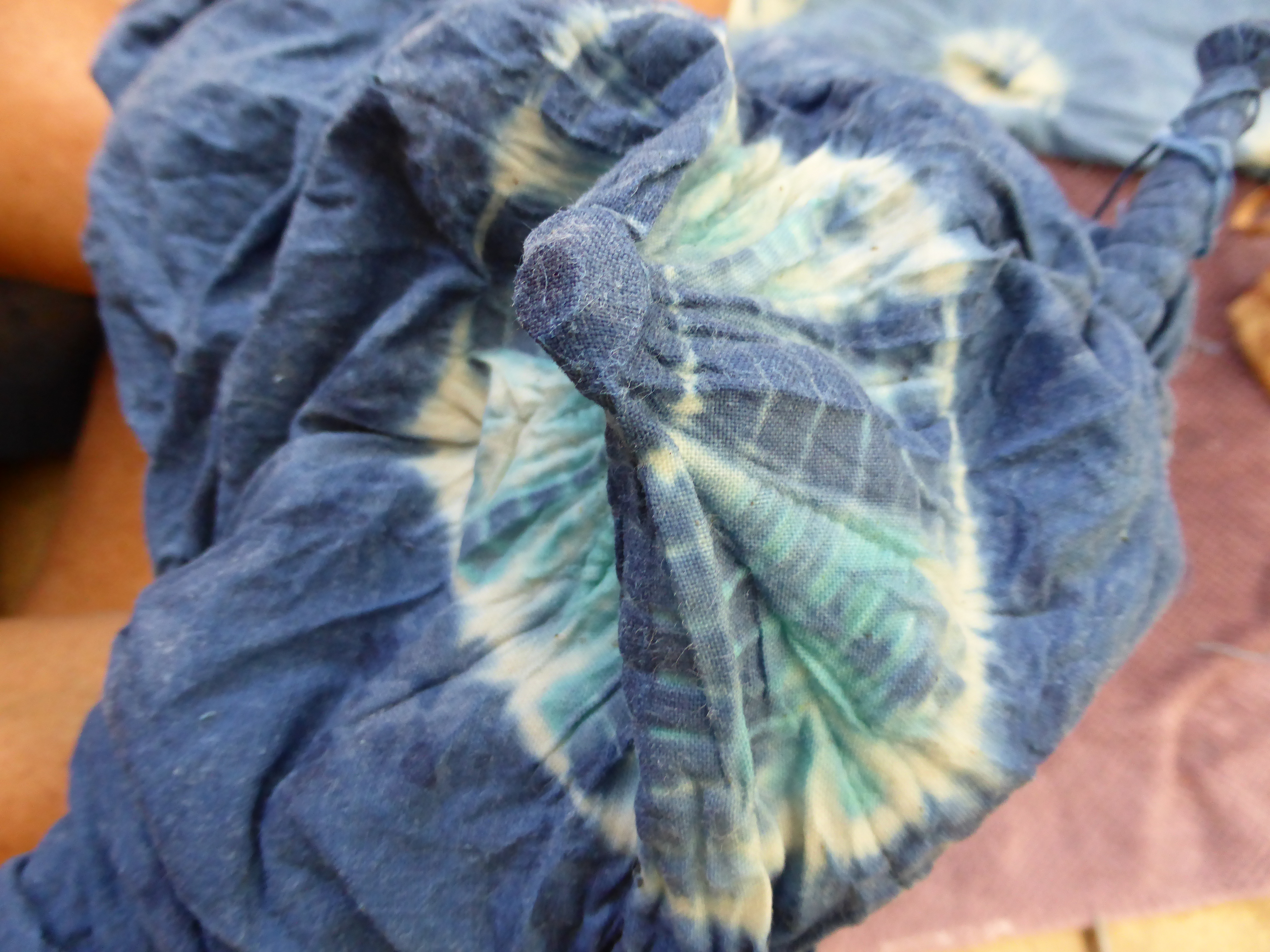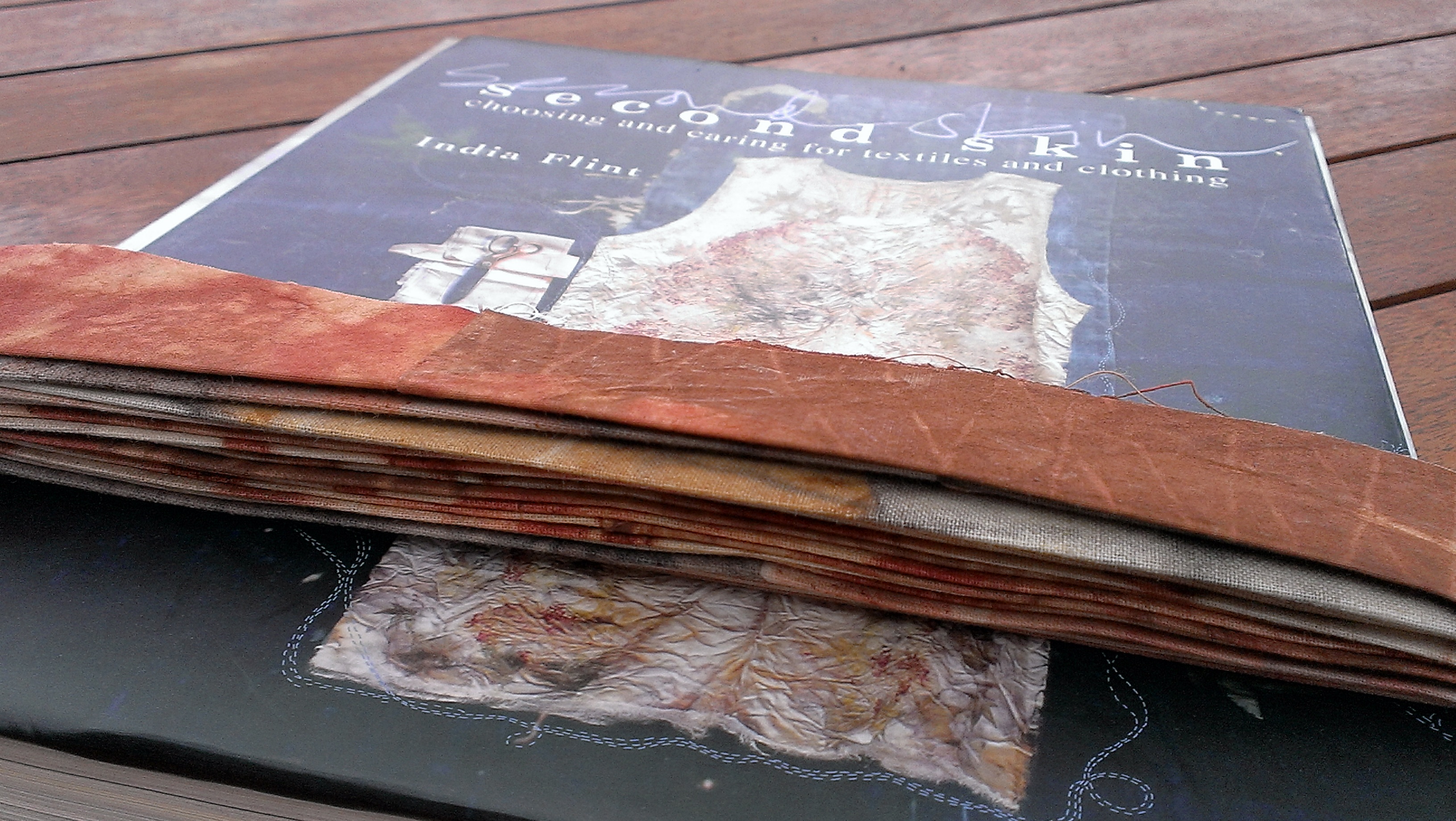 All layers pinned together, I decided on machine quilting, coaxed by a friend. The quilting part has never gripped me. My last quilt was tie-quilted and not really ‘quilted’ with stitching much at all. Clearly the patchwork is my main interest, and the dyeing, of course. Then, time to make the binding. There were plenty of leftovers. I made metres of binding and followed the instructions in Block Party by Alissa Haight Carlton and Kristen Lejnieks. As usual, with less precision than the authors suggest might be warranted. Just the same… here it is, kept tidy until stitching-on time… Second Skin was right behind the ironing board, and seemed perfect for multiple reasons…