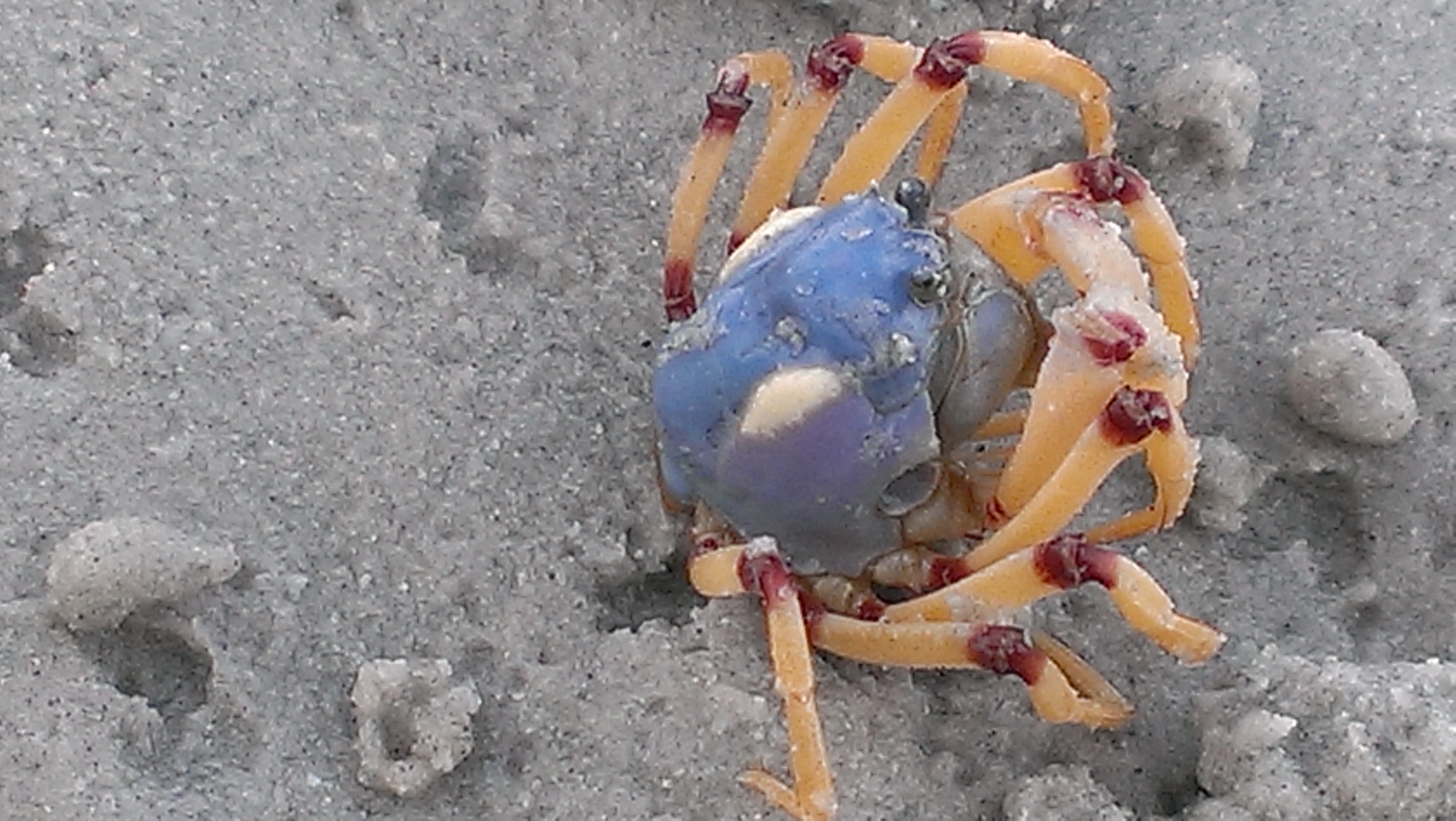 I was amazed by soldier crabs. I have not manipulated the colours at all. They really are blue, with burgundy elbows and knees! These creatures can vanish under the sand and pull the back door closed behind themselves in a very short span of time.