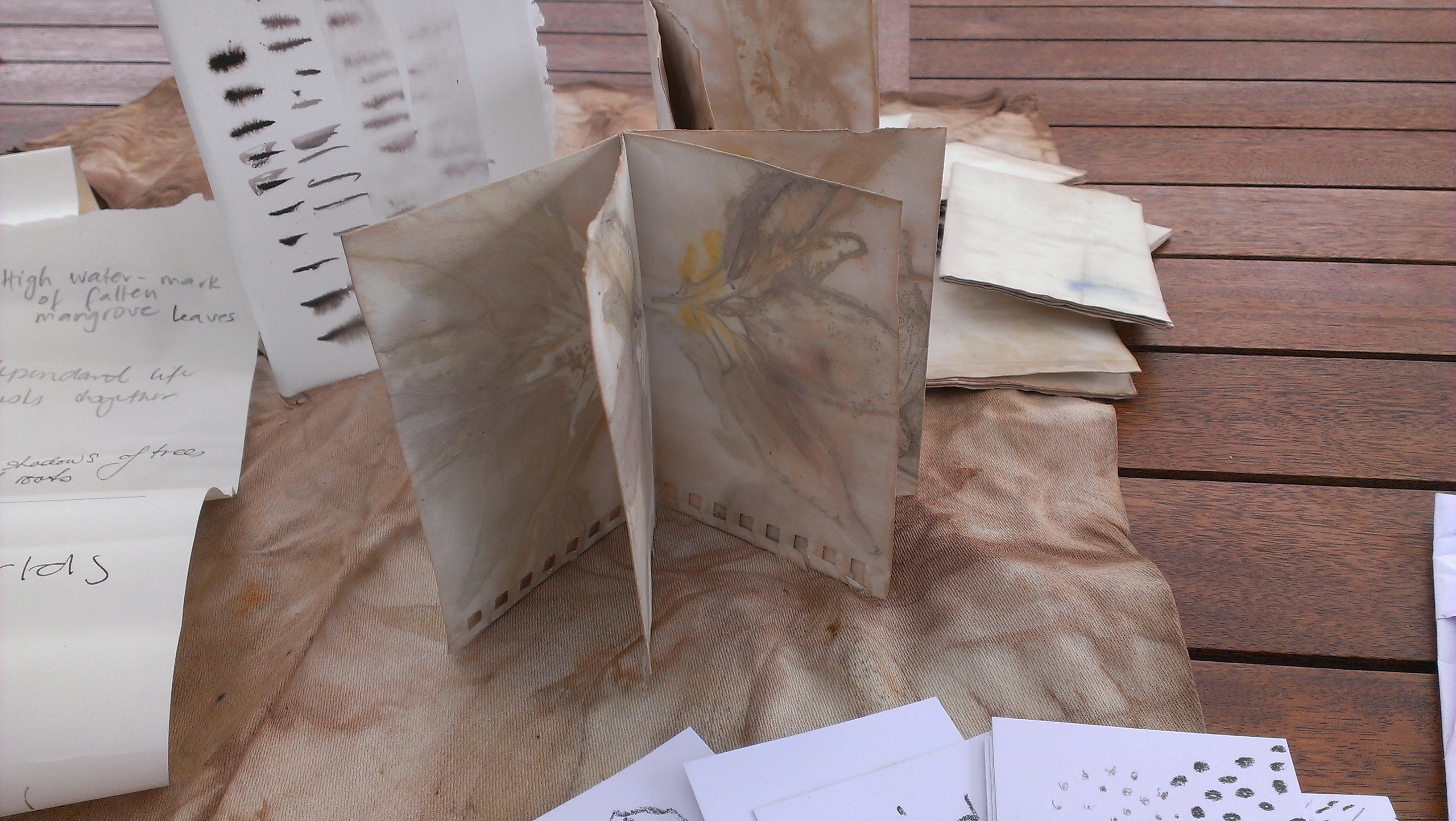 There were many different invitations to go out into the scrub or the mud flats or the paperbarks with a small set of creative constraints or a little imaginative task. Invitations to focus closely on the wonderment that is nature, and the mangrove flats and the Wallum in particular: to be with and among it, to be inspired by it. I was fascinated by this process. It seemed as though others had encountered it before–but many of my companions have had training as artists and I have not. I was in awe of others’ skills and imagination.