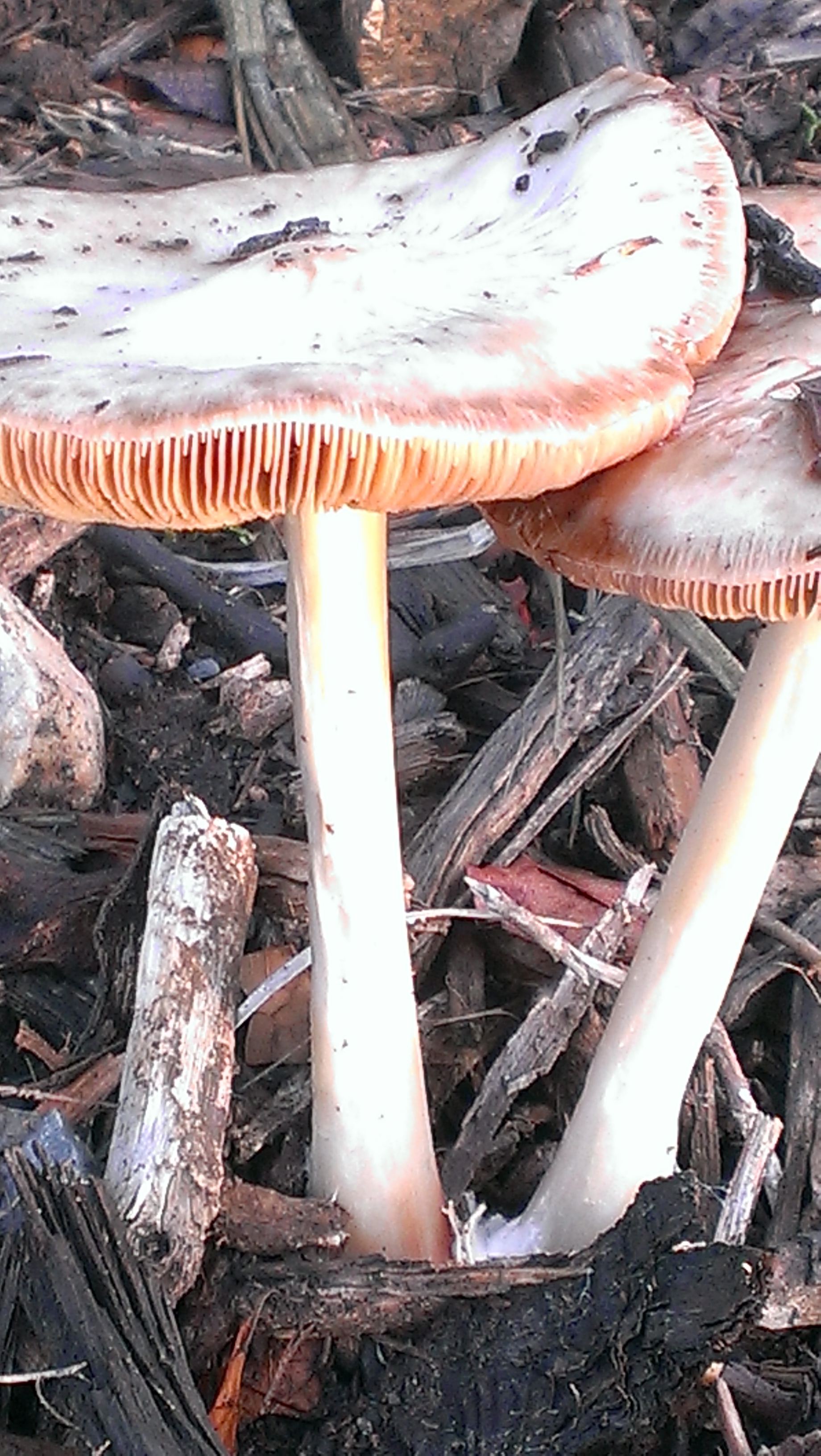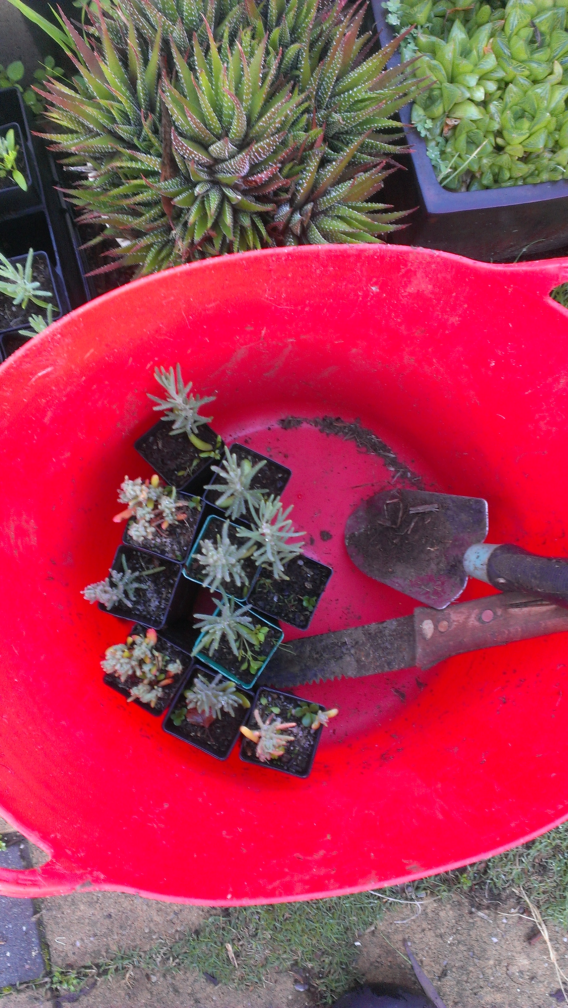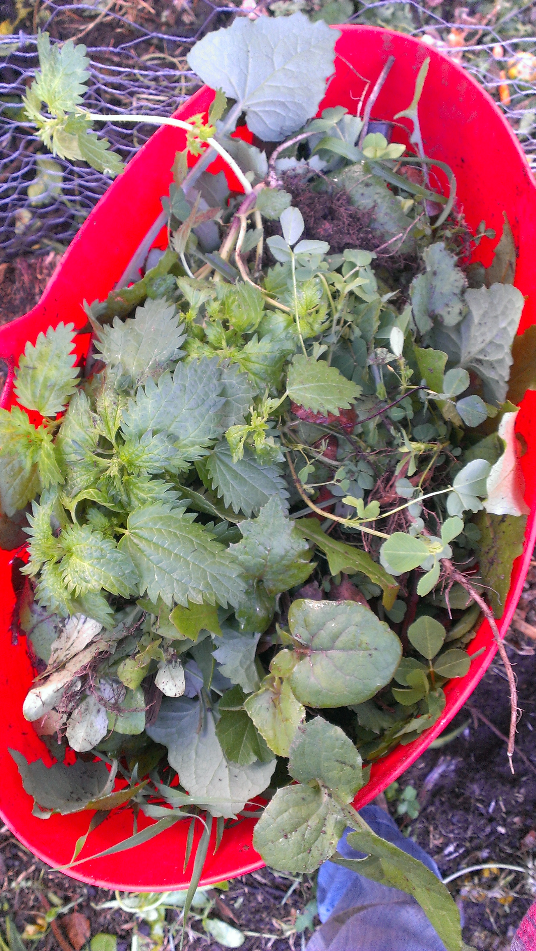 This morning there was a rainbow as I went out with my ten saltbush plants, my trowel and my fiendishly effective Japanese weeding tool. And these fungi had appeared. Some time later, I returned with a bucket full of weeds. More mulch has been appearing at random all over the neighbourhood, and it has become apparent that smaller plants are at risk of being buried (some I planted earlier in the week were buried the same day!) If weeds grow near little plants they are also at risk of being treated as weeds, since the poisoner doesn’t get out of his ute to check. As if to confirm my perception that now is the season for weeding, the poisoner’s truck passed twice as I worked, drawing attention to itself with the sound of its pump, and the driver was not the reluctant poisoner I’ve spoken to recently, so there is no guarantee he will recognise small saltbush as in need of protection.