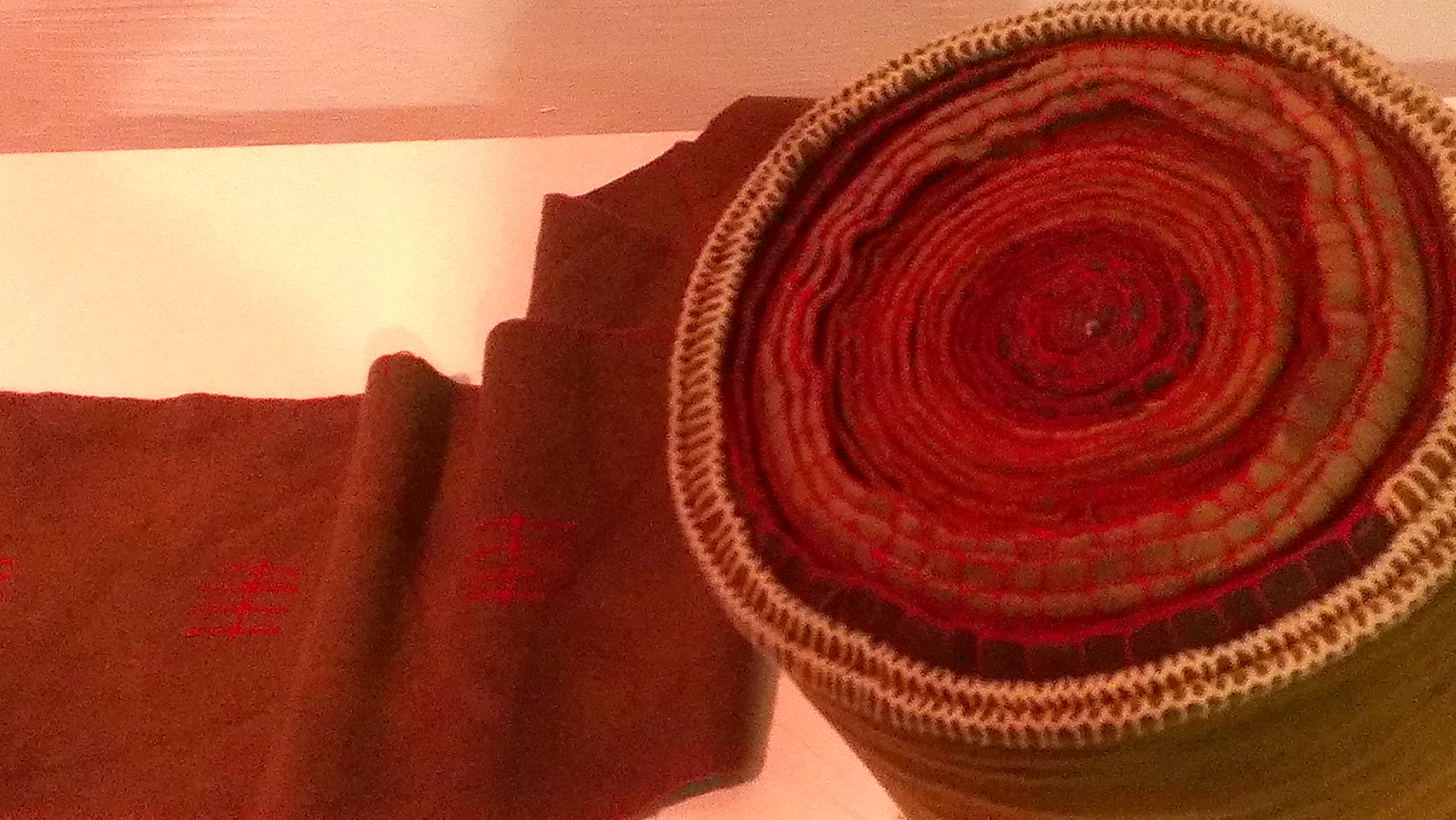 Here I am blending in to the artwork perfectly well in an India Flint original! This effect gave rise to numerous comments from passersby as well as friends, and there were a few strangers who needed to feel my sleeve. I completely understand the urge!