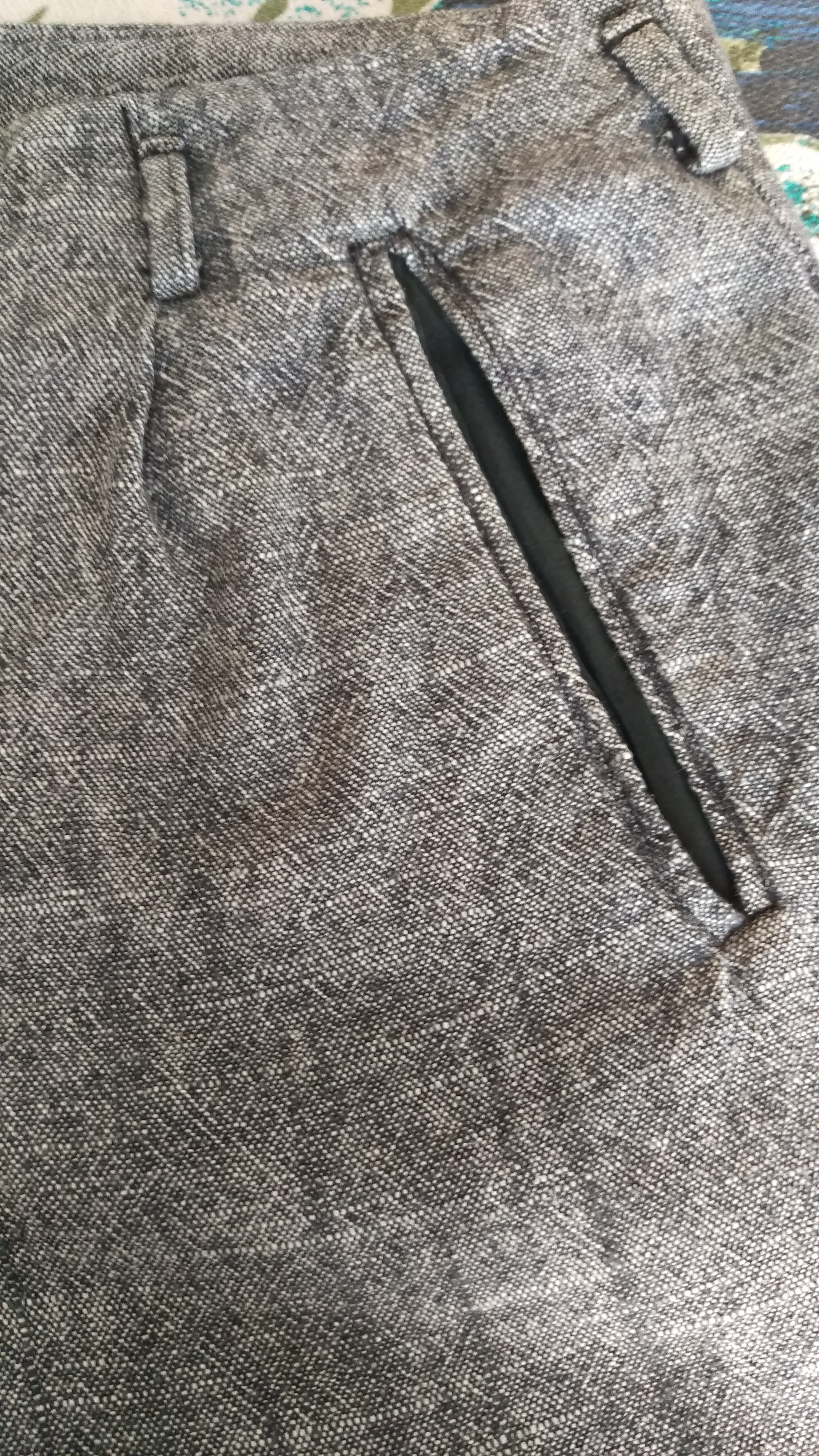 I followed all that mendbroidery up with replacing the pocket bags on a pair of pants I made, apparently in 2010 (there is a cryptic note in my notebook but no fabric scrap stapled beside it). They are Vogue 2698, though I have no aspiration to the studied ennui of the model on the envelope, nor her slenderness. I butchered the welt pockets when I made these pants, and haven’t made a welt pocket since! Just the same, there are some nice touches, like the home made bias binding made from recycled ties. I went all out on some of the finishing.