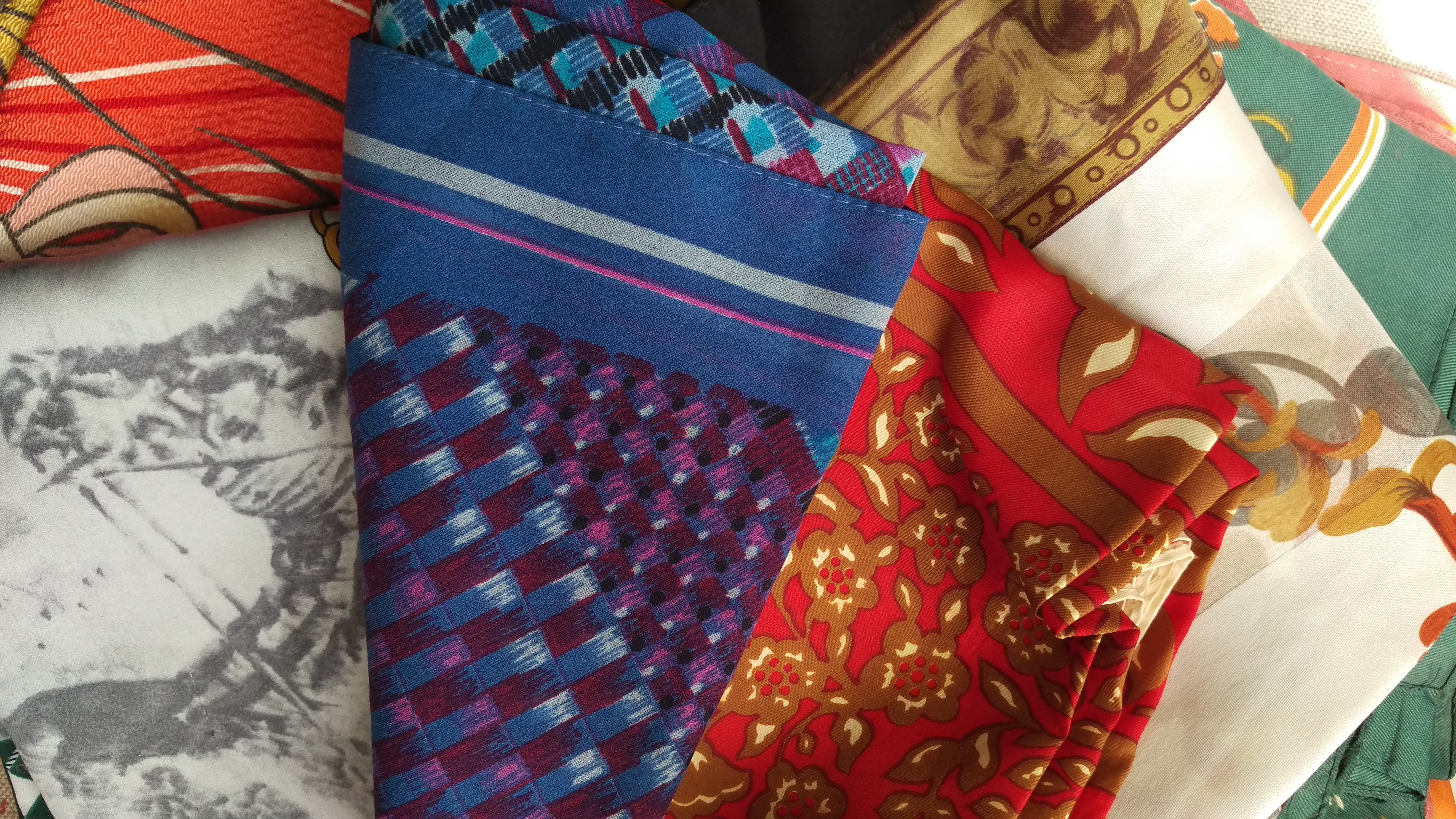 The pocket bags were made from one of my grandma’s many scarves. No one wanted them after she died. So I took her scarves home and have since used them for all kinds of things. I am not close to running out, and years have passed.