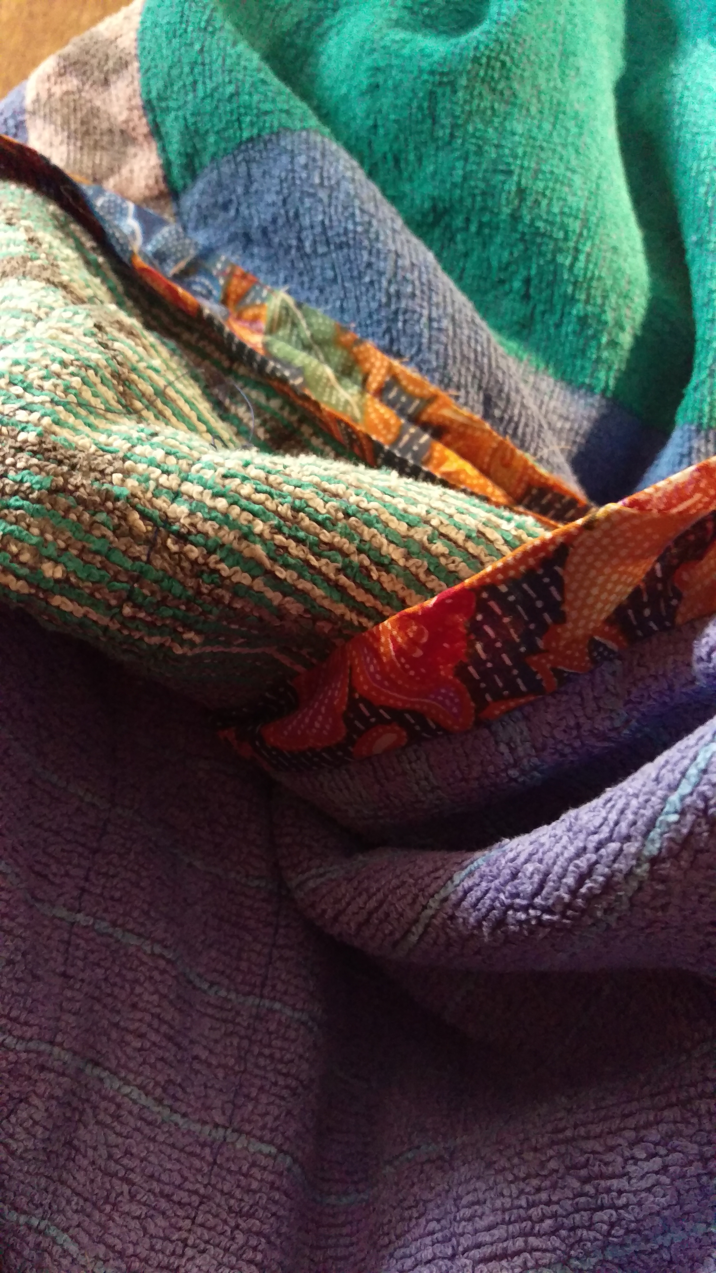 In went fermented citrus peel water and aluminium foil water (thank you to India Flint for yet another ingenious use of kitchen discards that are neither worm happiness nor chicken happiness)… fabric, threads, and so on… (last week’s batch are here for size comparison).