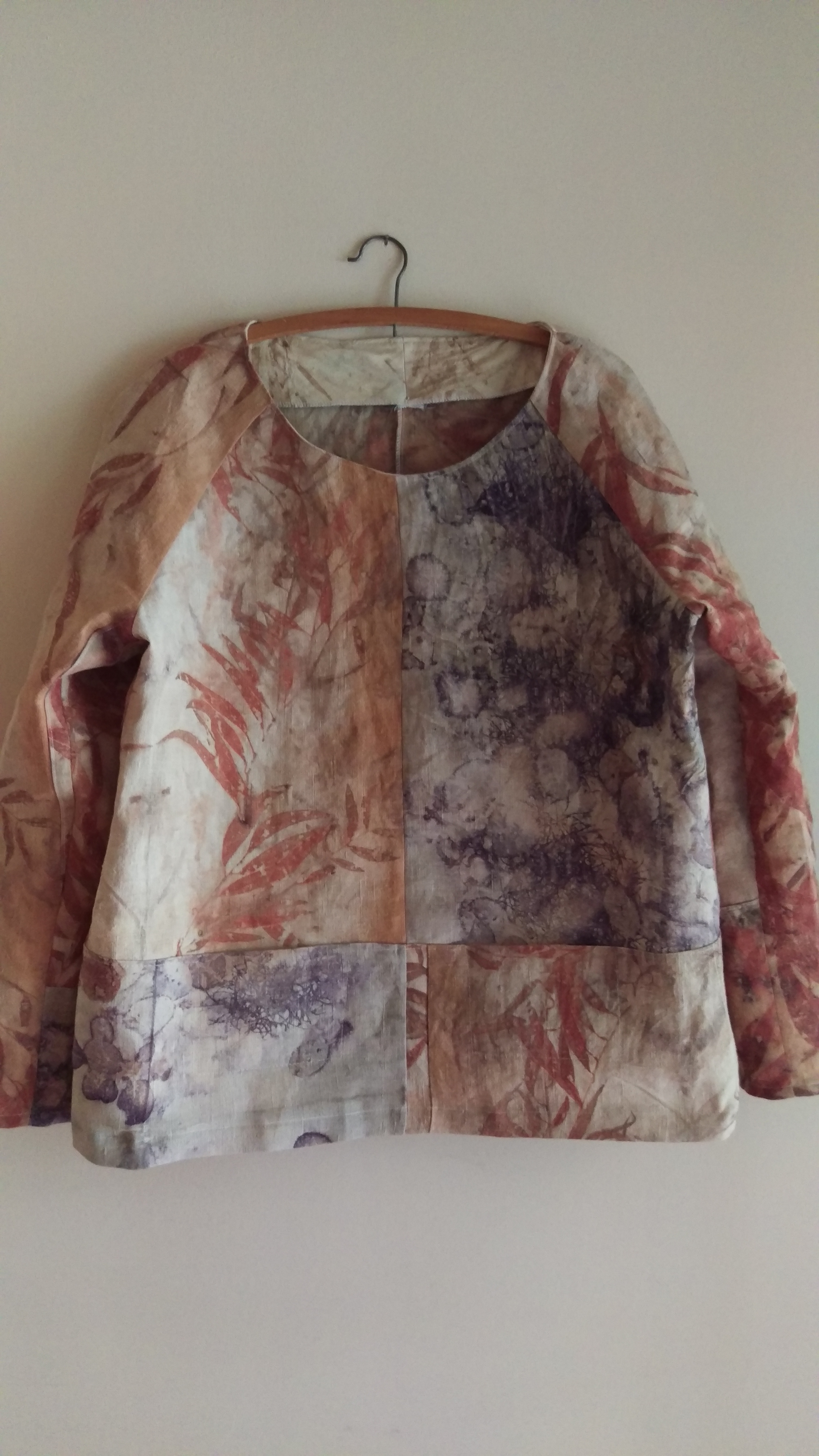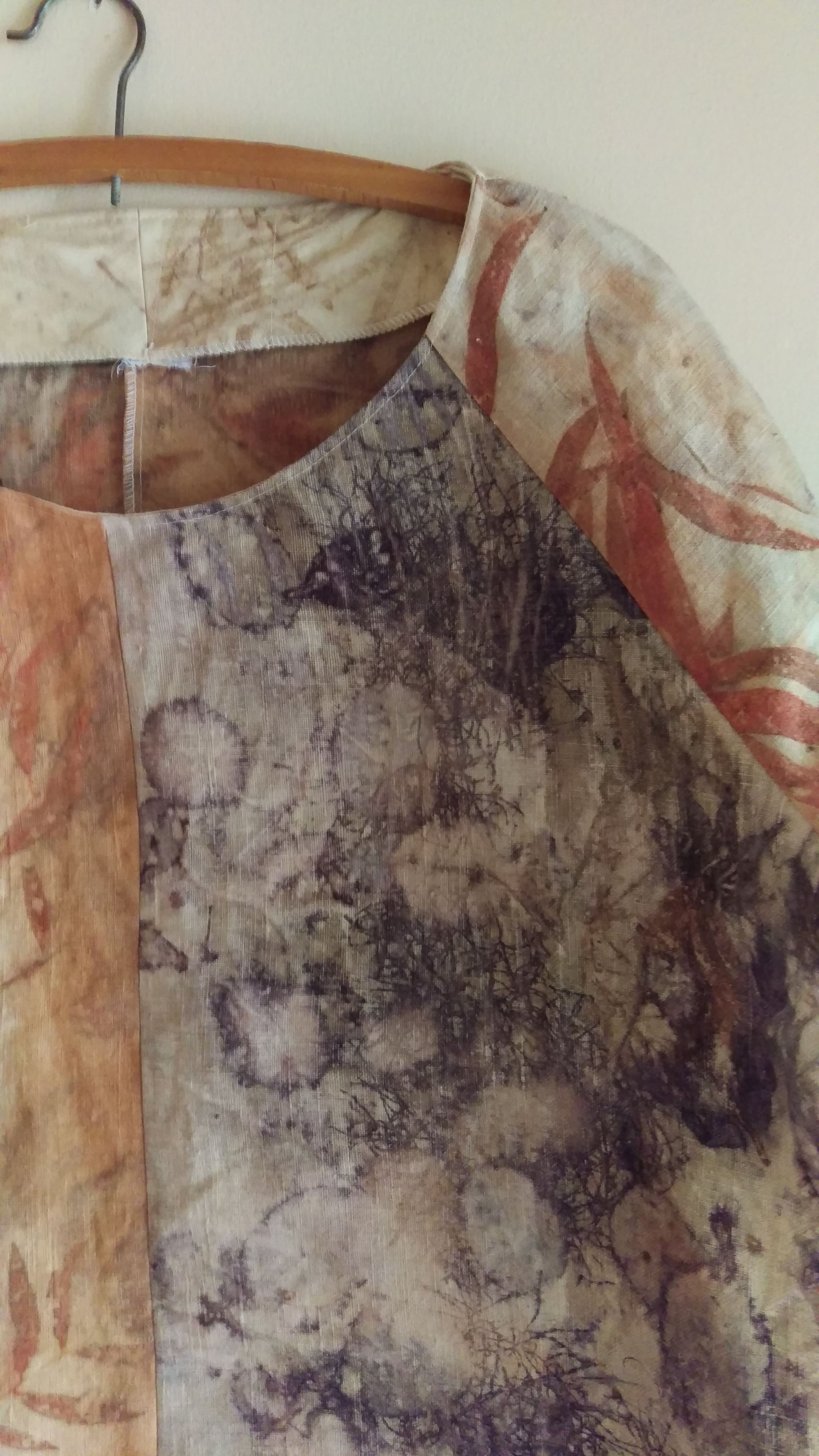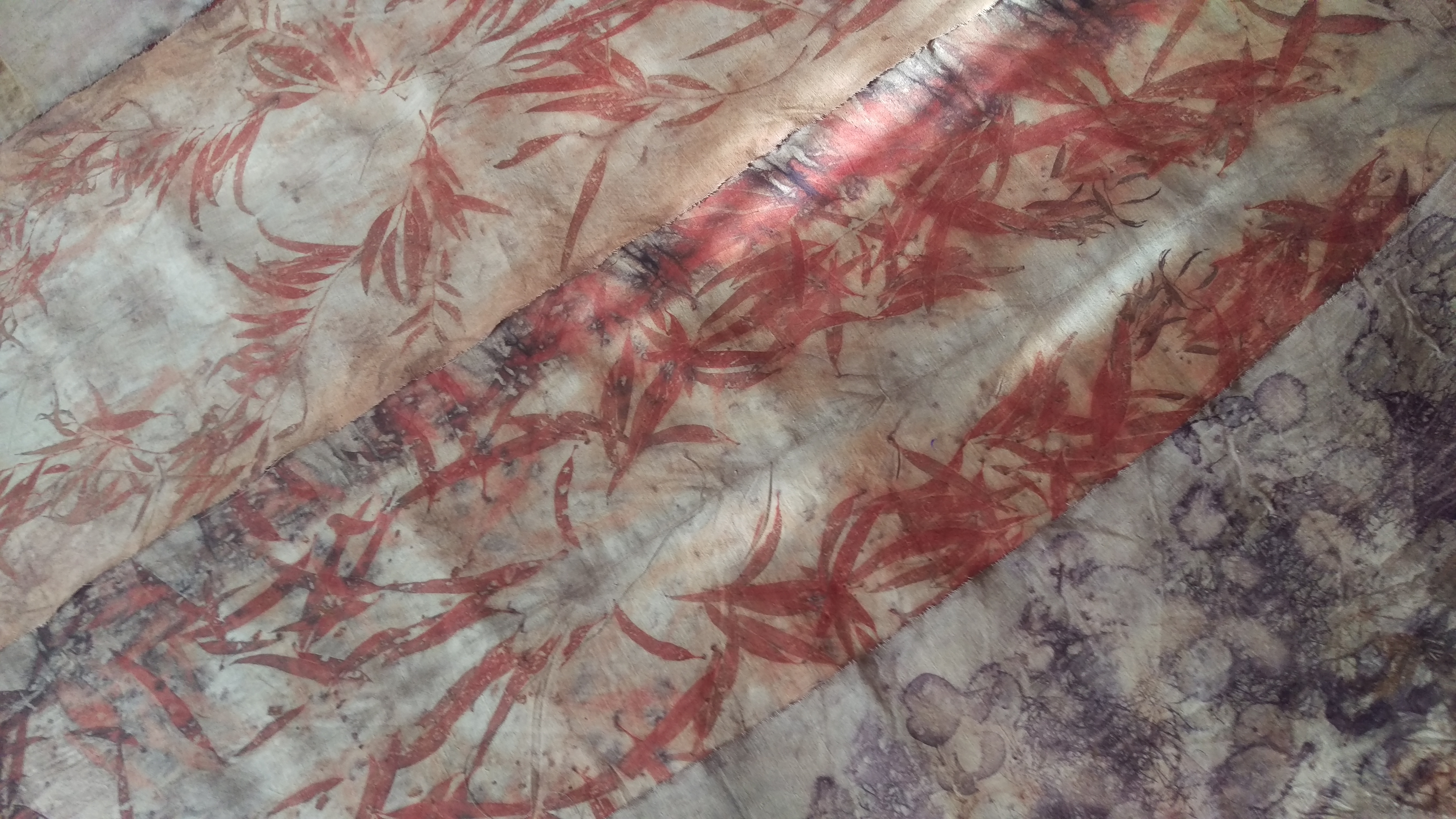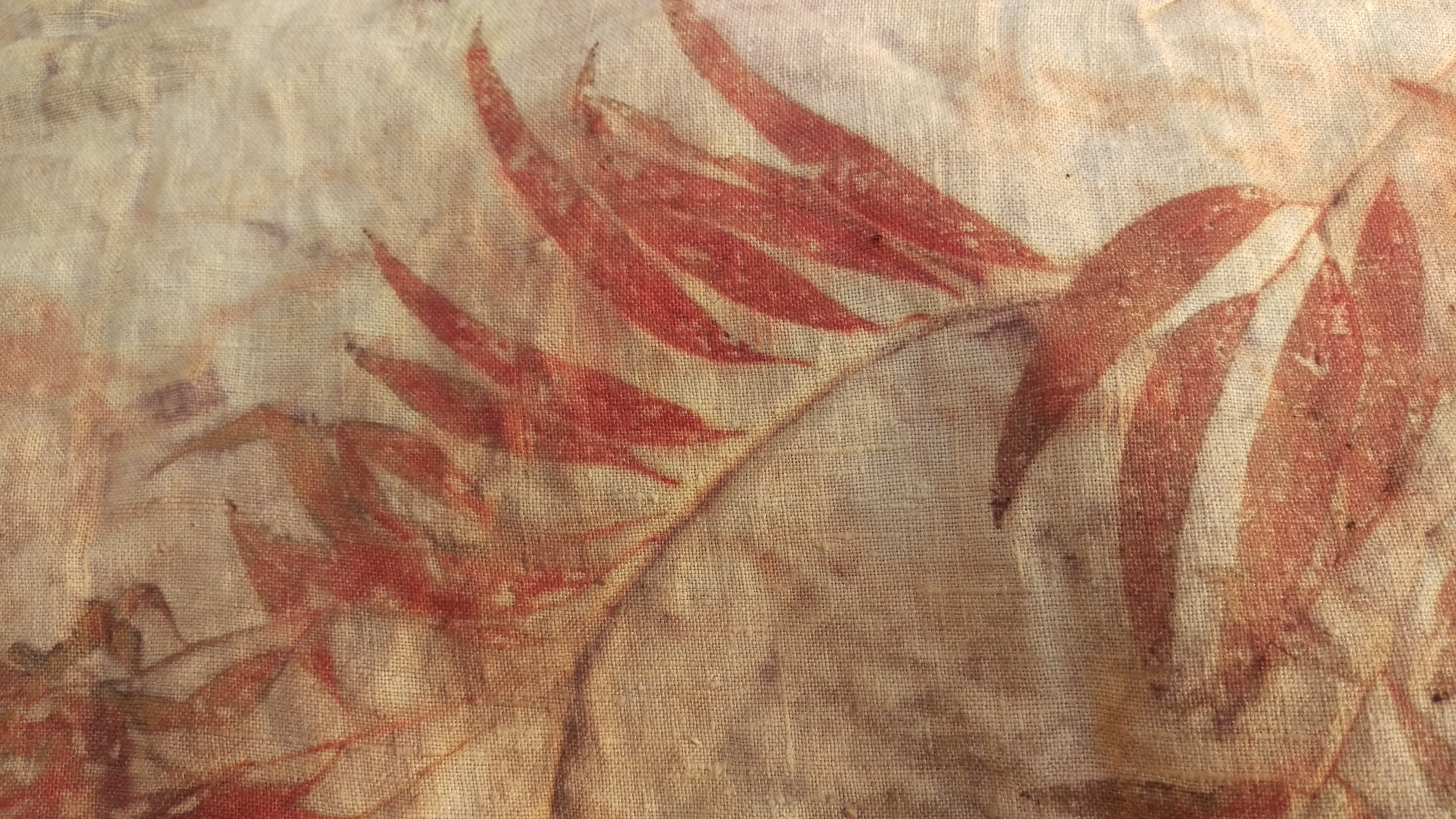 E Cinerea leaves on calico and hemp fabric left over from making a pair of shorts.