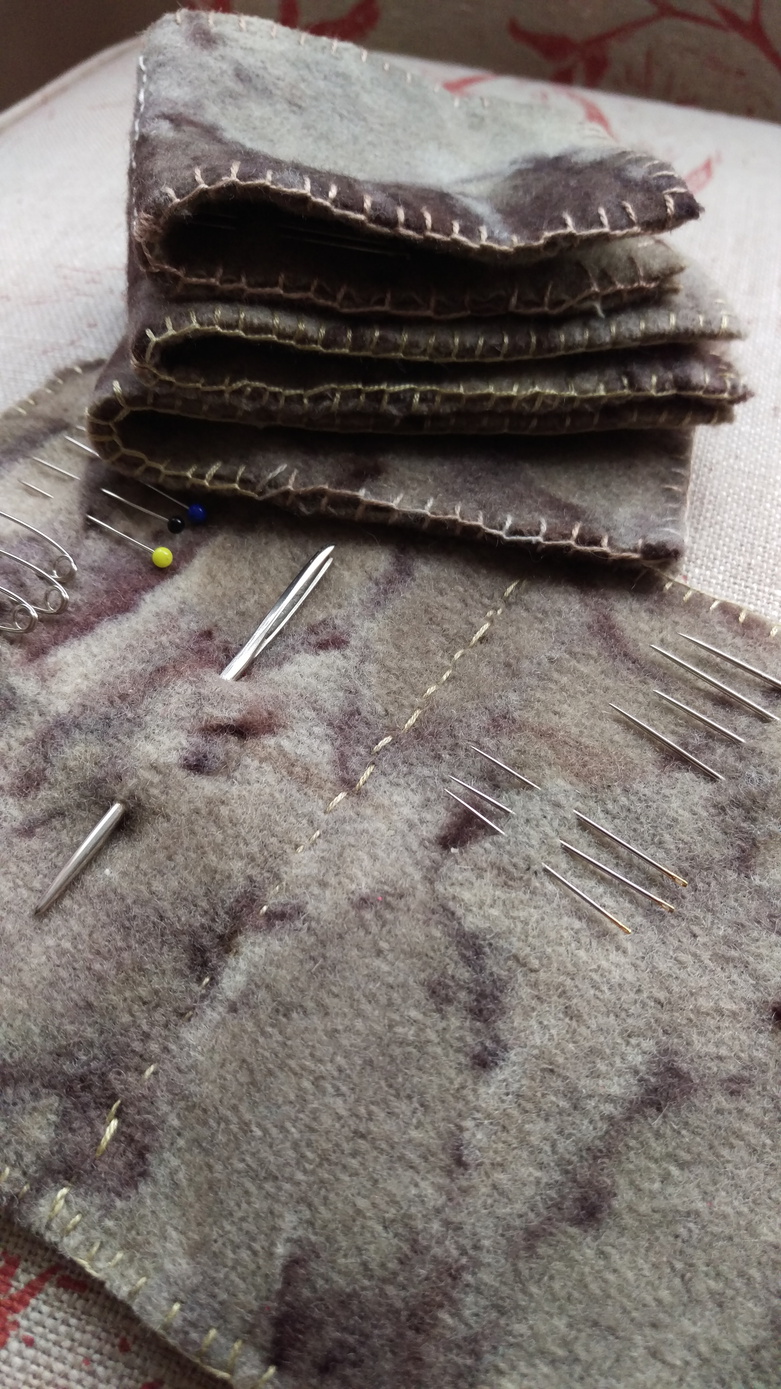 Day 4: Choose one of my grandma’s scarves for the pocket bags. Silk pockets!! I have looked up Clifford Bond online and found him listed alongside vintage silk scarves. This one is vintage, certainly. It is also stained and well loved. To my surprise, when I ironed it, a faint waft of my beloved, stylish grandmother’s cosmetic choices wafted up, even after so many years. The silk is beautiful quality to my way of thinking, and the hand rolled hem is exquisitely stitched. The tiny tag says it was made in Japan. I do not know how Merle would have come to have this scarf. She had many, and they were a style statement of hers so well recognised she received many as gifts.