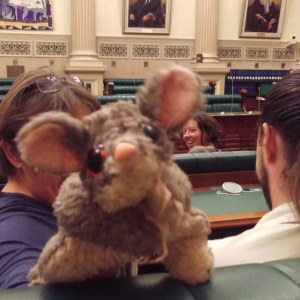 Then there was doing a quiet recce at parliament house, where I can highly recommend the tour. It is informative and there are some beautiful things to be seen as well as some evidence of the corruption that featured in the colonial period to be heard of!  Above, some of the suffragists responsible for our state granting women the right to vote (after Aotearoa/New Zealand led the way) as well as the right to stand for parliament (included in the Bill as an amendment, expected to sink the Bill and defeat the suffrage–there has to be comeuppance sometimes!)  The women’s suffrage centenary tapestries in the lower house of parliament were woven by local weavers as a community arts project and there are many members of my Guild listed as weavers.