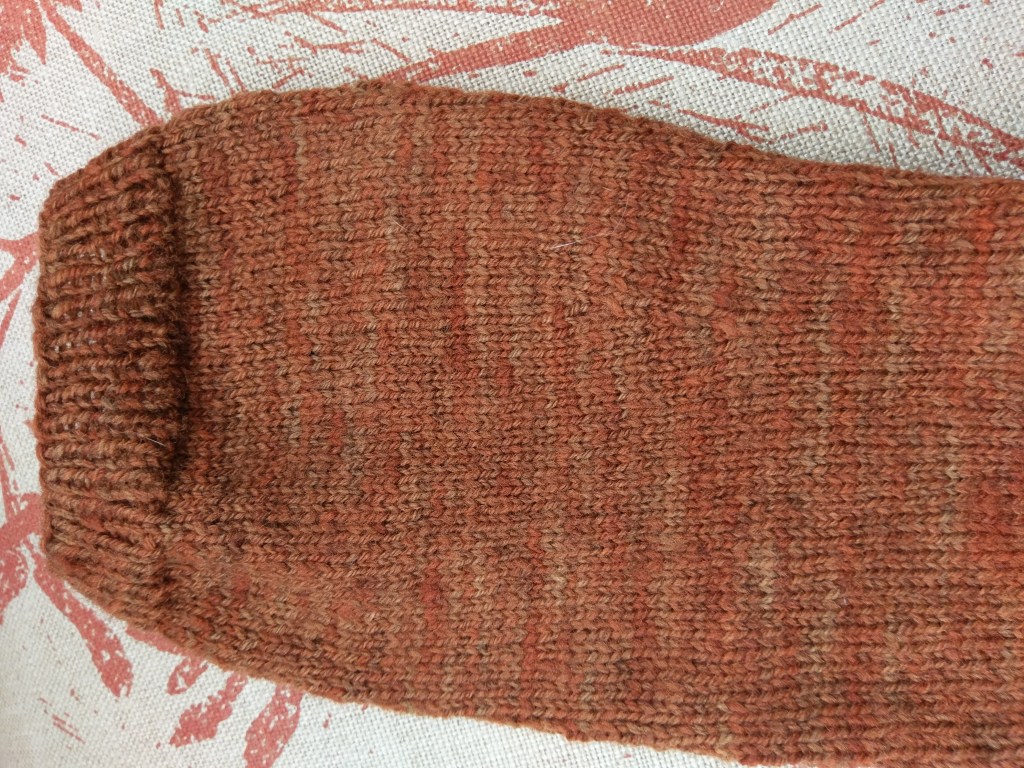 Feet knit with Ryeland from Victoria, dyed with walnut hulls. Why did I not reinforce the toe? Mysteries in sock knitting (in other words–I have no idea what I was thinking)! There were a LOT of walnuts from friends who have moved to a house with a huge, beautiful tree. This is the result of my dyeing effort.