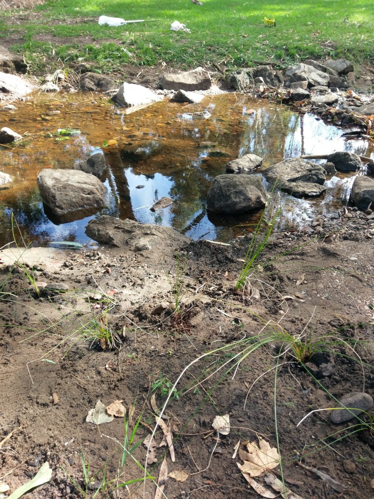 Sedge planting went first–in co-operation with others who have a more authorised relationship with the Council. There was a man playing his clarinet in the park the day these went in beside Brownhill Creek.
