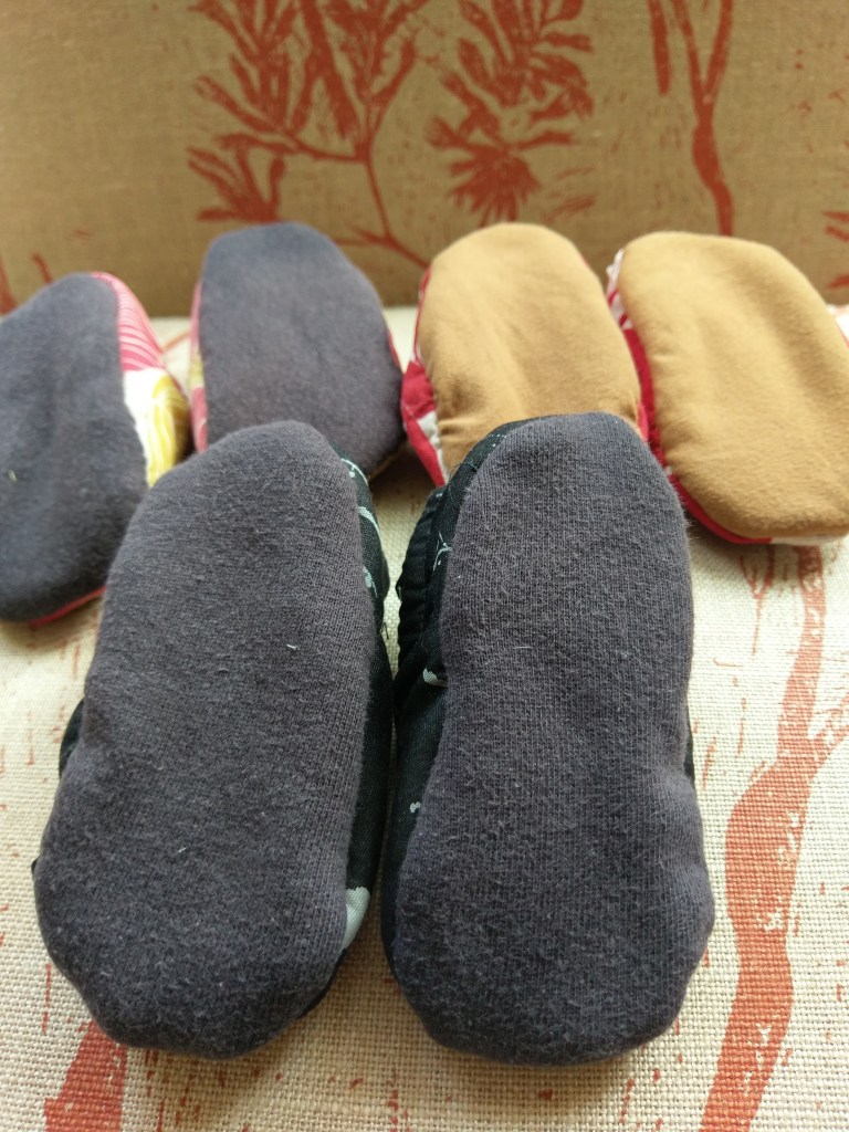 In these strange times, it was rather delightful to get a call from my daughter requesting baby socks, baby mittens and “do you know what soft shoes are? Could you make them?” I found a pattern on Spoonflower, and off I went!