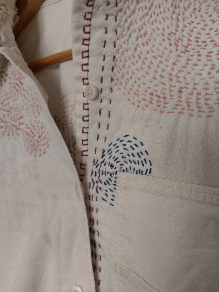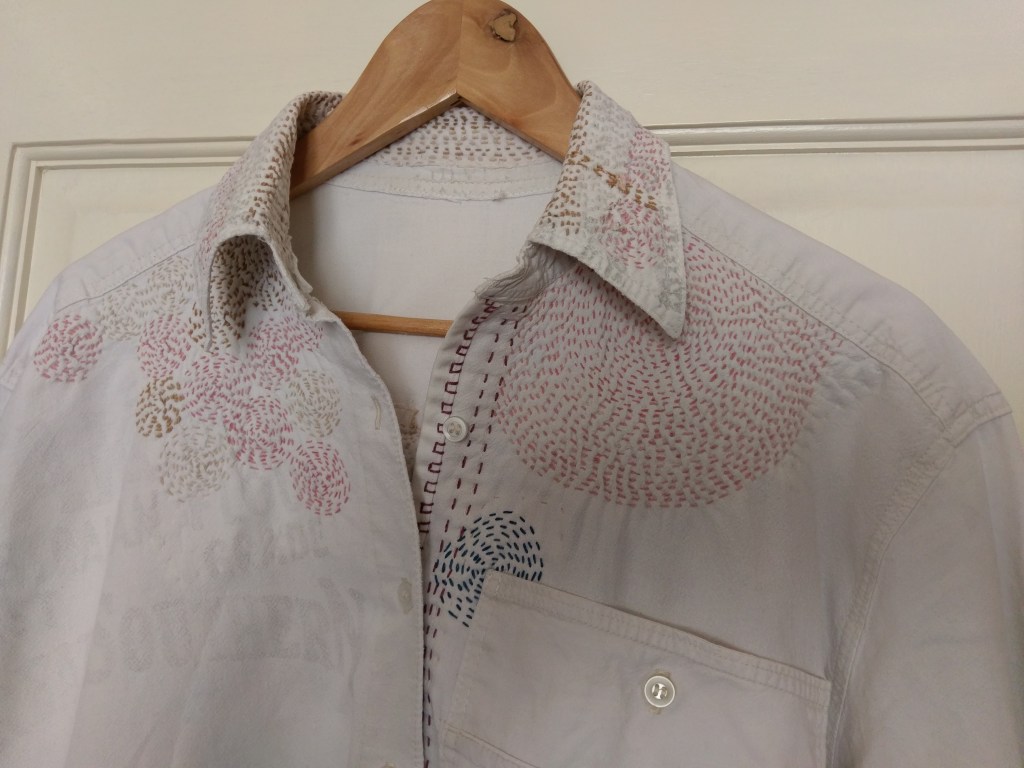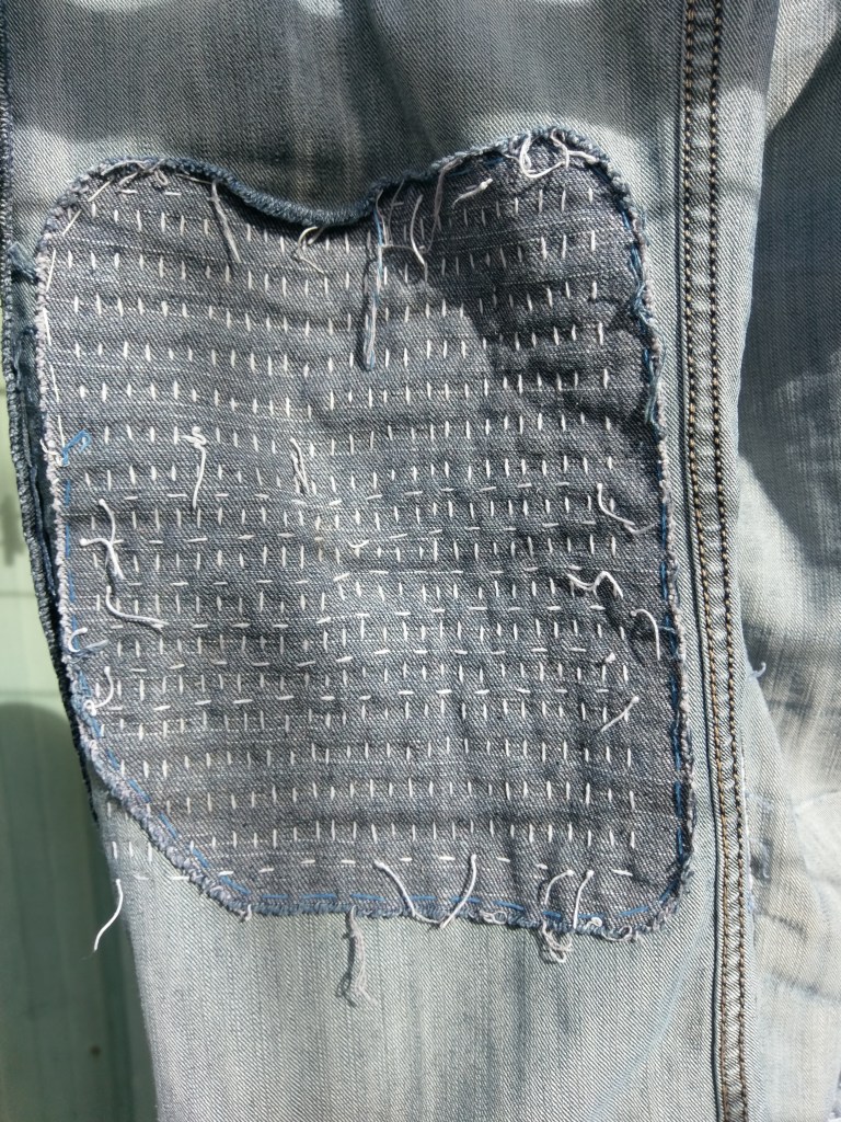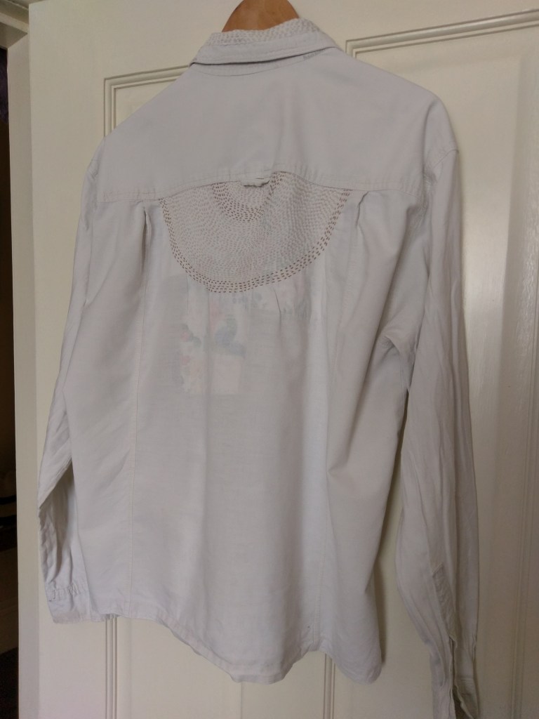 The back is now so thin the patches from my mother-out-law’s kimono dressing gown can be seen right through it. But I love wearing this shirt… it feels so soft and lovely and is such a good gardening companion. I’m just going to wait and see when the time comes that I don’t want to mend it again.