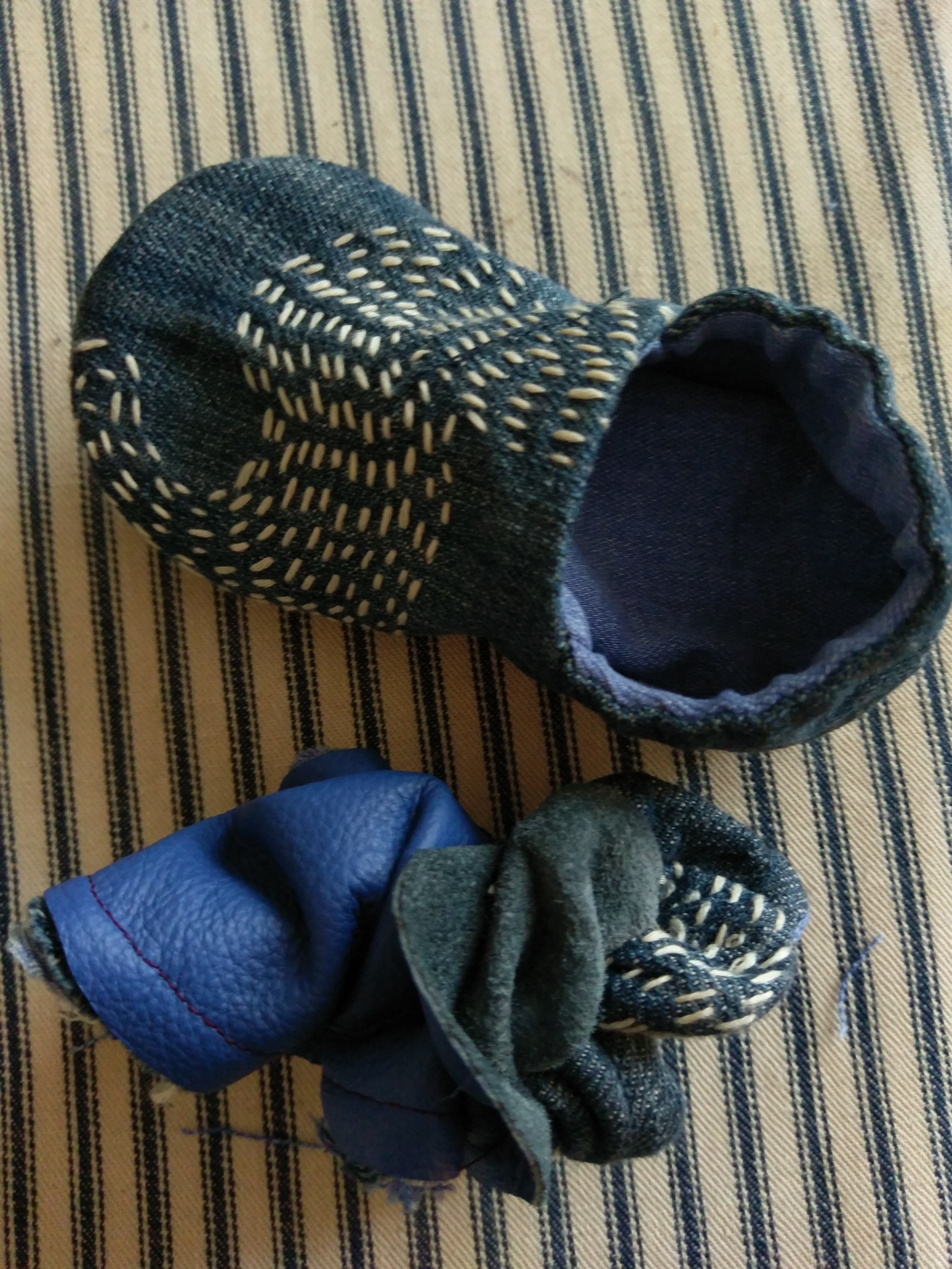 This attempt was a better fit (despite them looking so little alike, *cough*), so here is another pair, made from pre-loved jeans fabric.