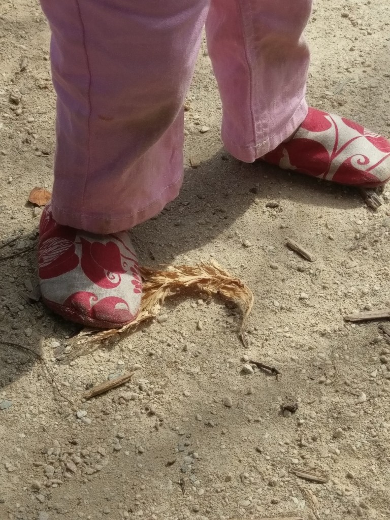 In the sand pit! (this pair came to an early and appalling end, but they did their job, protecting precious little feet)…. the denim pair are clear favourites at the moment. I have been highly entertained to hear my daughter refer to them as “the Van Goghs”!