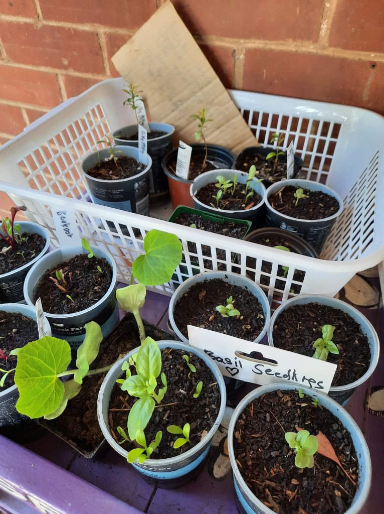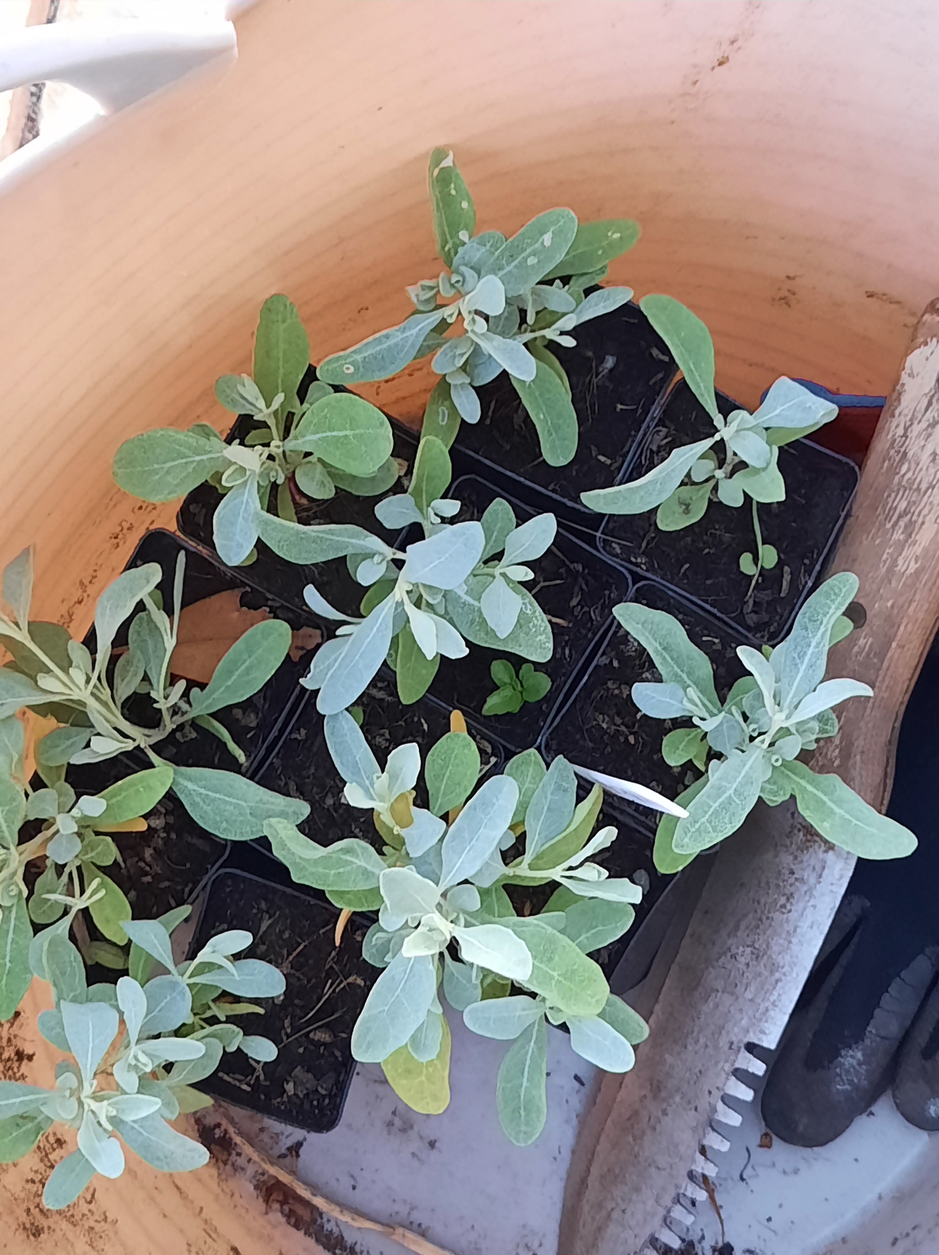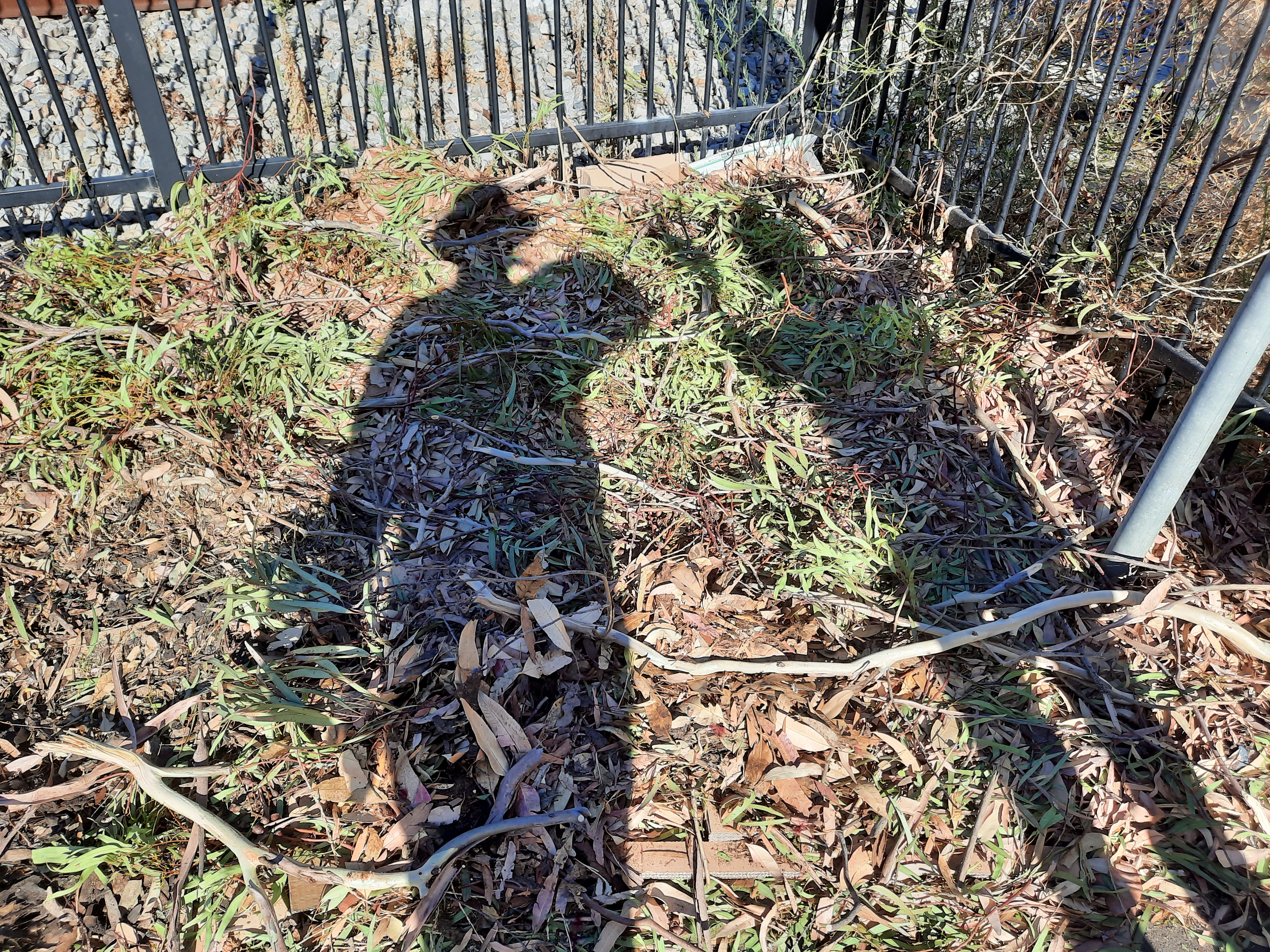 While we were there, a woman pulled over on her bike. She is older than me, and I see her cycling in my area really often, always in a dress, frequently going at a very fast speed. What a role model! She said she had formed the impression that the two of us had taken responsibility for this area of the rail corridor and she was wondering if some ruby saltbush that are coming up at her place might be a good fit. Absolutely! We said. So it appears we are now a team of three (in a very loose sense). We hope that rain is coming, and I have lots of plants to put in. Meanwhile, yesterday a friend dropped by with a stack of pots from her day job, that will be perfect for propagating. Might be time for cuttings…