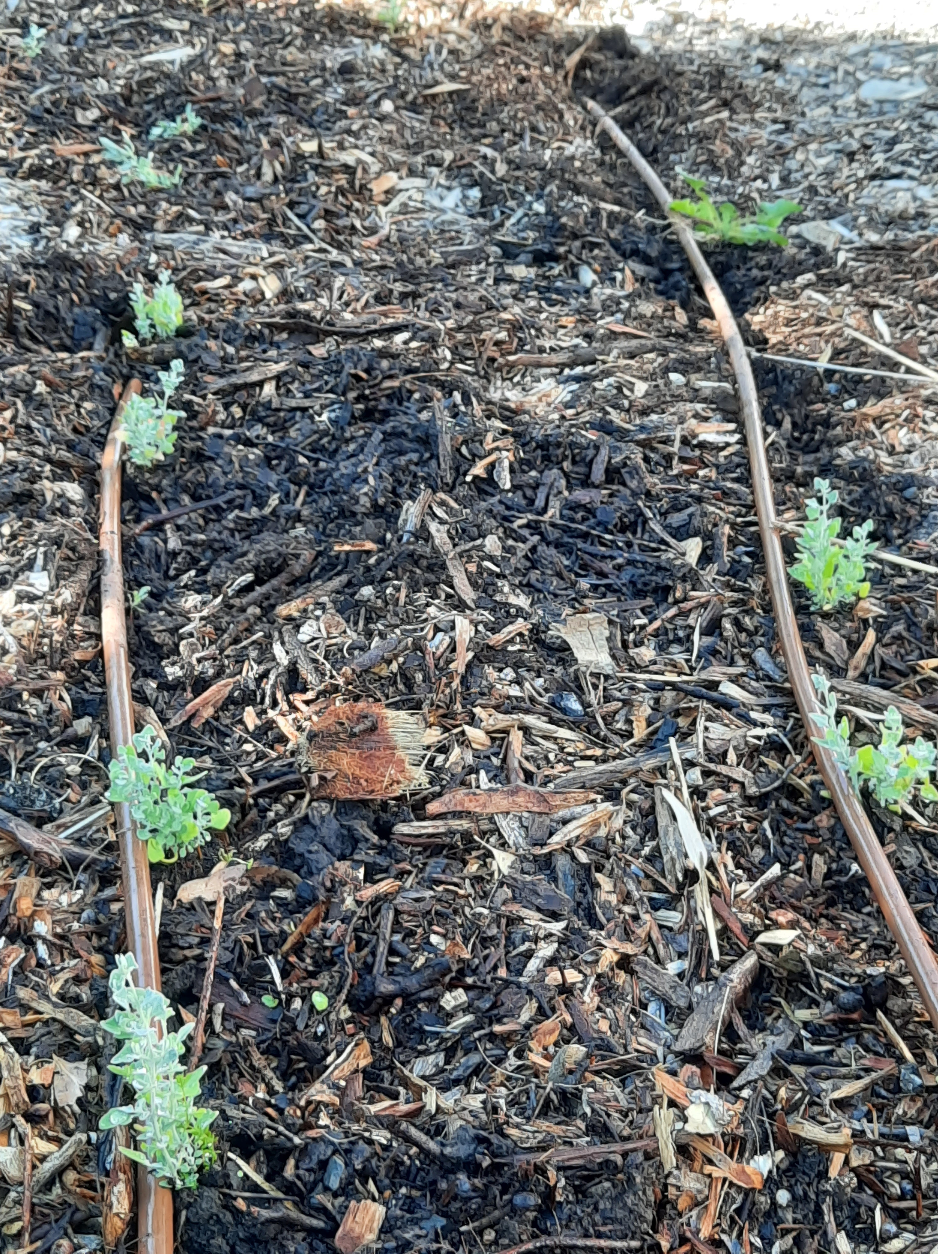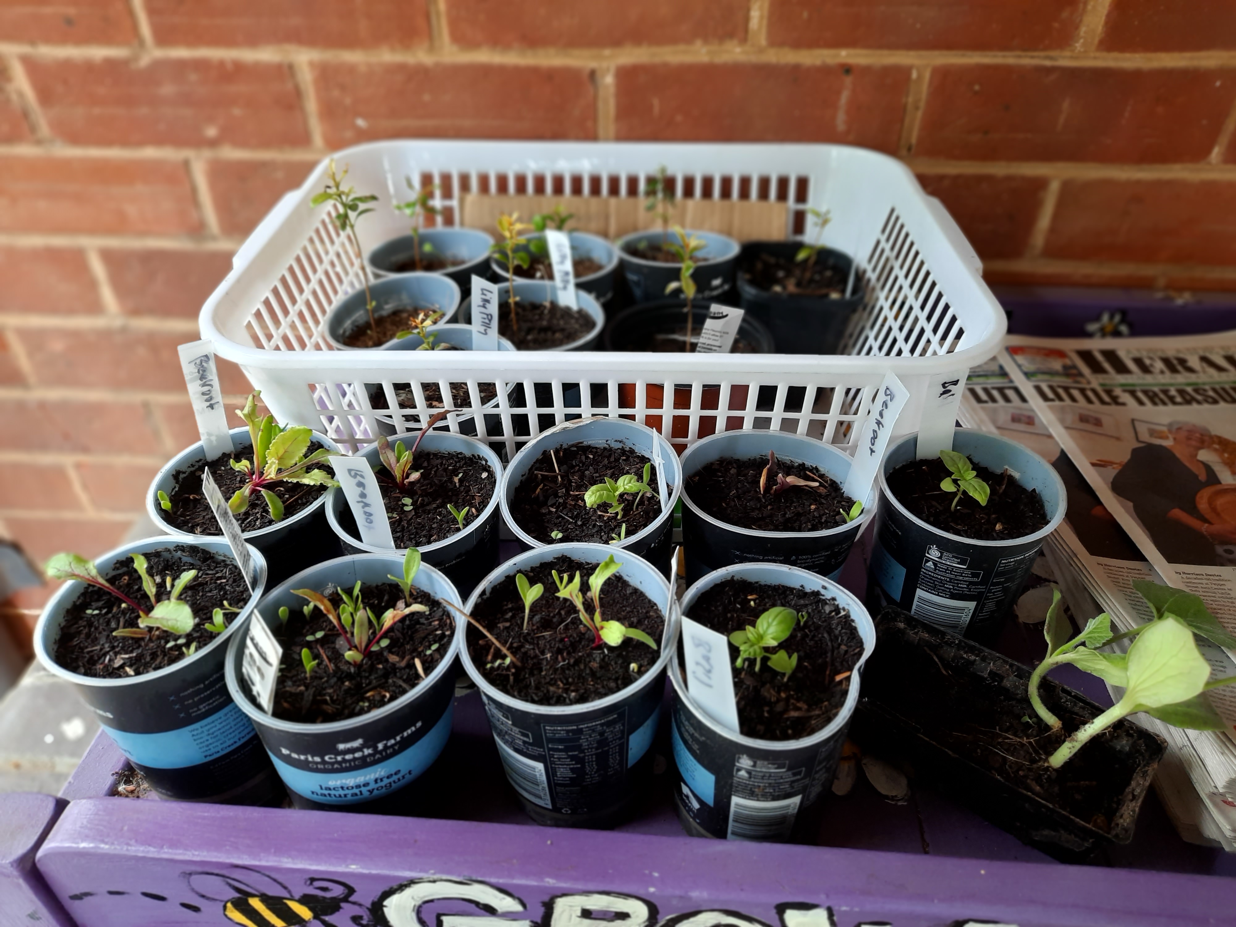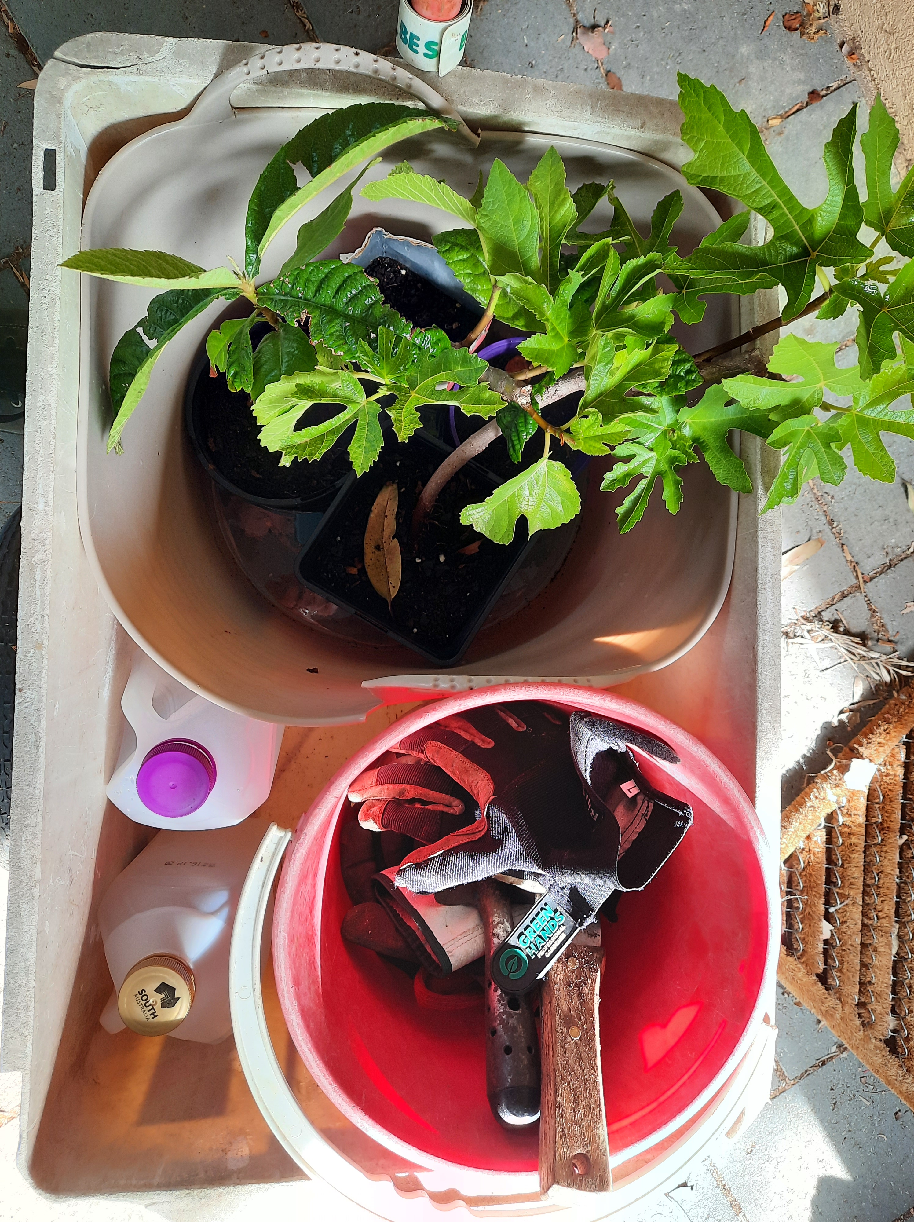 While we were there, a woman pulled over on her bike. She is older than me, and I see her cycling in my area really often, always in a dress, frequently going at a very fast speed. What a role model! She said she had formed the impression that the two of us had taken responsibility for this area of the rail corridor and she was wondering if some ruby saltbush that are coming up at her place might be a good fit. Absolutely! We said. So it appears we are now a team of three (in a very loose sense). We hope that rain is coming, and I have lots of plants to put in. Meanwhile, yesterday a friend dropped by with a stack of pots from her day job, that will be perfect for propagating. Might be time for cuttings…