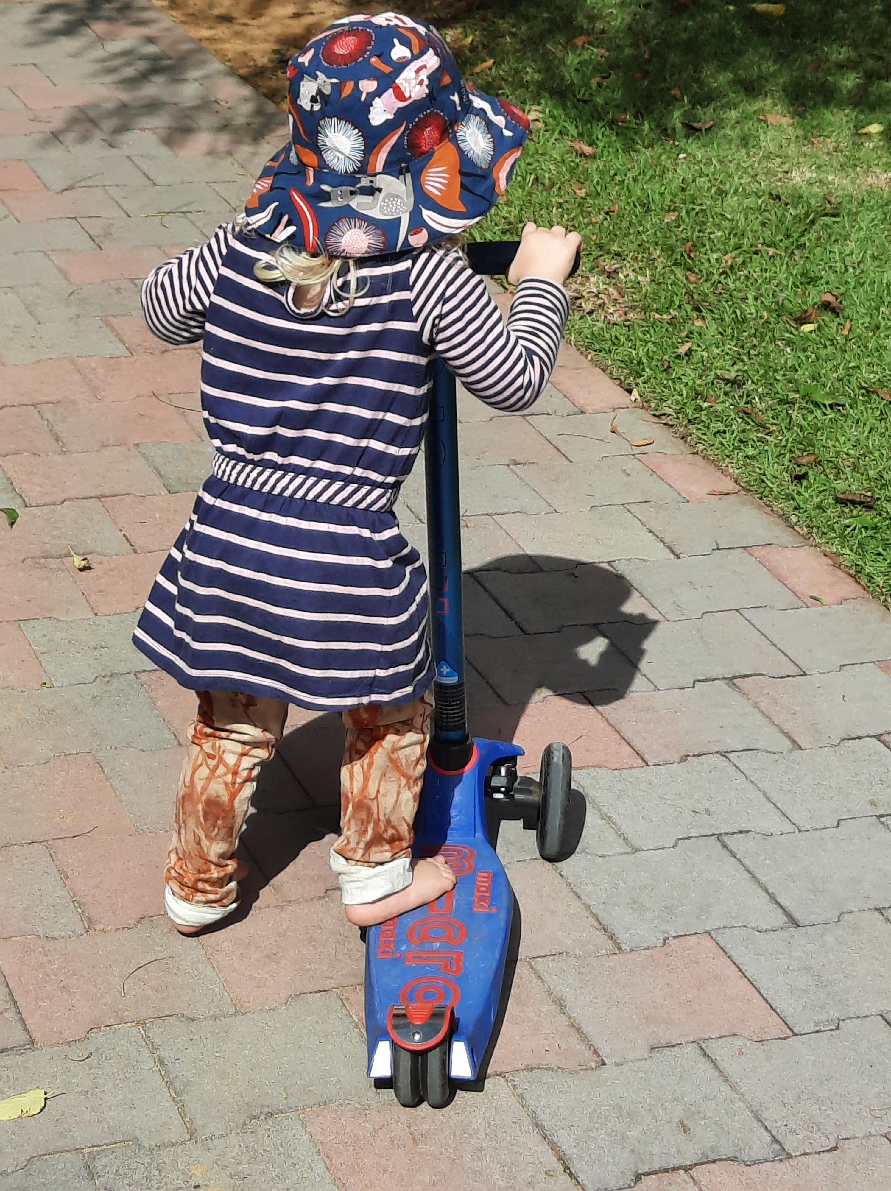 Here is my load heading out. I also had parcels for the grandbub to open! The hat, and a jumper that’s about to pop out of that package… This was a moment when I realised that I was wearing #memendedMay but she was wearing #memadeMay (pants, jumper and hat all made by yours truly).