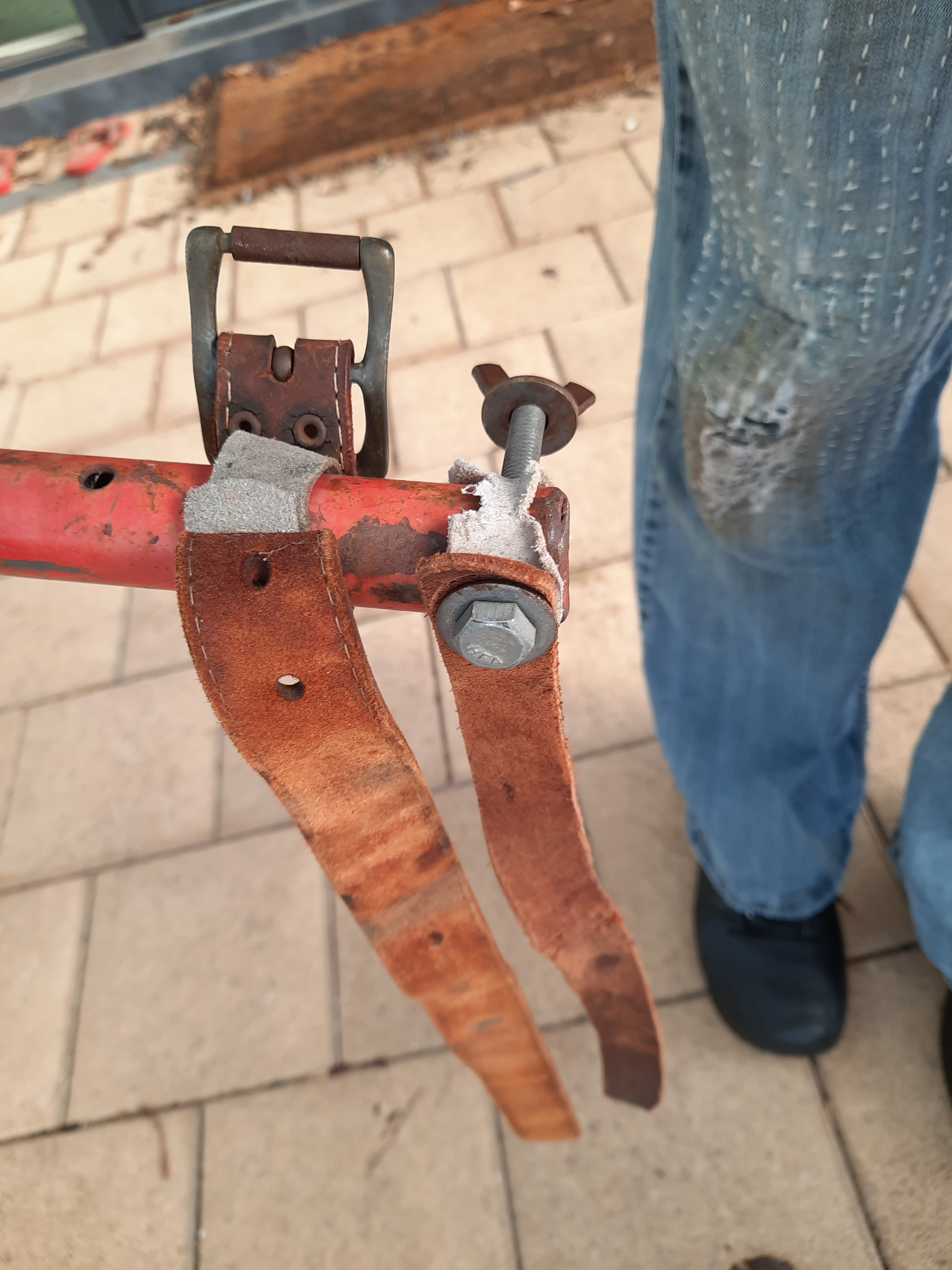 Dad replaced the sad old box that was the main component of the trailer with one he had used a lot in much better condition. He regreased the hubs, and reinforced a part of the tubing that was worn through, with a second hand metal bracket. The missing hub cap has been replaced with the lid from a deodorant (!) He even used some paint he had to make it look nicer and protect the metal of the tubing. I have absolutely loved having it returned to smooth operation, and seeing how he decided to approach this job, makes me feel like a chip off the old block!