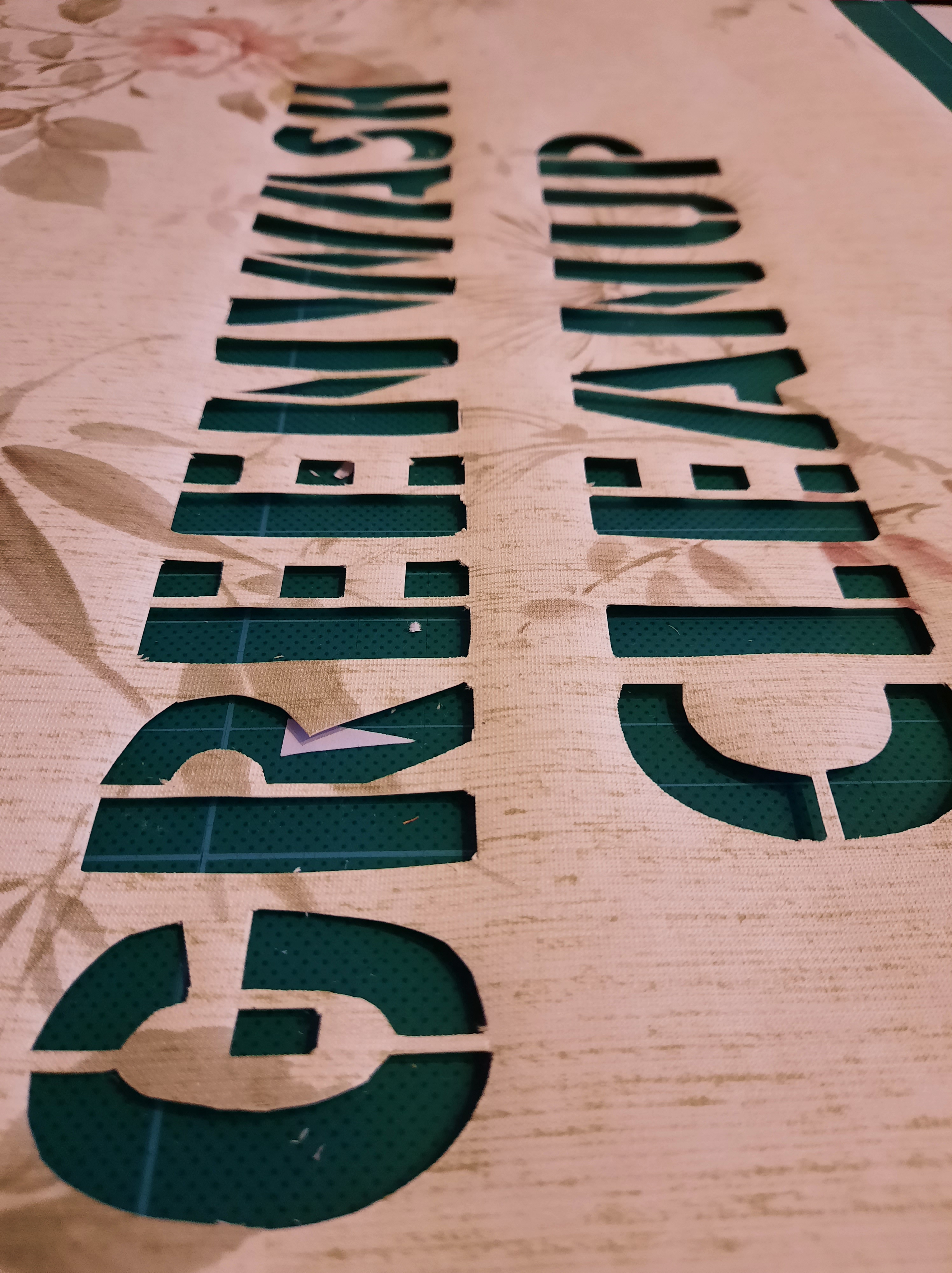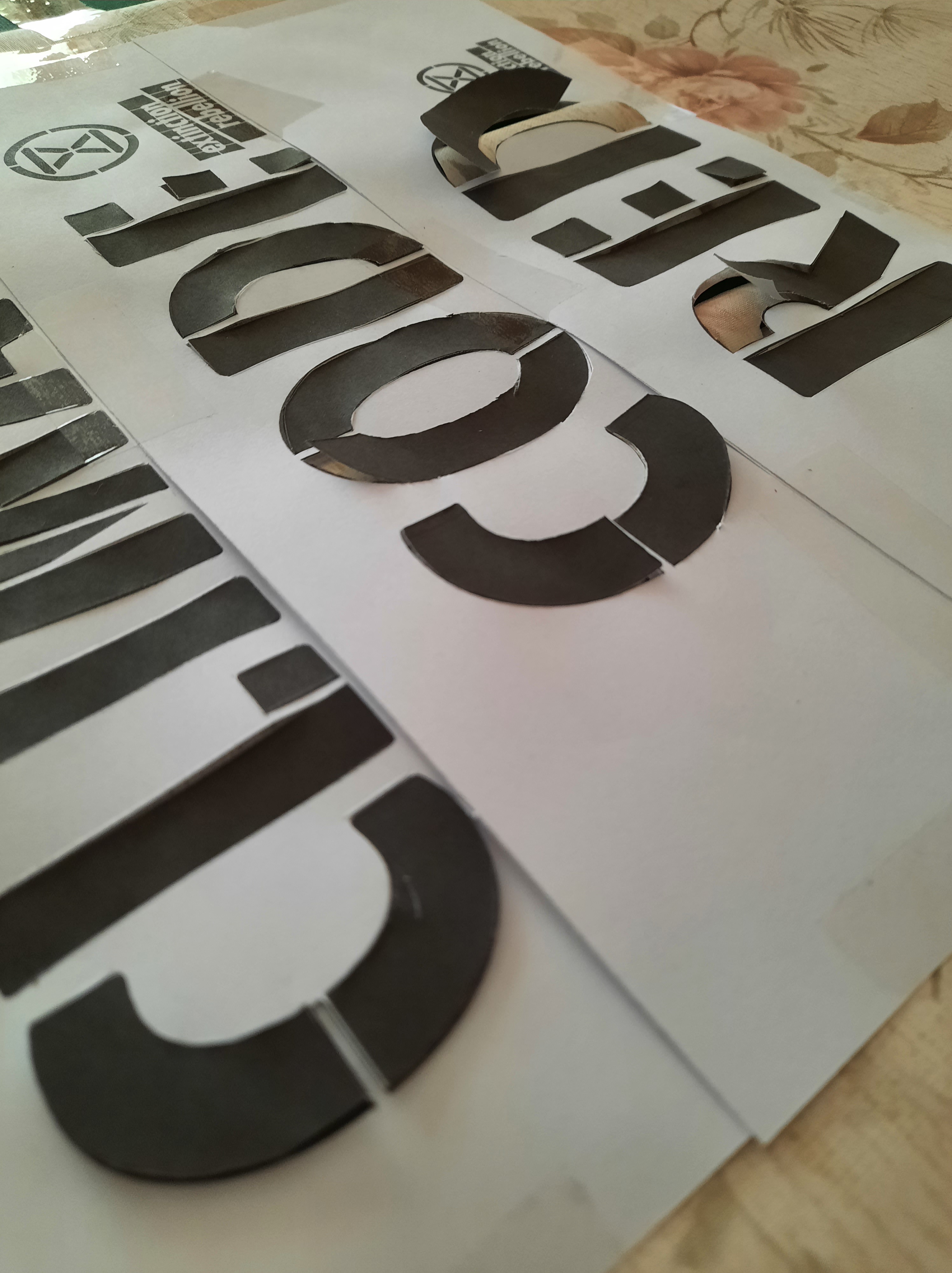 This is my classic hand cut stencil. I start with unloved wallpaper from the Adelaide Remakery and the XR font, and then move to using it with a screen. This is the way I learned to screen print in the 1980s. Basic, but it does the job!