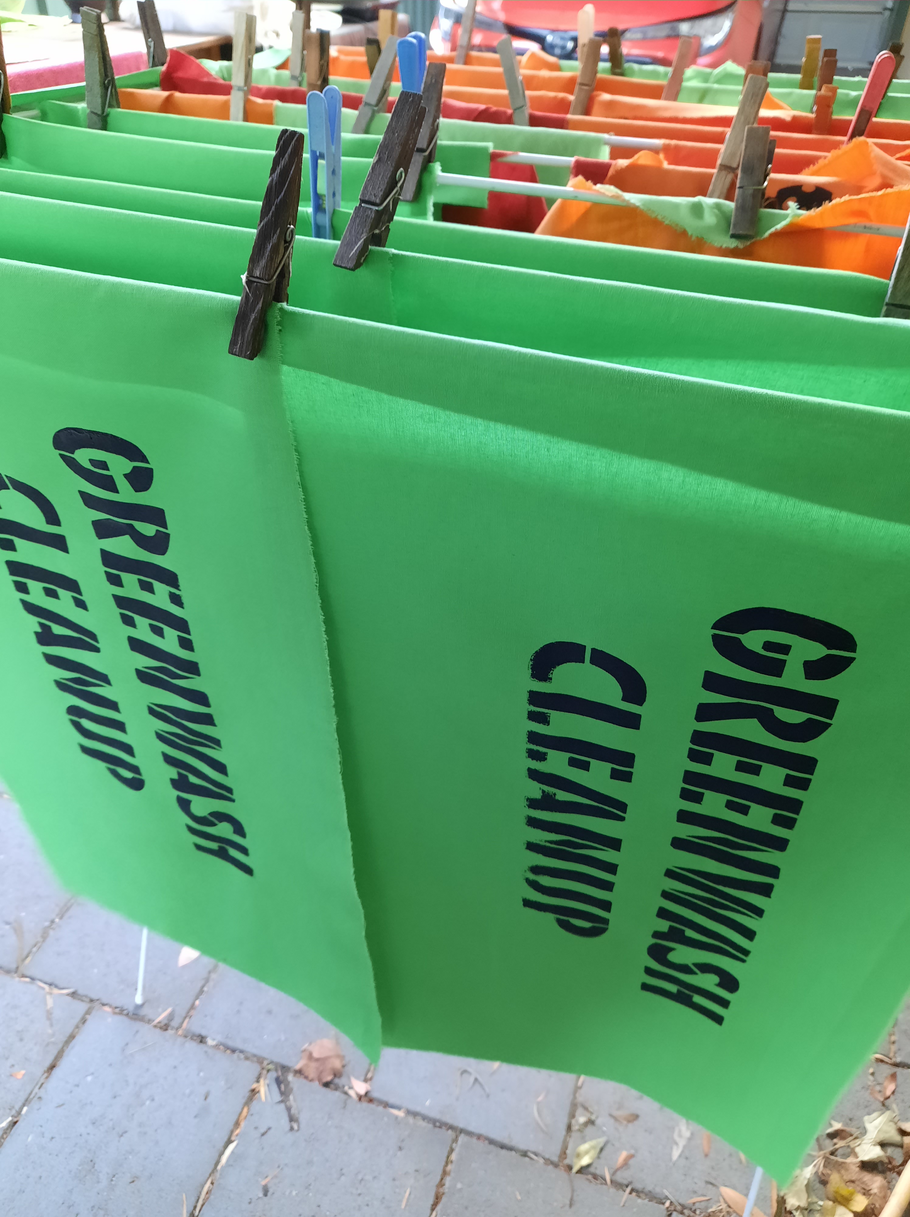 And here is the Greenwash Cleanup Crew, preparing to clean the windows at SANTOS HQ!