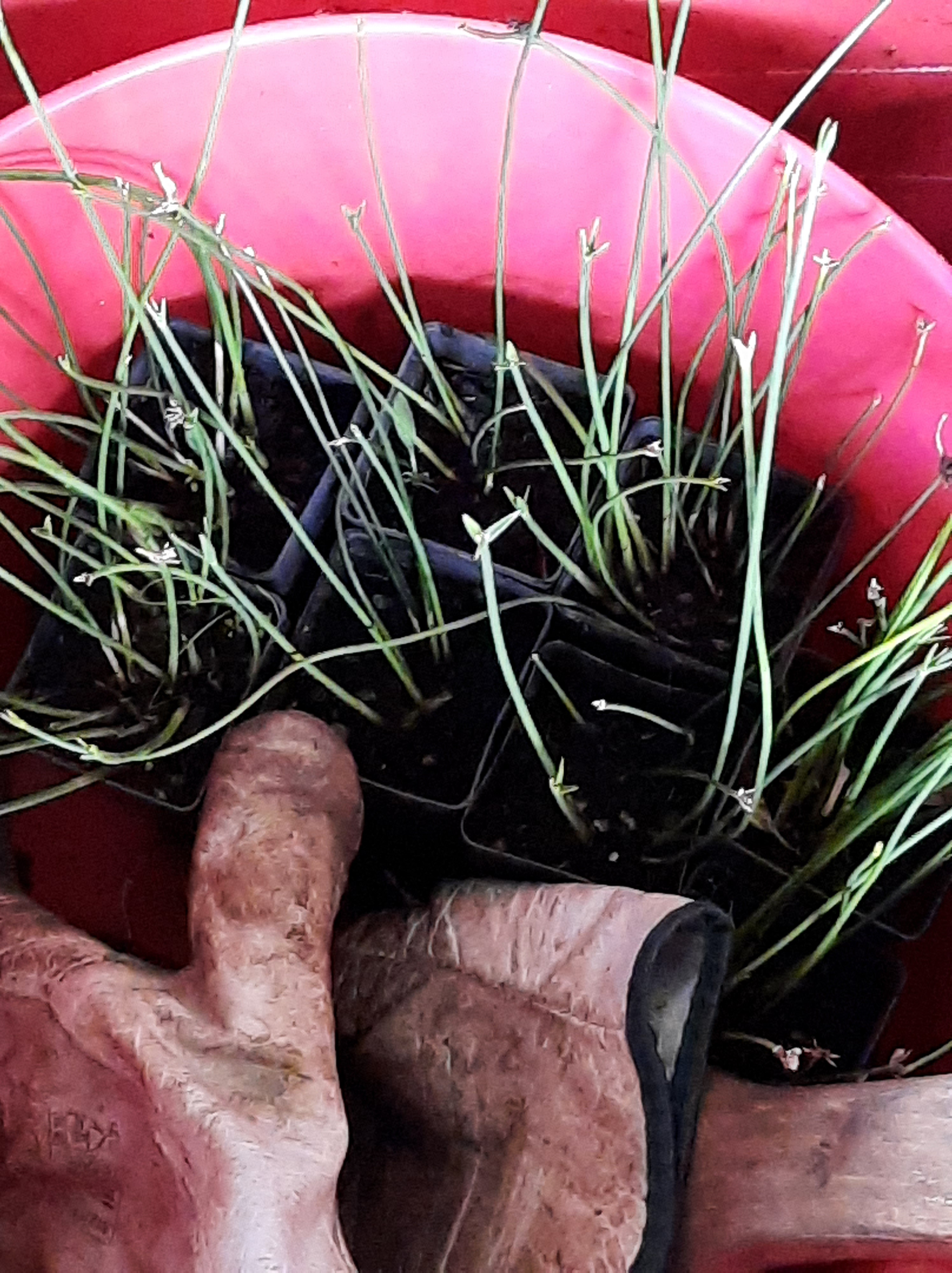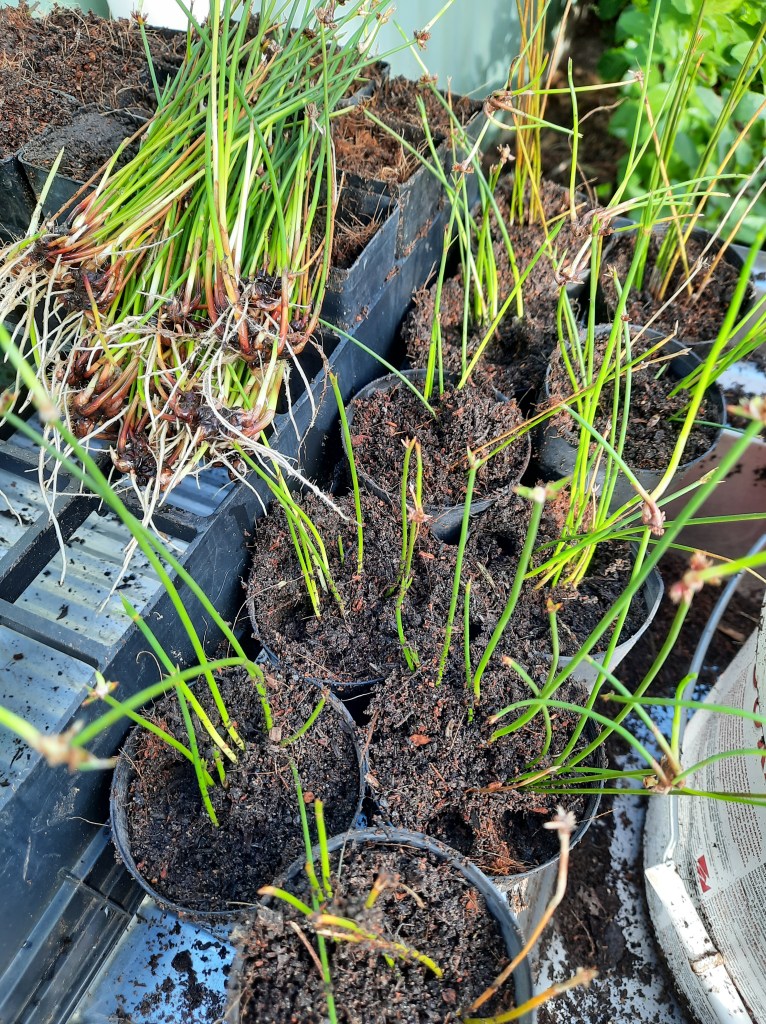 Meanwhile, back home, sedge propagating using starts from the Mother, growing well in the culvert at the top of the post.