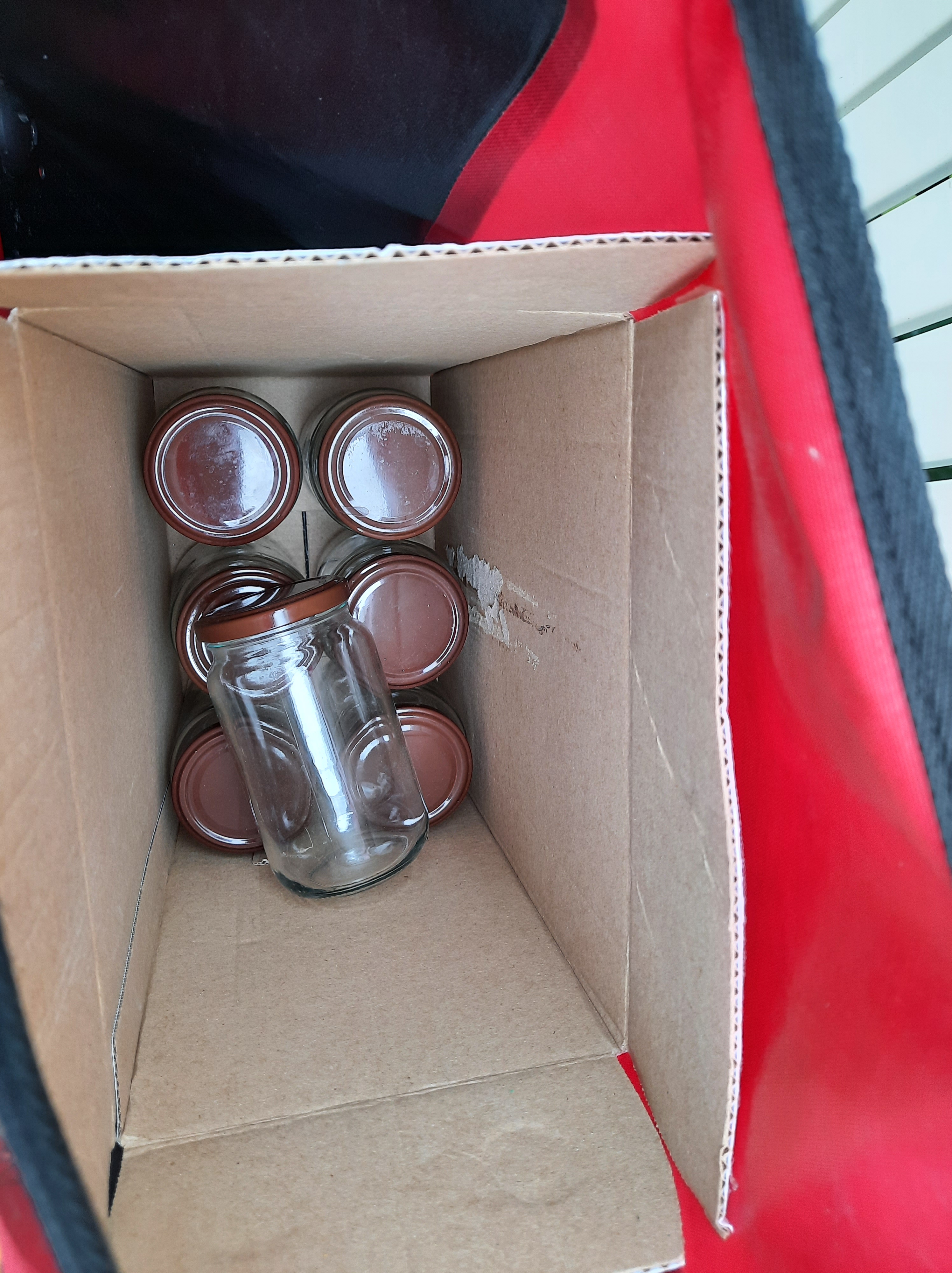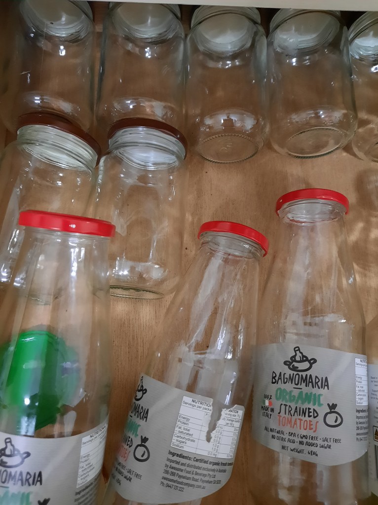 Jars that have come from Buy Nothing and will soon be filled with olives.