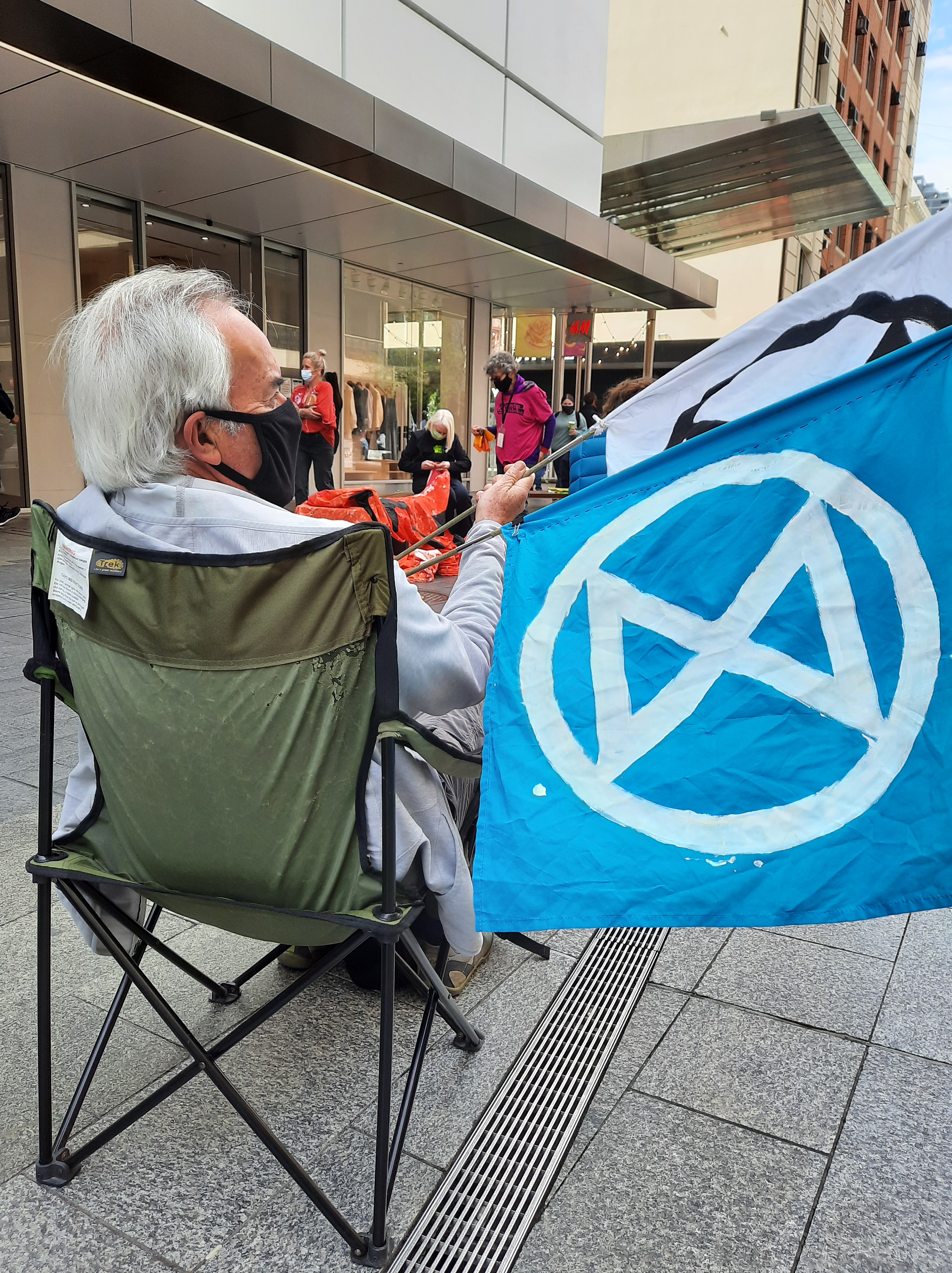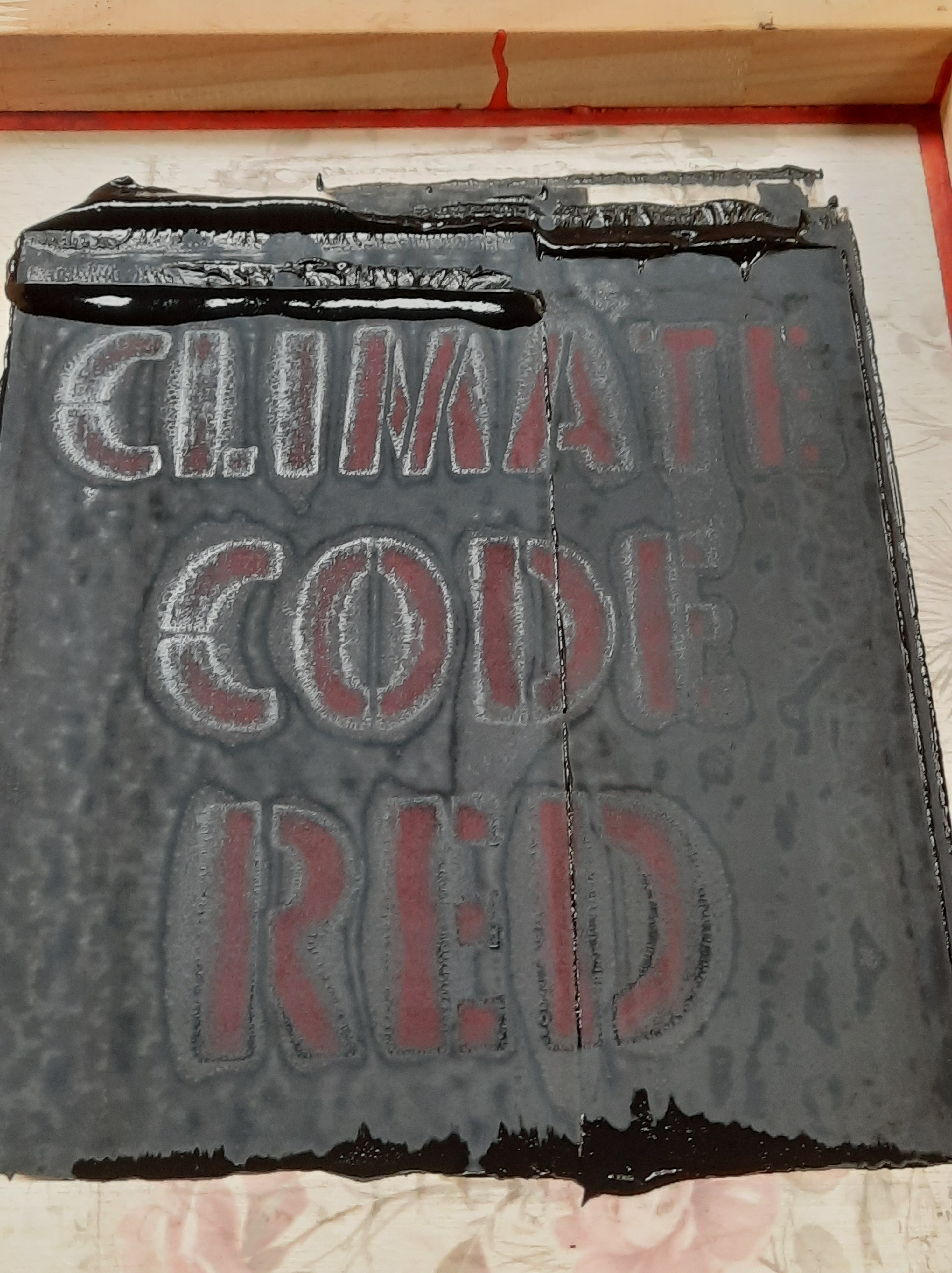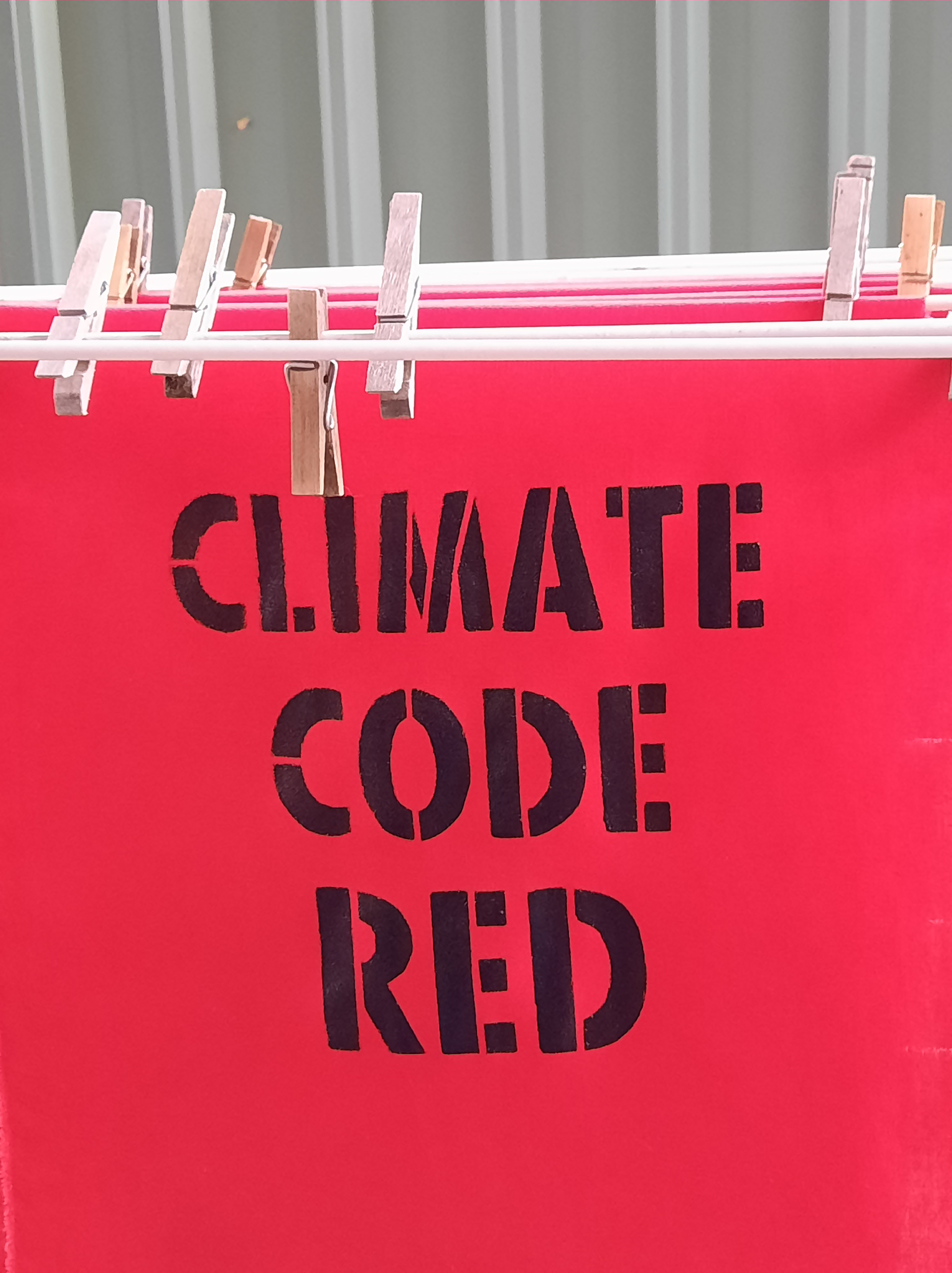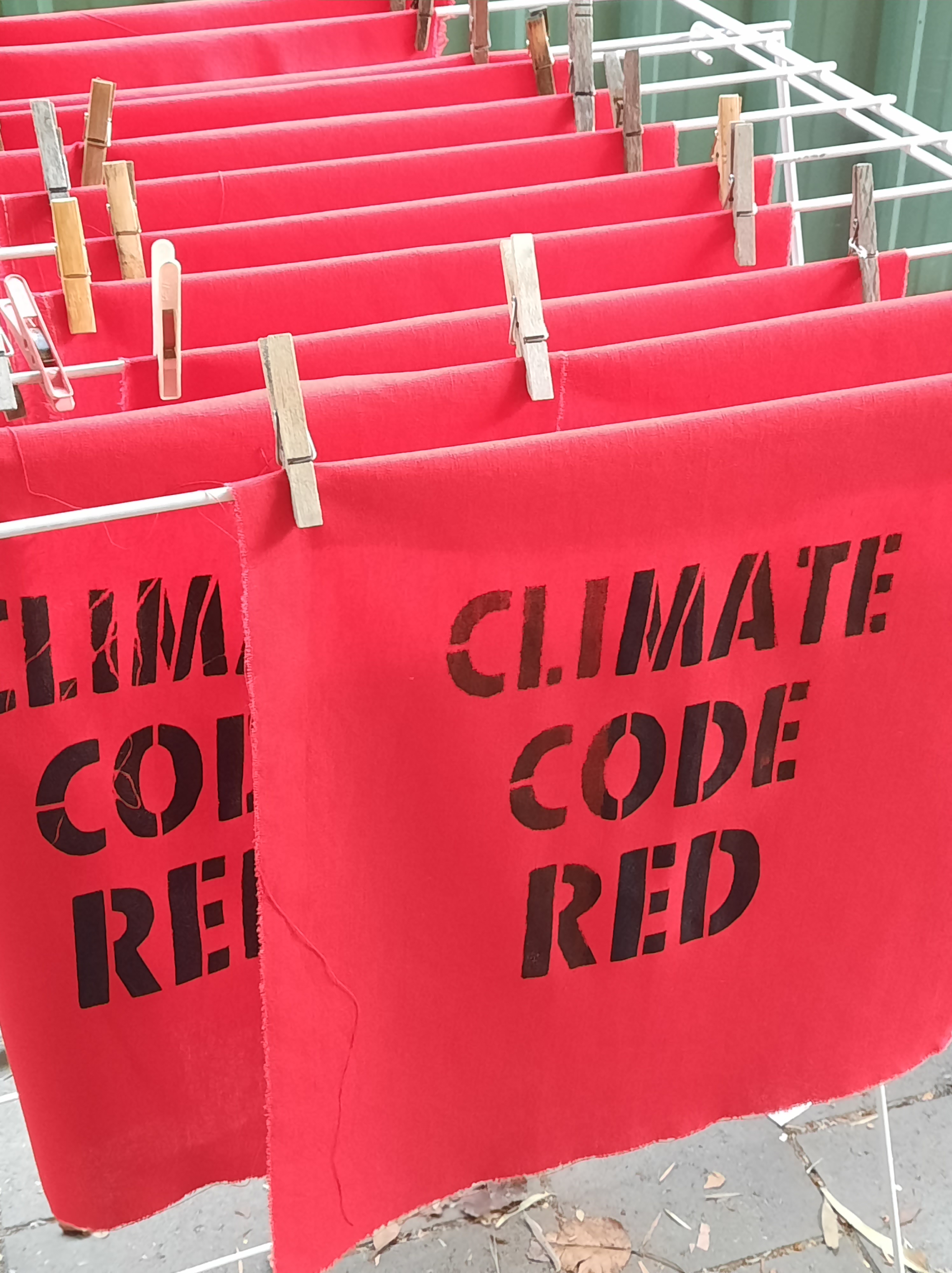 These are printed onto fabric that is otherwise on its way to landfill, from op shops and the local Buy Nothing group. Then I made some patches specifically for one of our local Extinction Rebellion actions focused on SANTOS.