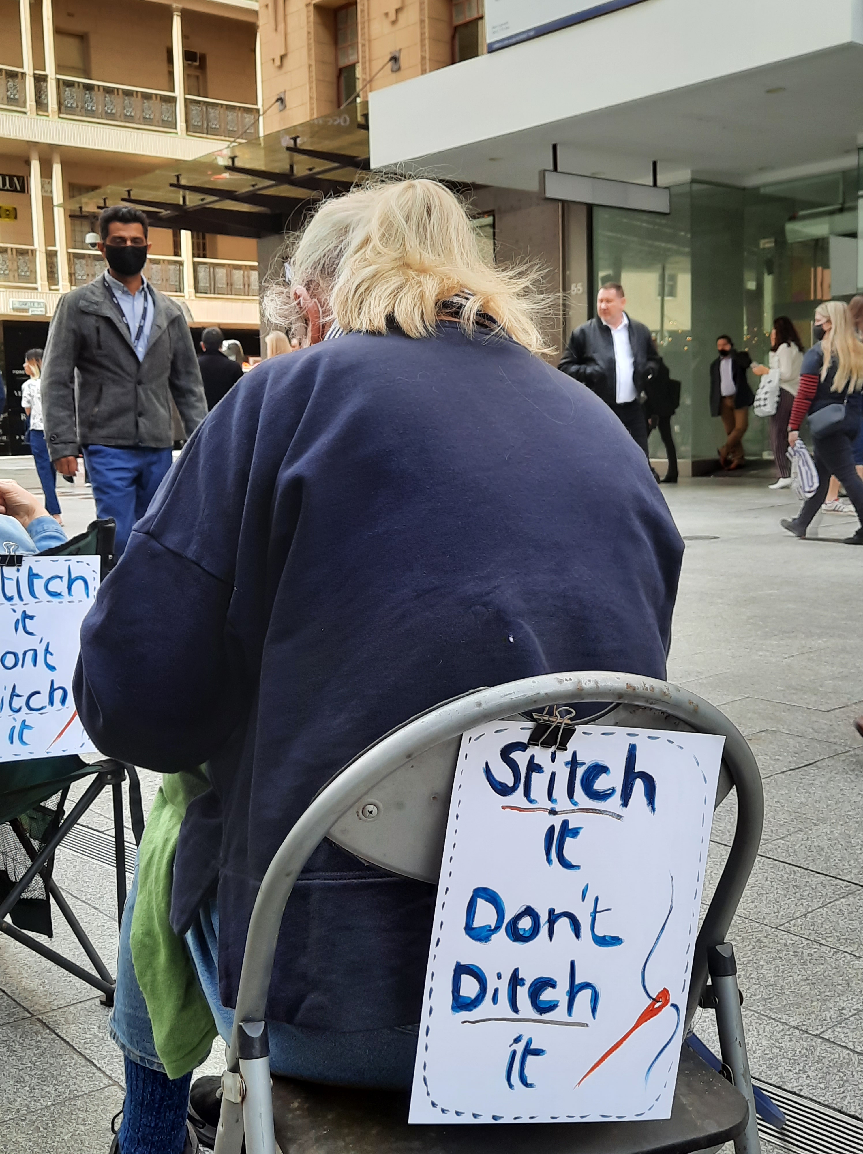 Dear Readers, If you are local (Adelaide) and would like to hang out with menders and stitchers (or learn to mend and how to thread a needle), we will be hanging out at the Festival of Climate Action this Sunday 17 October 2021, 1-3 pm. We will be in Tarntanyangga (Victoria Square). Look for us on the hay bales, and bring whatever you would like to mend, or join a collaborative stitching project. Full programme here!