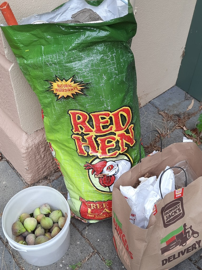 This photo is a record of a day I went into the local creek bed, prepared to collect a LOT of rubbish, and maybe a few figs. Afterwards I made three or four jars of jam. The really great eating fig trees were not ripe yet, but what my grandma always called “jam figs” or “Turkey figs” were ready to go and they do make good jam! And, isn’t it sad when even a feed sack is not enough for all the rubbish? Thanks for the bag, Hungry Jack’s. NOT.
