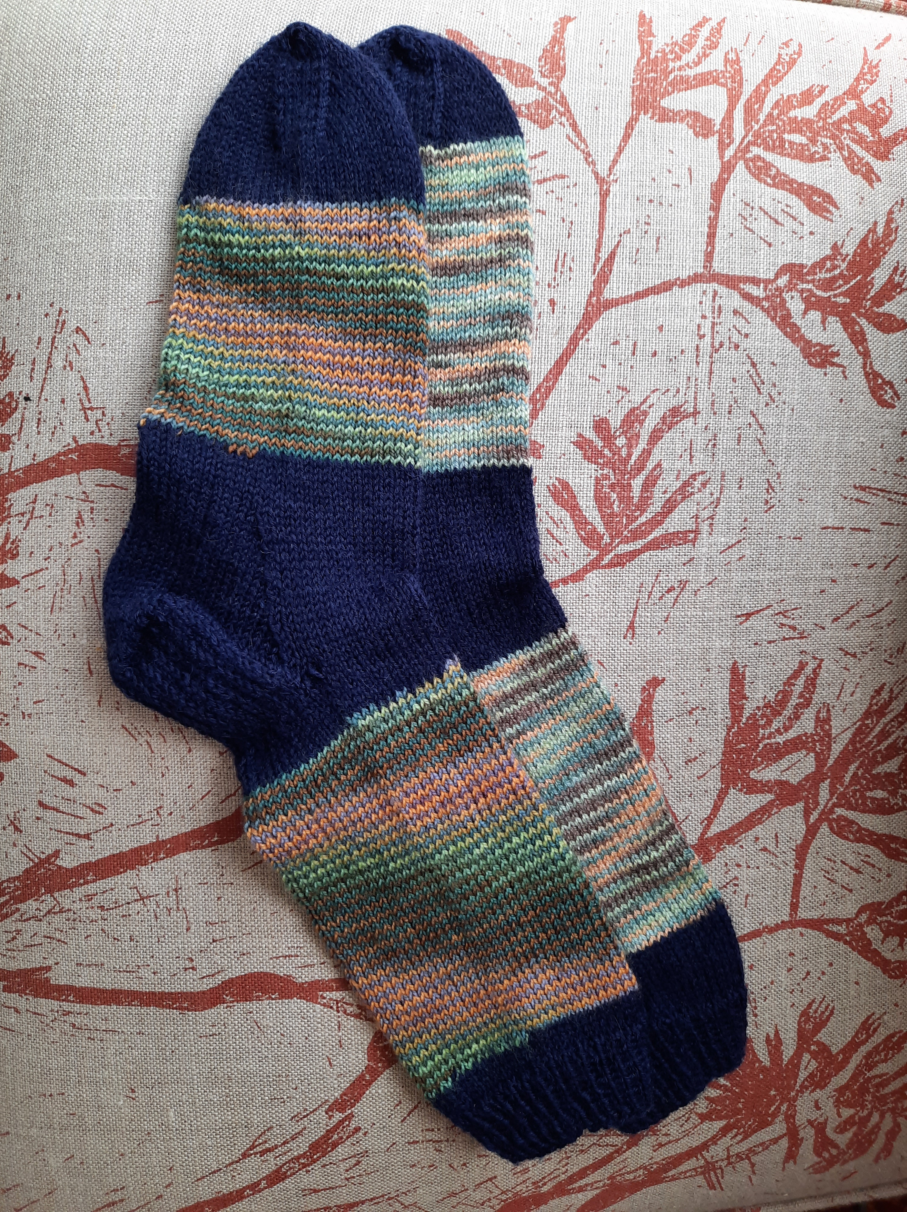 I have been very entertained by how like and yet unlike, this pair are. The recipient does not want matching socks, but individual socks, like those made by the father of the family in a book they’ve enjoyed. The book sounds very fun, though the idea that all members of a family could fit into the same socks and just pull them indifferently from the same pile of socks when the wash is done? Seems quite implausible (though entirely joyous) to me!