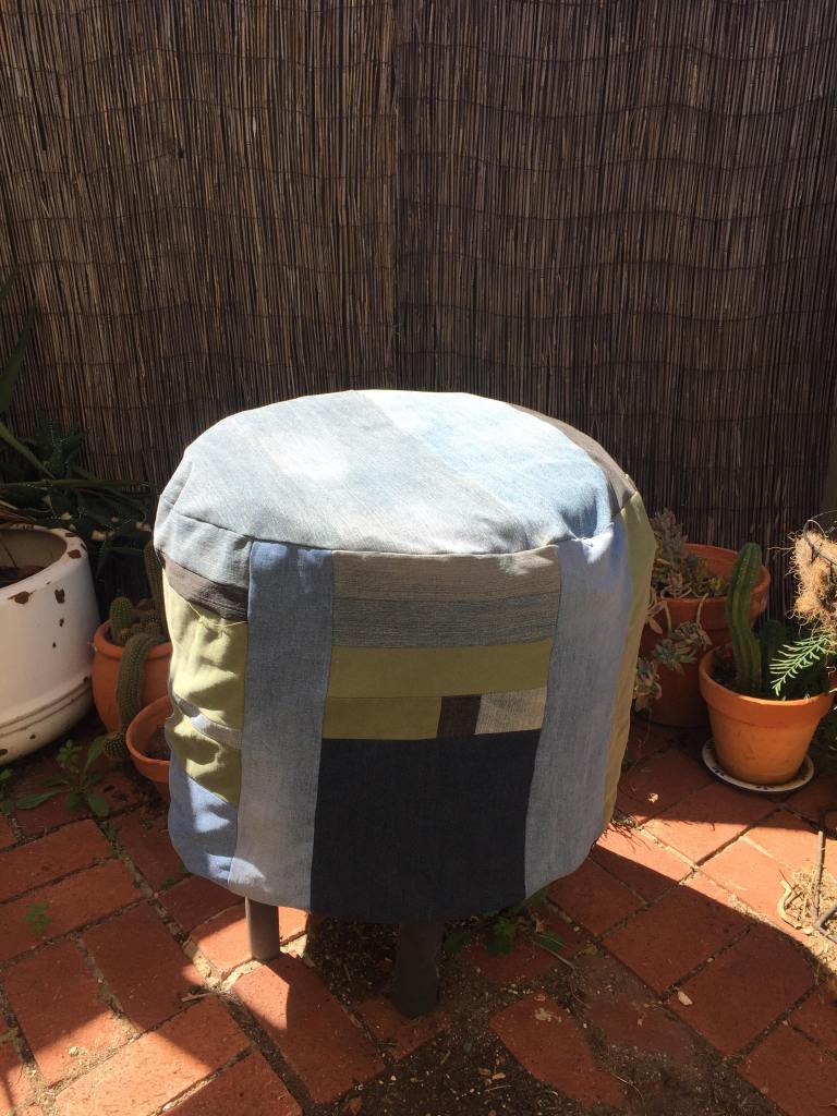 Apparently I lost interest in documenting that mend–two pairs of jeans! And here is one of the patches on my ancient pyjamas–oh dear, so out of focus. As of the date I’m writing, there are two yellow, one red, one pink, and one blue patch. I’ve been wearing them for years after my daughter cast them off in my direction–to bed, and occasionally to cover up at the beach. They are tired and faded but perfectly comfortable, and I think I’m mending them for my own entertainment, hence the colour scheme!