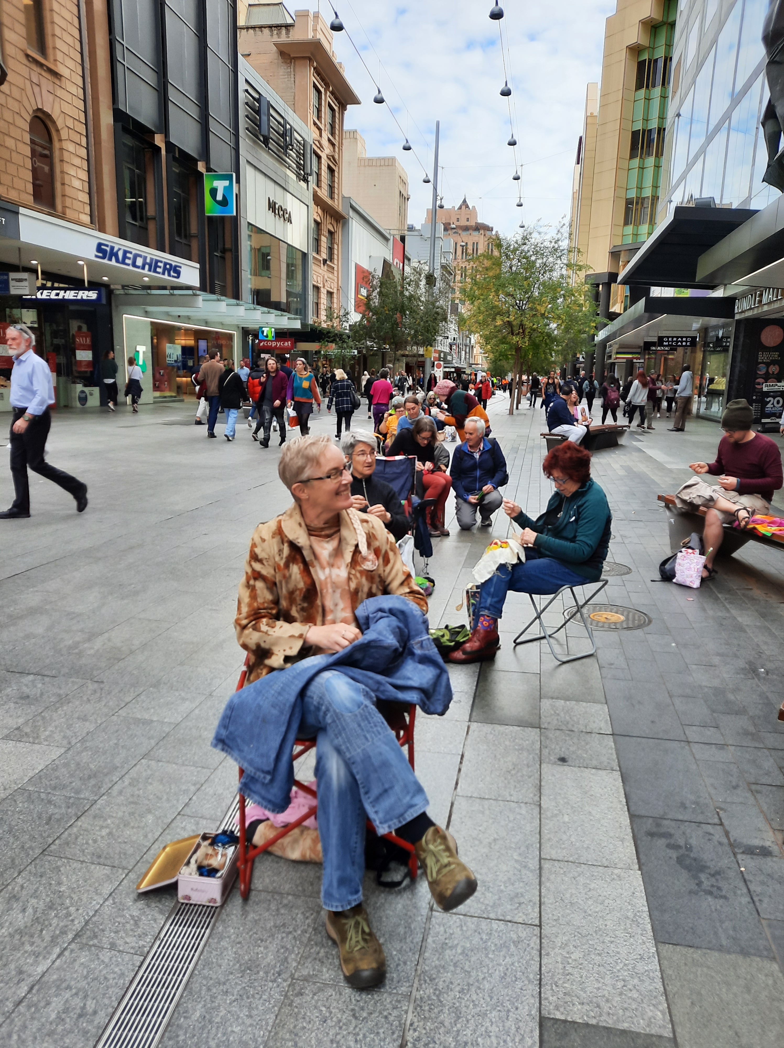 Yes, we are coming to Rundle Mall (here in Adelaide, South Australia) once more for some socially distanced public mending. YOU are welcome to join us if you are anywhere nearby and have the means to get there. We will be mending as part of Fashion Revolution Week. And we will be outside H & M.