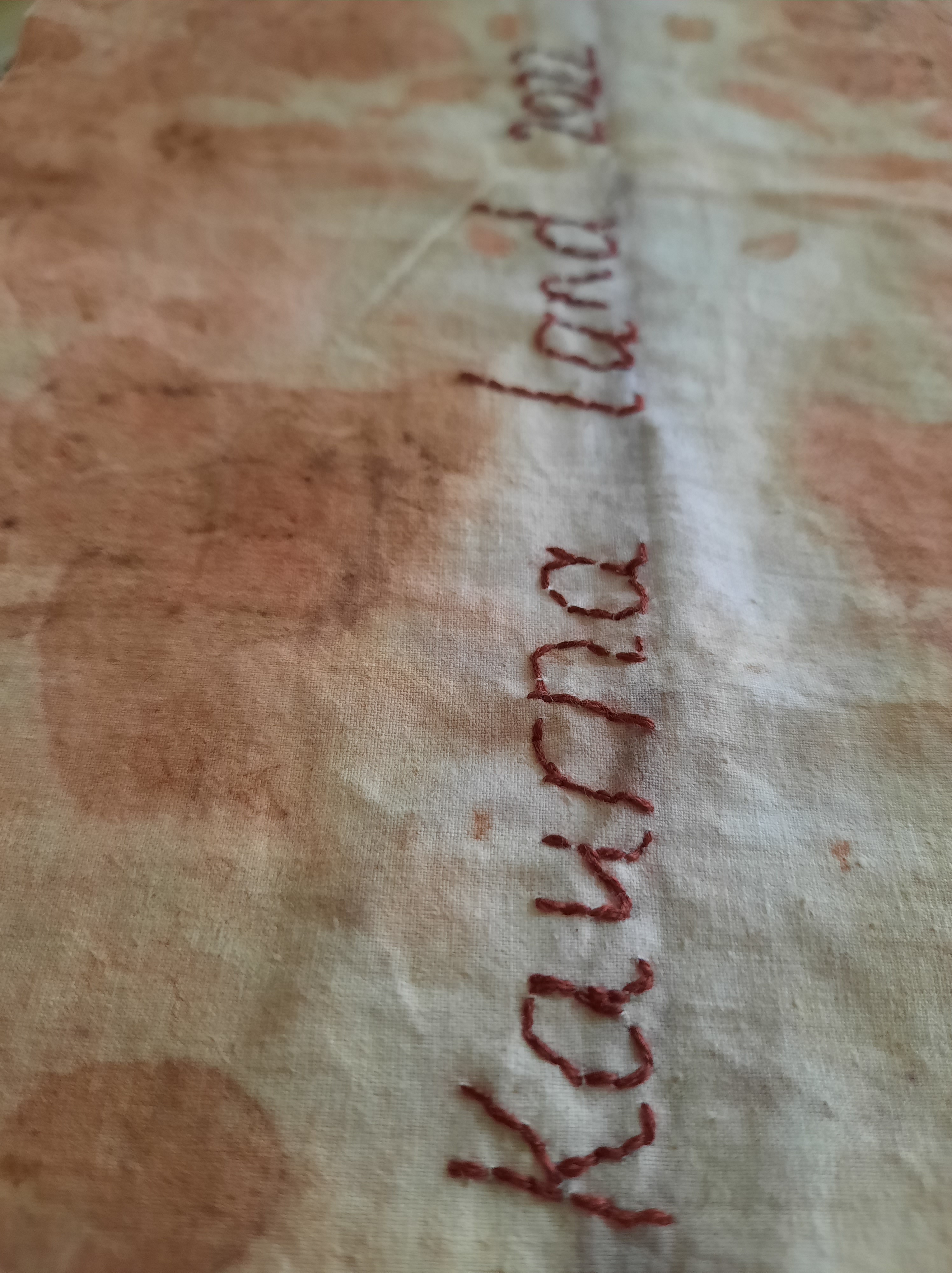 Last year, I participated in the online Craft Sessions. So interesting. There was a project as part of the event, and just recently I finished mine. I was committed to using what I had to make this, and eventually I settled on this piece of cotton dyed with Euclayptus crenulata.