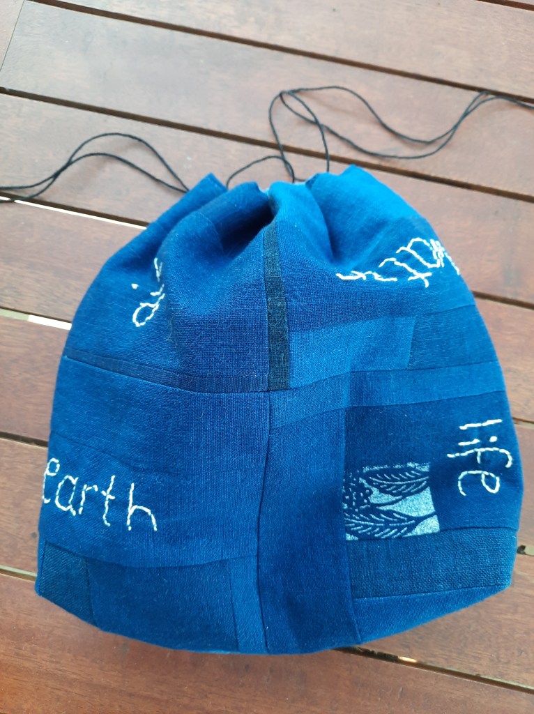 So I’ve tucked it inside this bag to remind me in times of doubt. The outside is patched together from a package of indigo dyed scraps a friend brought home from a trip to Japan. I had been waiting for exactly the right thing for it!