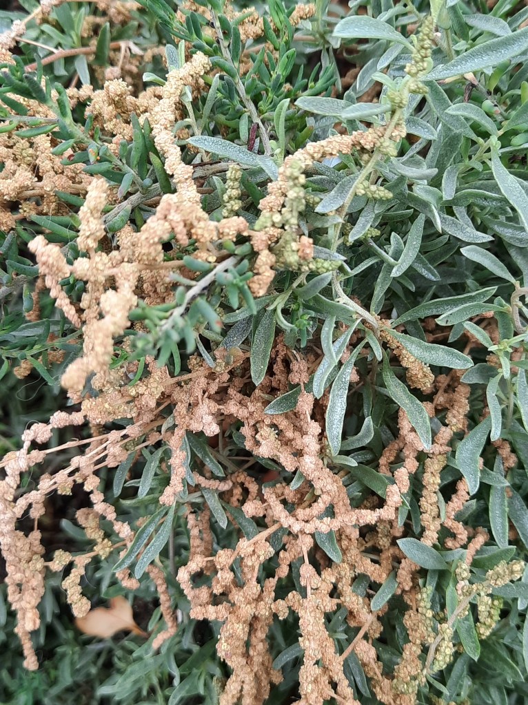 Walking through my neighbourhood, here are four other saltbush species that are ready to harvest for seed, plus native grass that is ready to give seed. I just head out with paper bags, or little jars/yoghurt pots/my hand and collect, then bring back and set out in saucers or dishes to air dry. But experiment! Look to see what can tough it out in local parks and gardens, and give it a try.