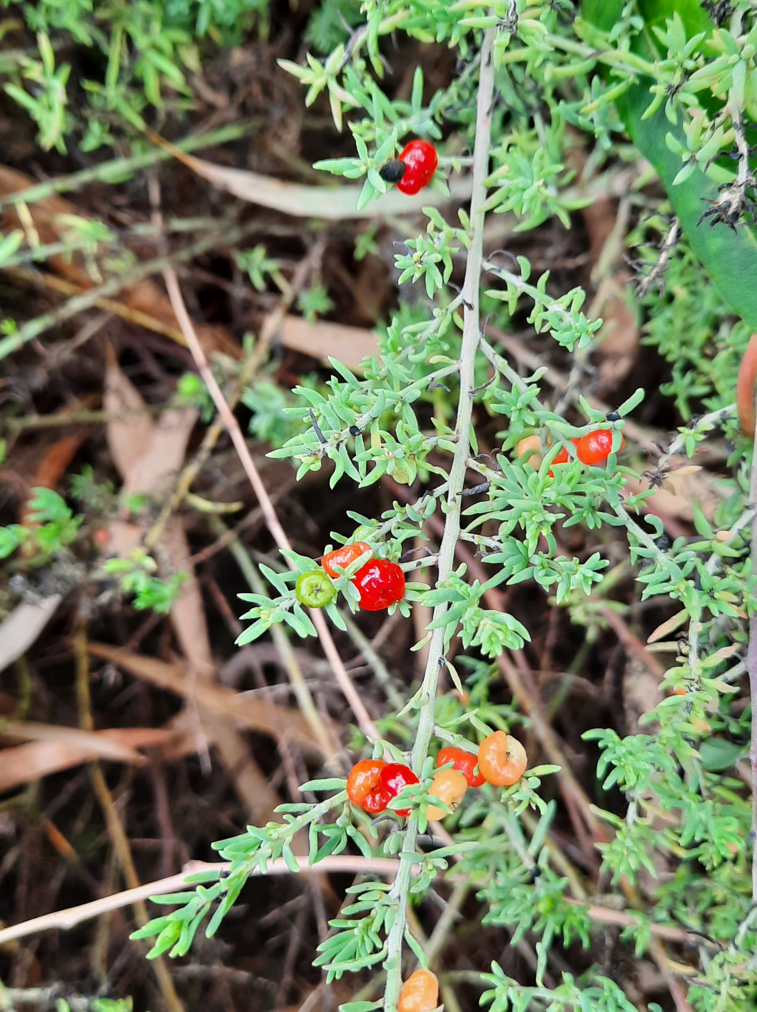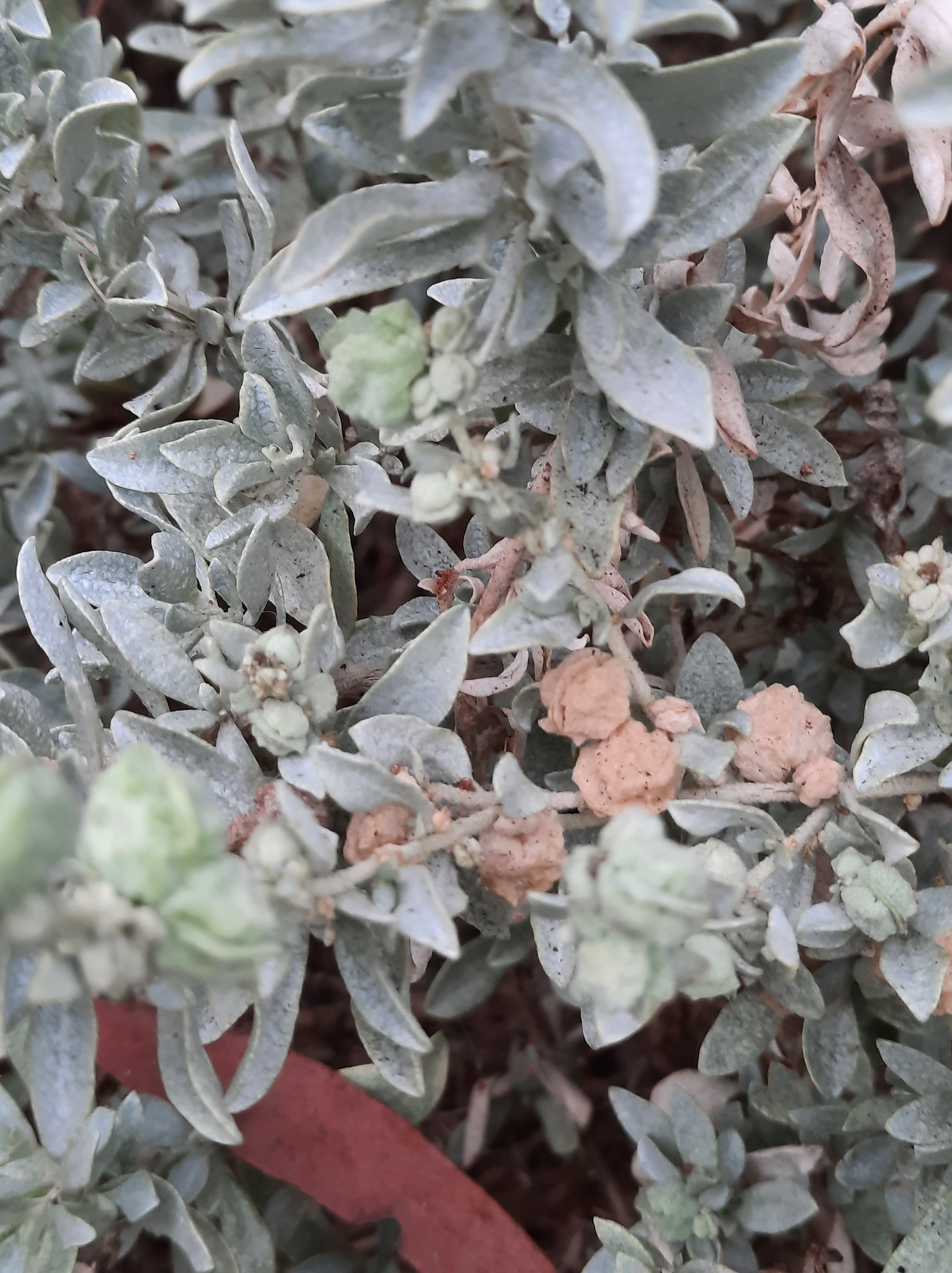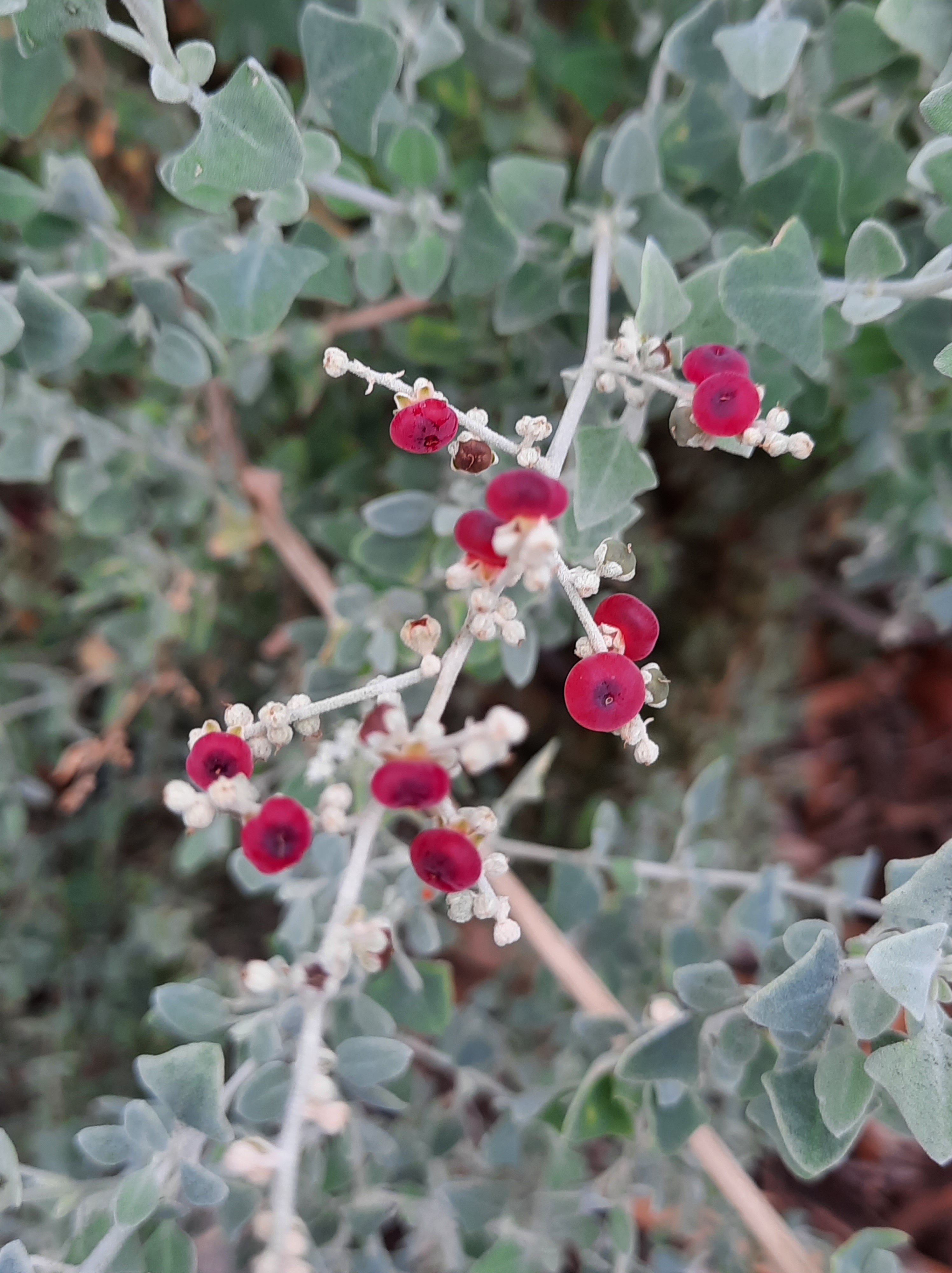 The other thing I look to do at this time of year is to save seed from anything seeding now–which is many of the plants that go by “saltbush”. This rhagodia (seaberry saltbush) has mature fruits that are beginning to dry on the bush–the perfect time to collect and dry them. This is another hardy bush that is native to the coast of SA and Victoria.
