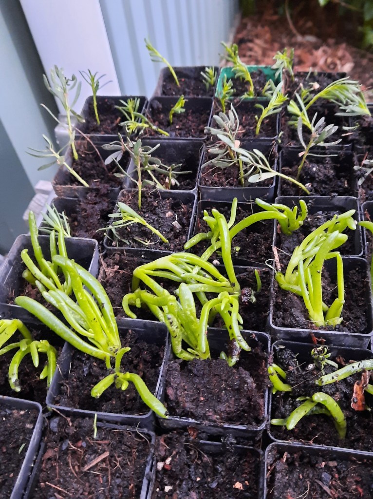 Now I will keep these moist until spring, when I hope most will have grown new leaves of their own, revealing that they have grown roots below the soil. And yes, there is some disphyma crassifolia (cut from a patch a few metres wide in a bed in the local park) in there along with a couple of different boobiallas. Fingers crossed!
