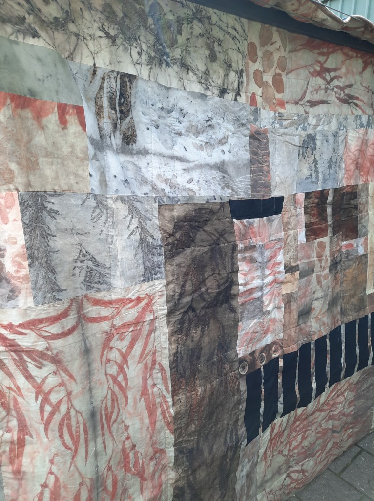 It’s a wild patchwork of all kinds of leaf dyed fabrics.