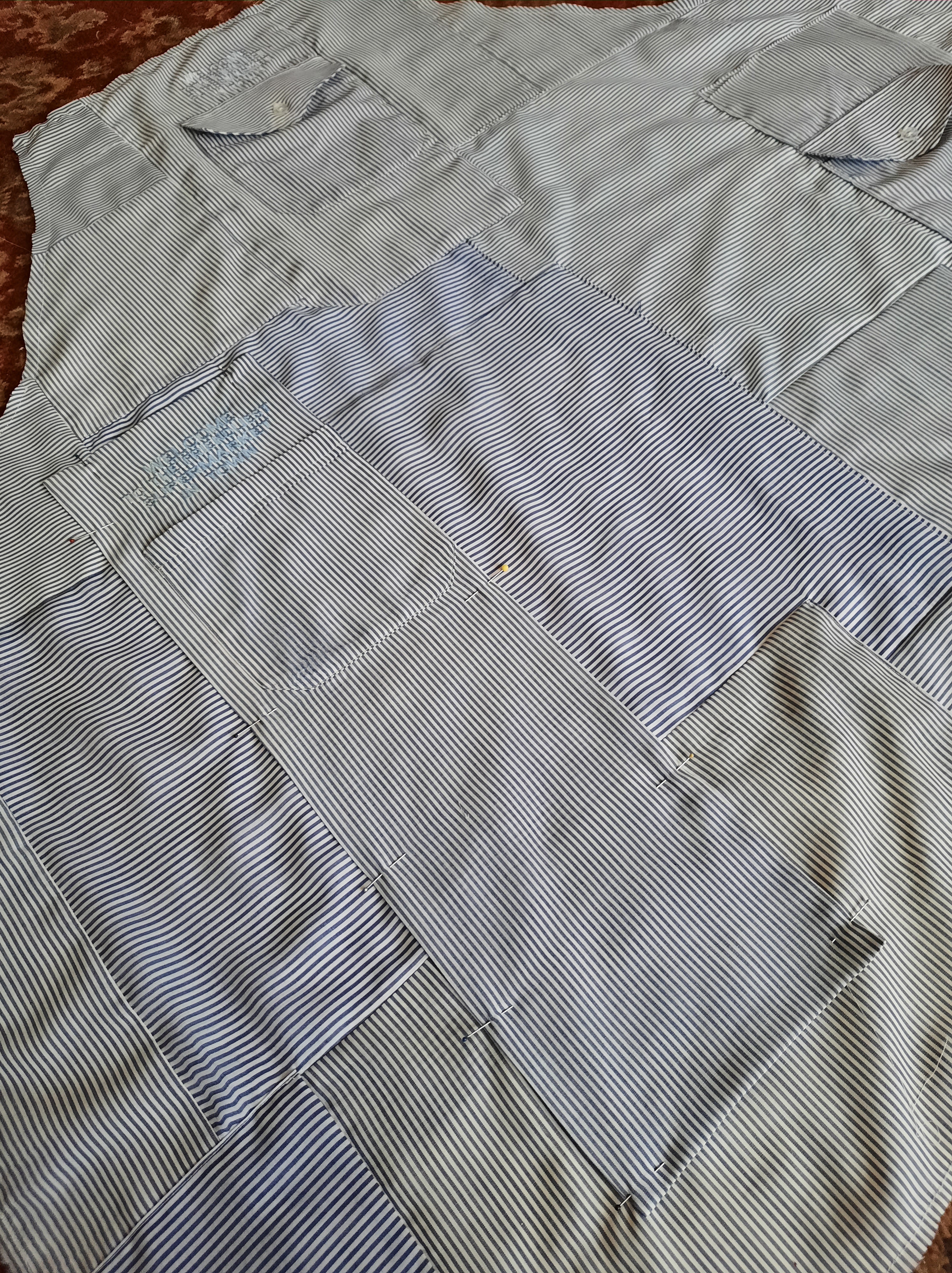I created the front with a patchwork of different shirts, pockets and all.