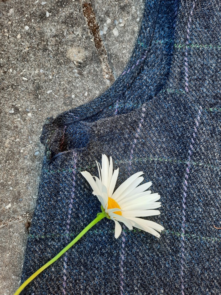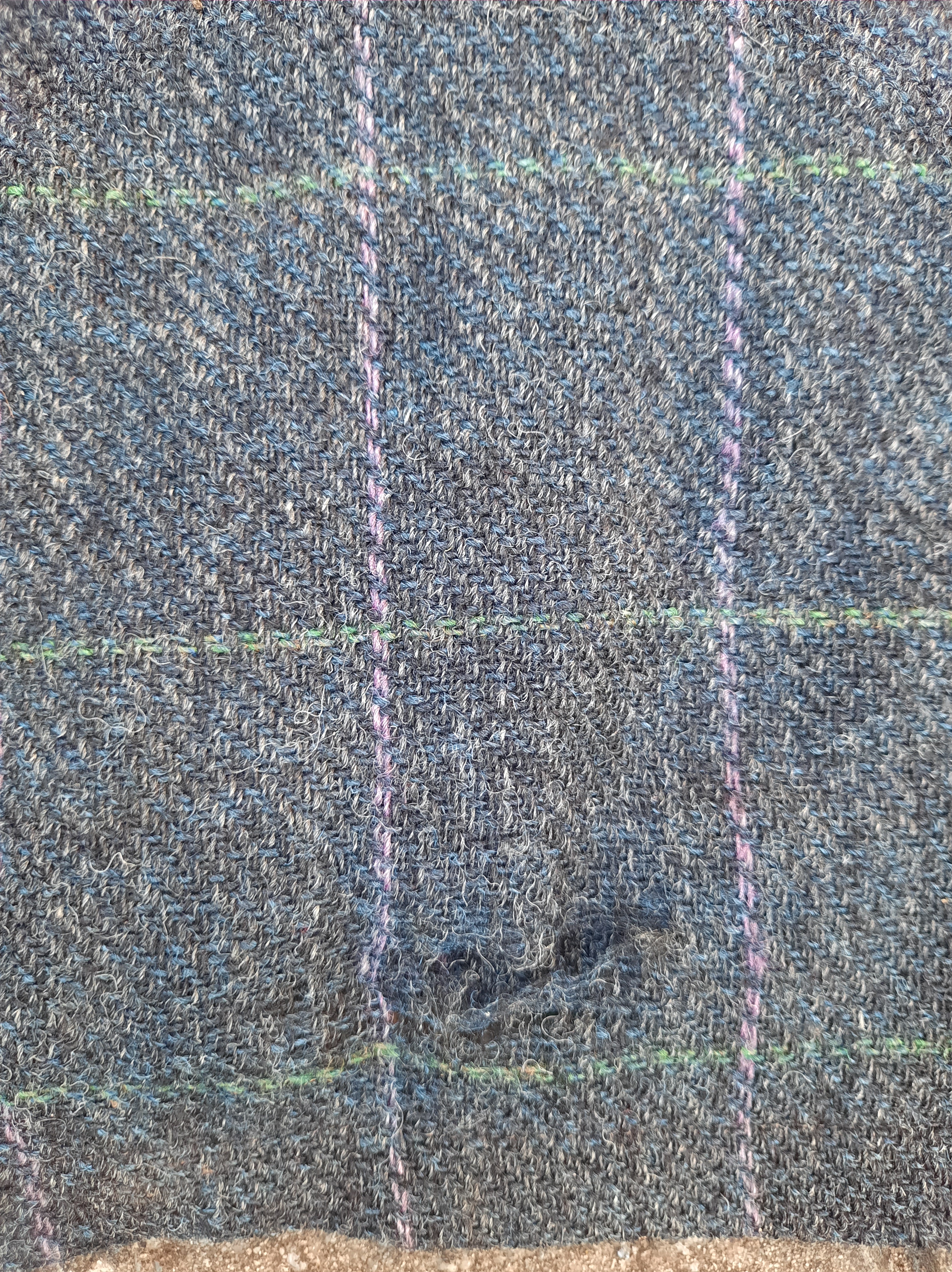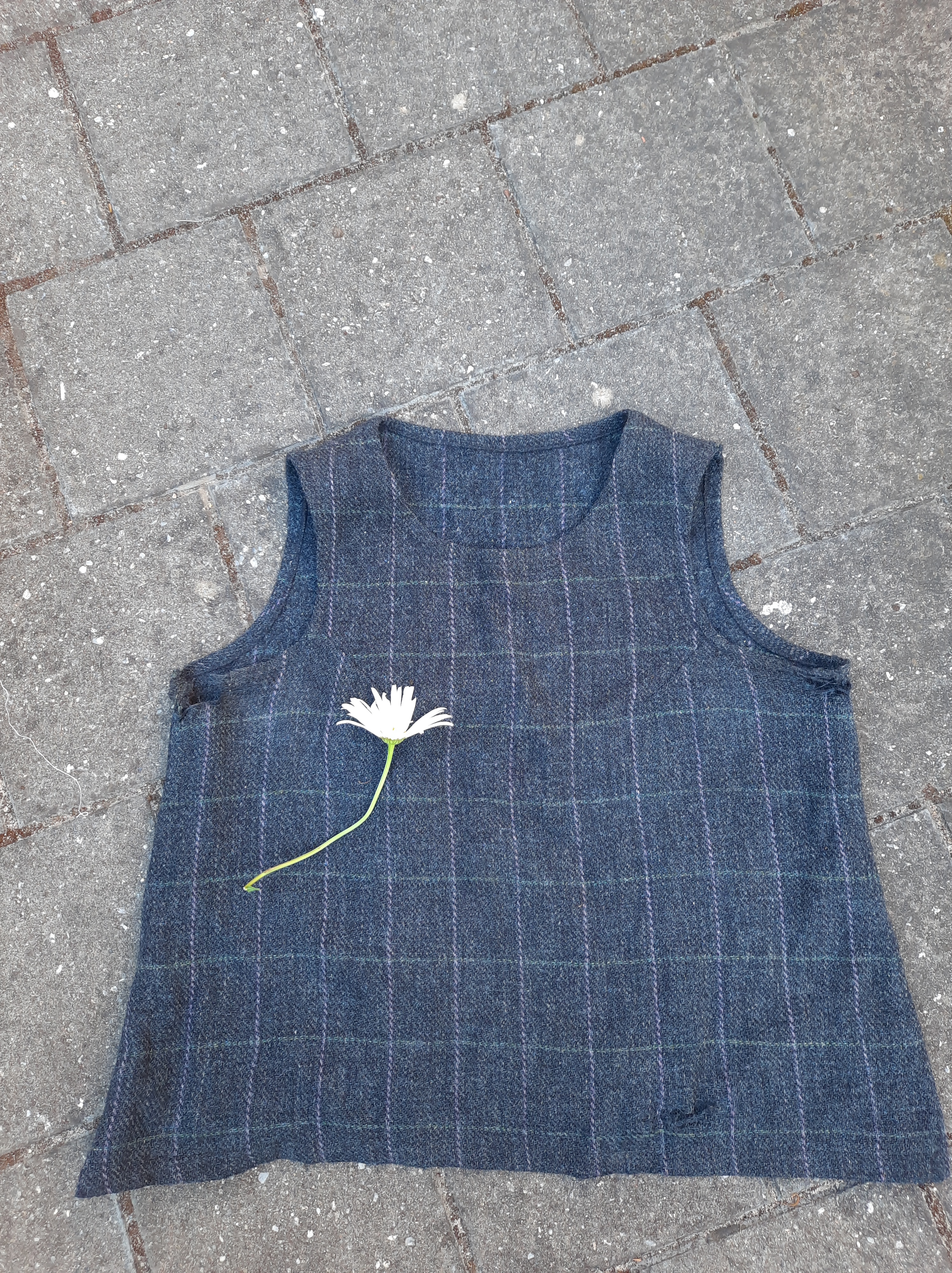 This is one of the garments I have set free. I made it years ago and have worn it most days through most winters, for many years. It is the kind of garment that drives your partner a bit nuts and causes friends and acquaintances to make jokes. Well, obviously it is my relationship with the garment and not the garment alone that is the butt of the joke! I made it from a piece of Harris Tweed I found in an op shop, complete with the cardboard with their logo on it, in the cellophane bag. It had apparently been purchased directly from Harris Tweed Shop and never sewn into anything. Moths had nibbled it, but it was so sturdy anyway, I didn’t ever repair those thinned places. It took years of washing and wear to become at all soft. Finally, it had become so threadbare… that I have soaked it in water and put it inside one of our worm farms so that it can rejoin the soil.