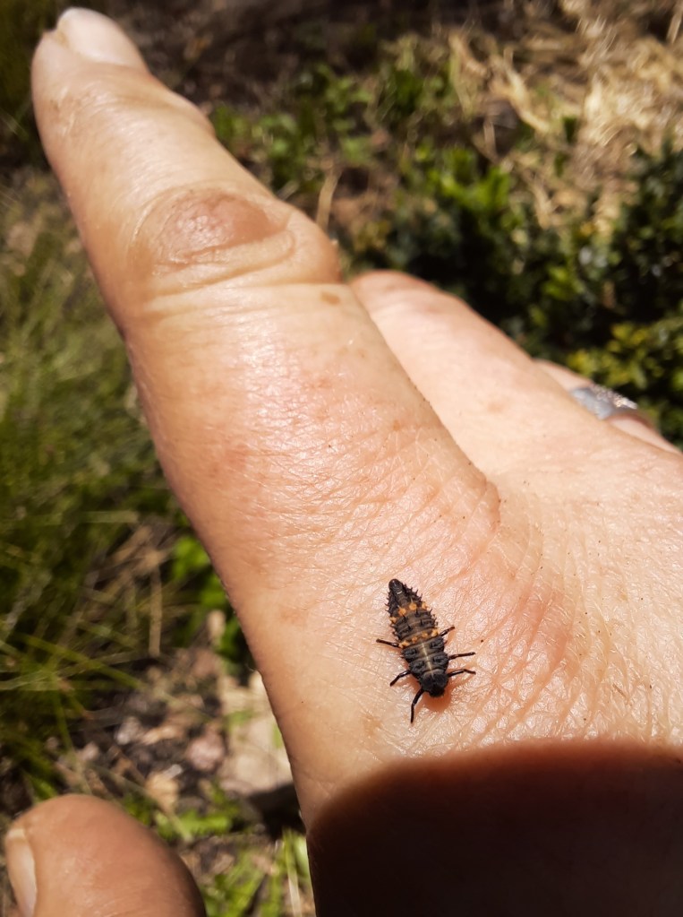 And because metaphors … this is a ladybird larva. Nymph? Anyway. I hope by now this little creature that landed on my ear in the garden one day, has grown wings and emerged as a ladybird and has lived or is living their best ladybird life. Let’s see what becomes of my pants and the associated shirts!