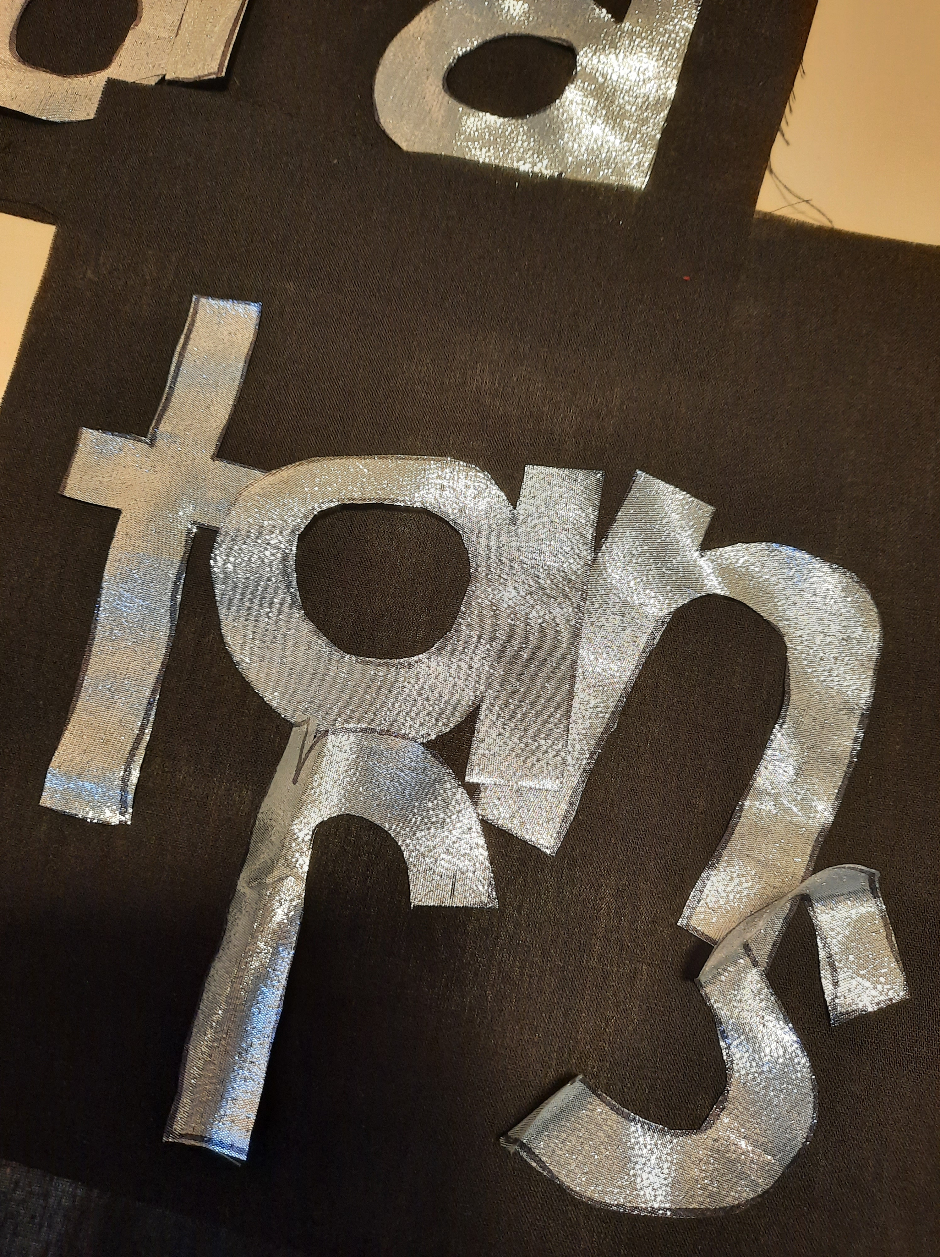 My initial idea had exactly these words but a different arrangement of colour and pattern in the background. I have enough fabric to try again–wait and see.
